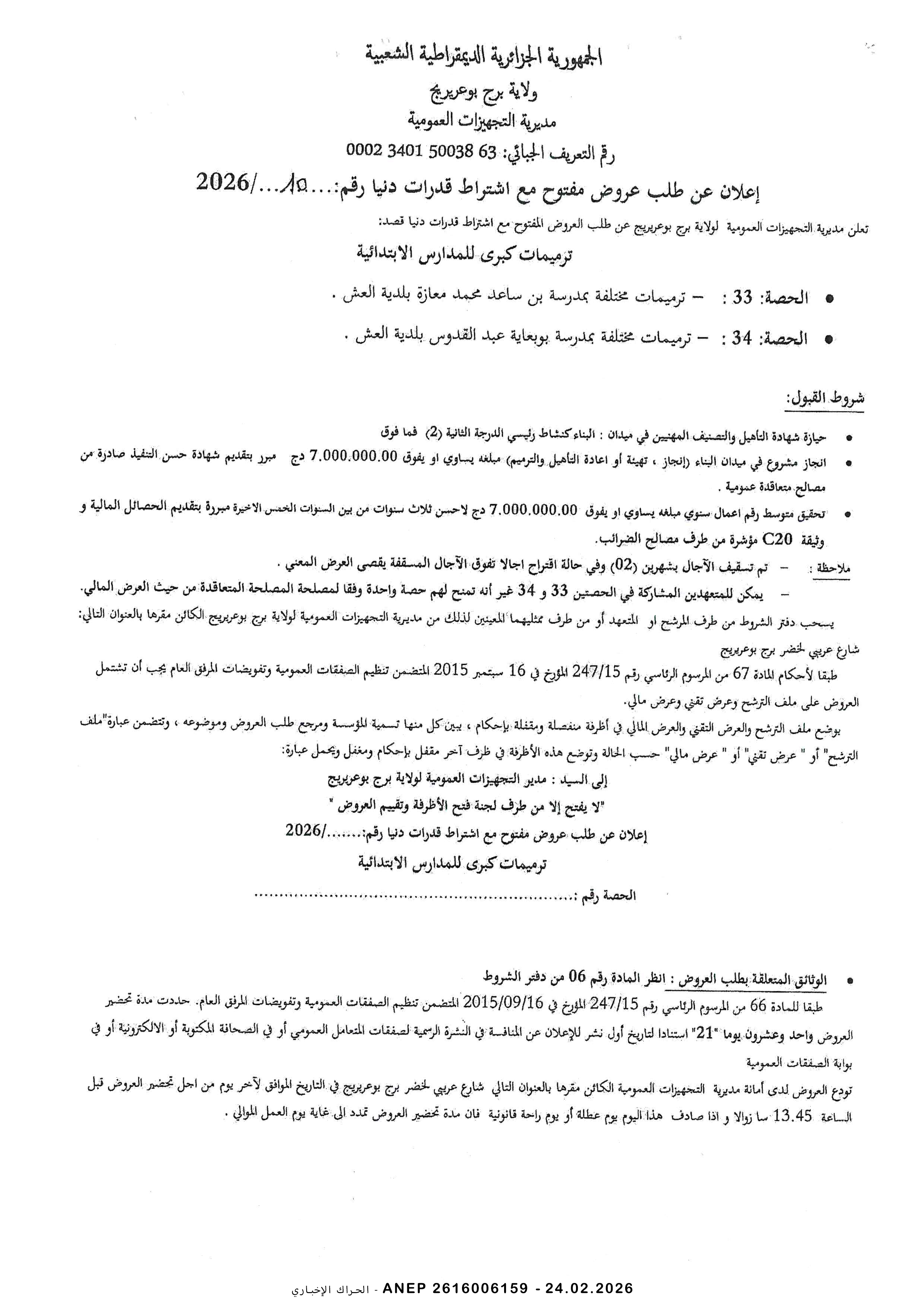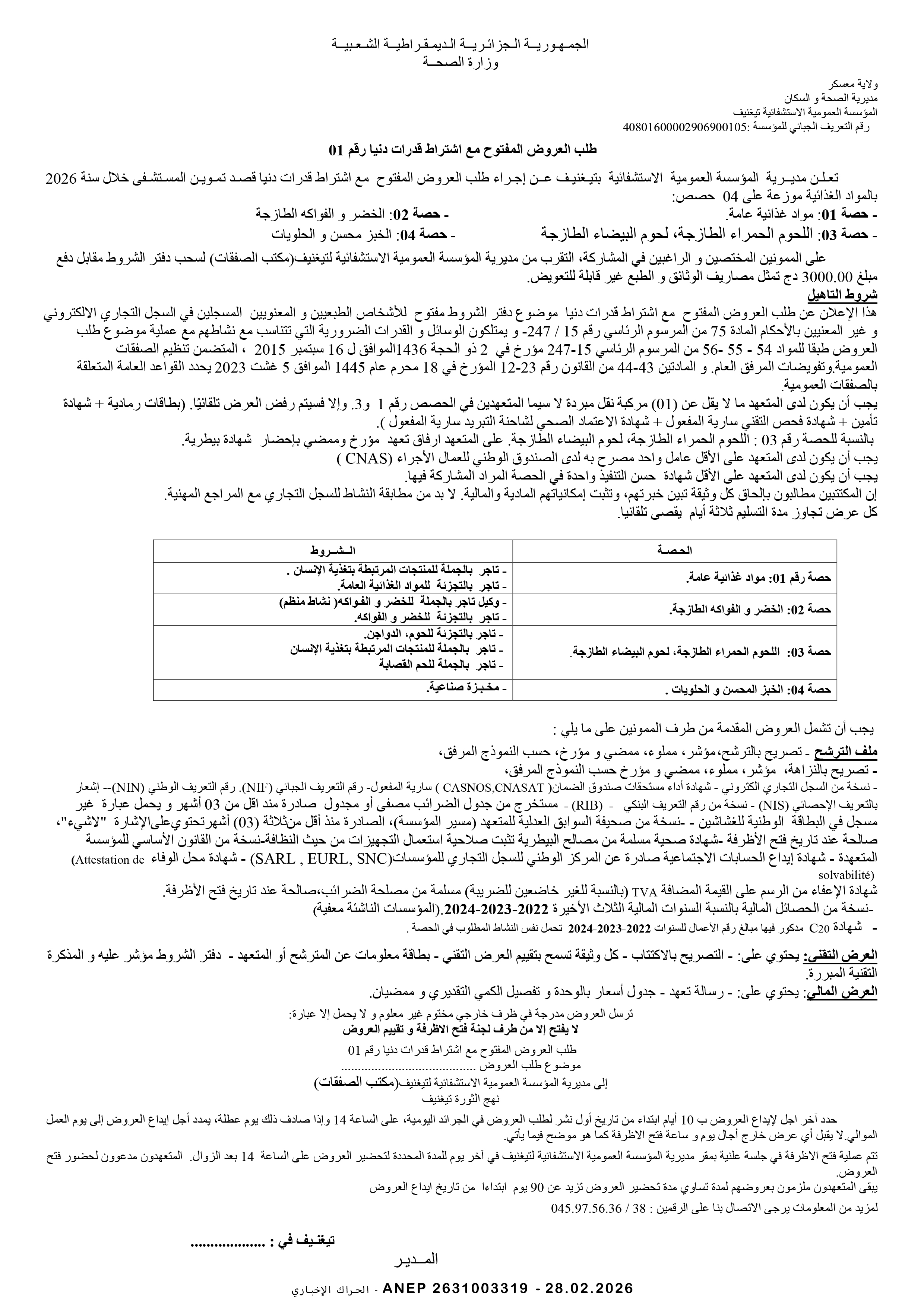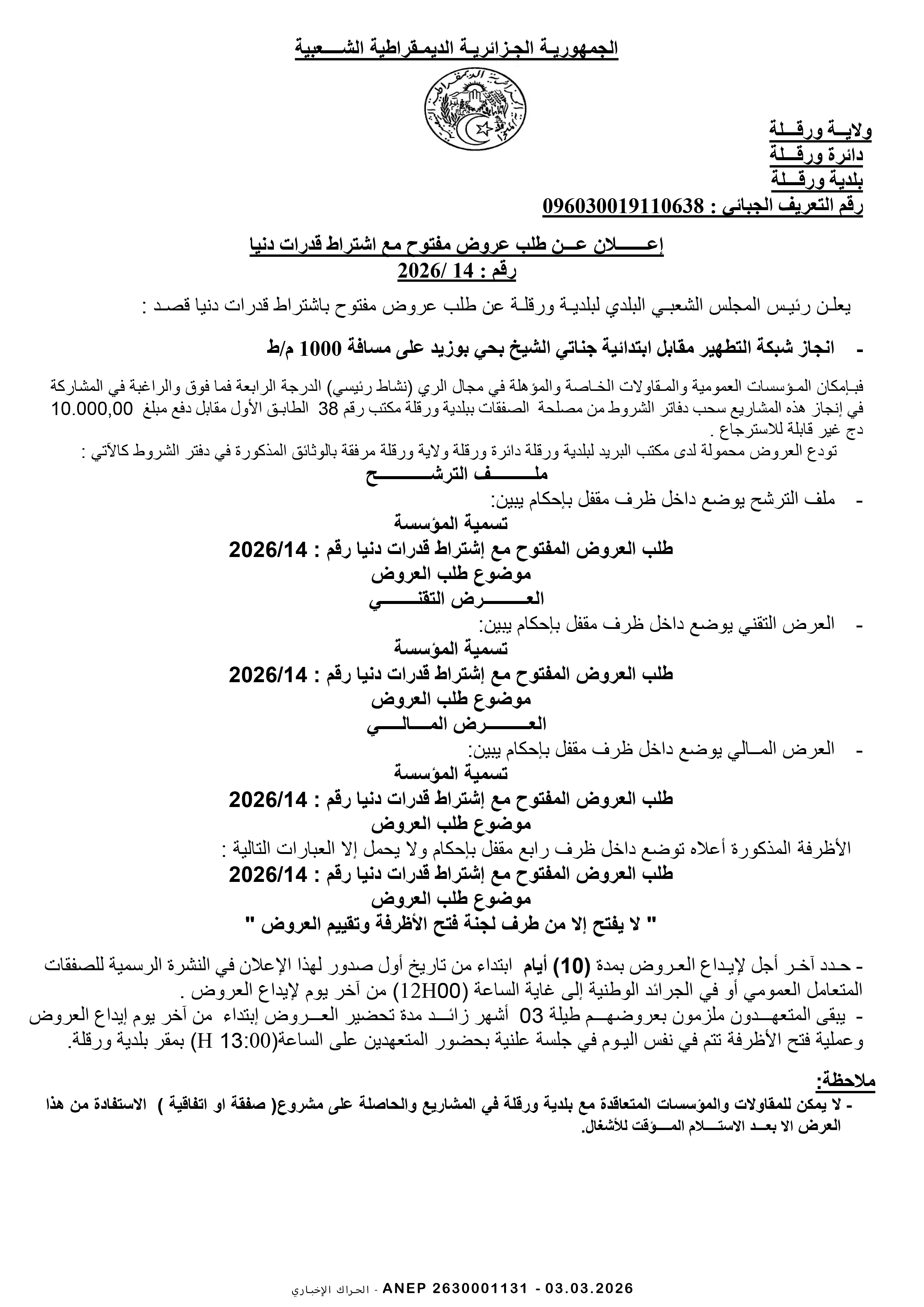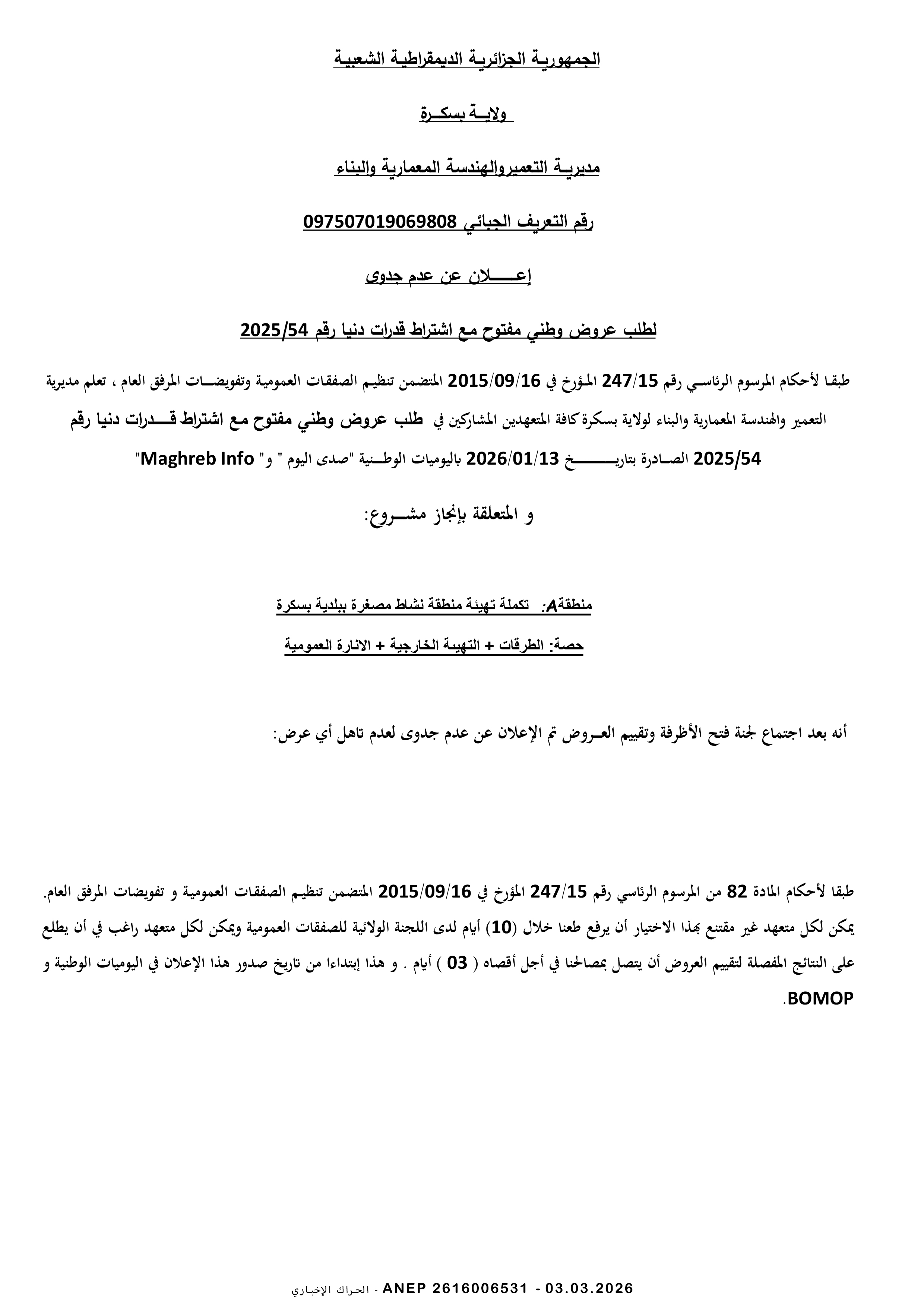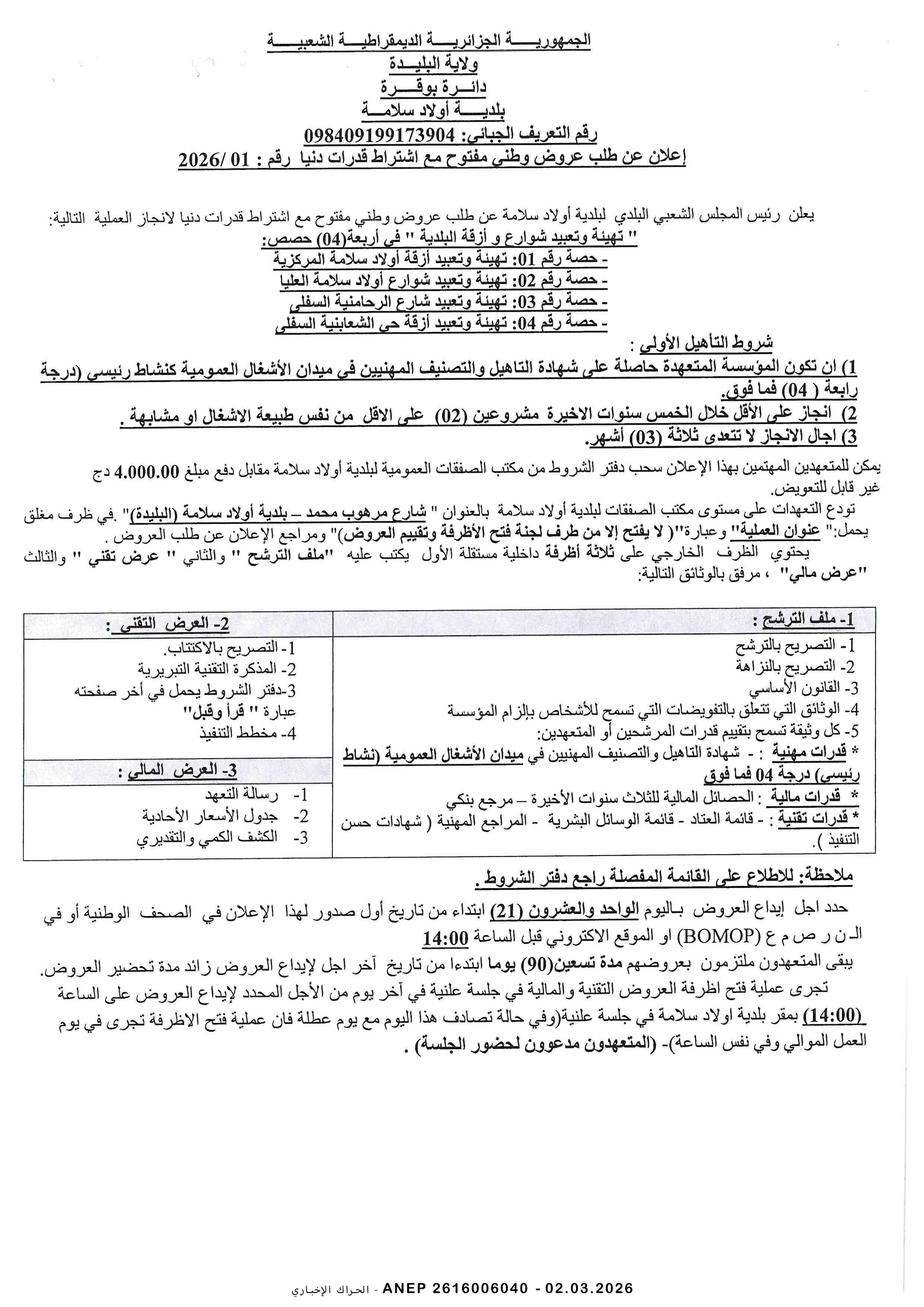 إعلان عن طلب عروض وطني مفتوح