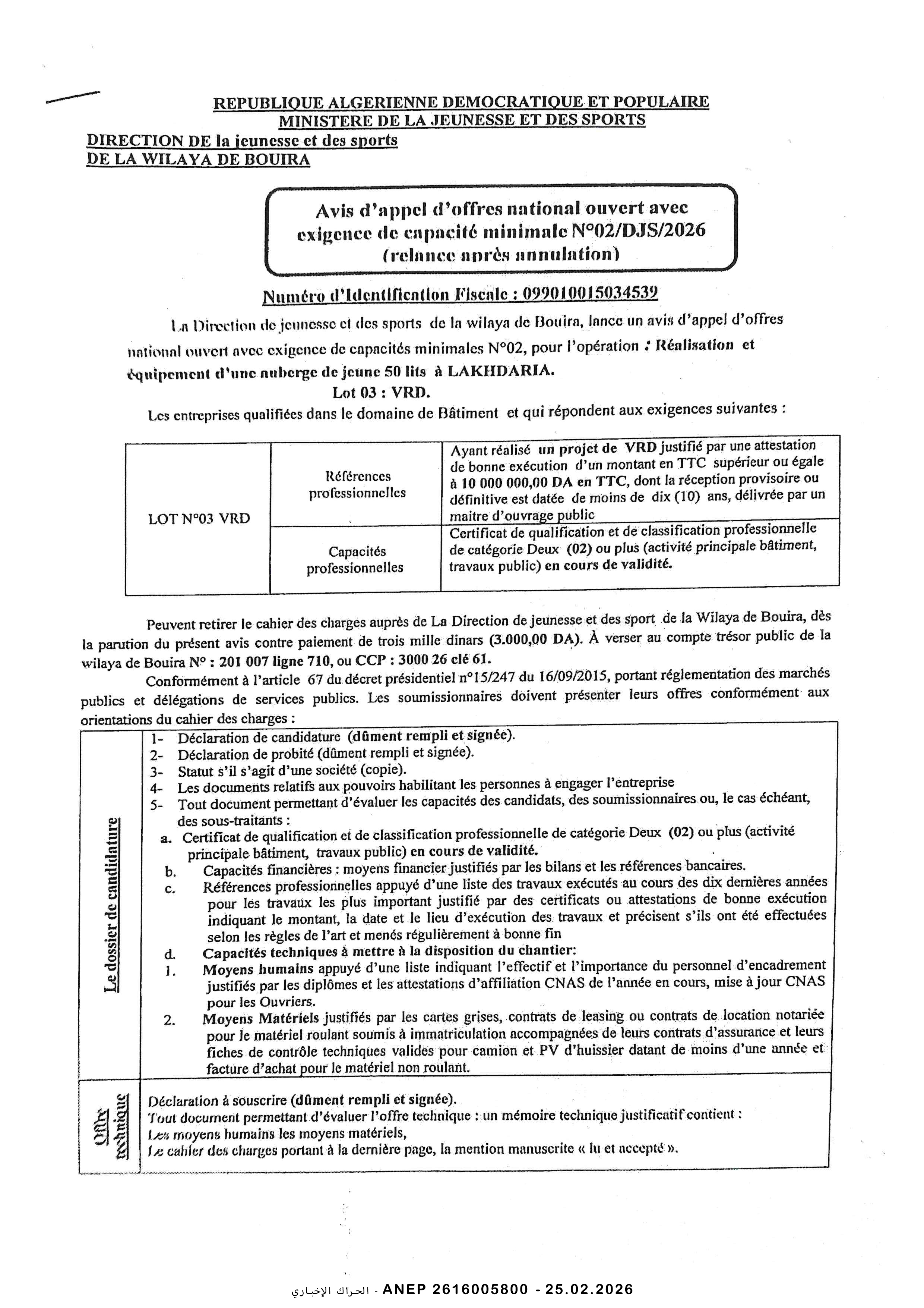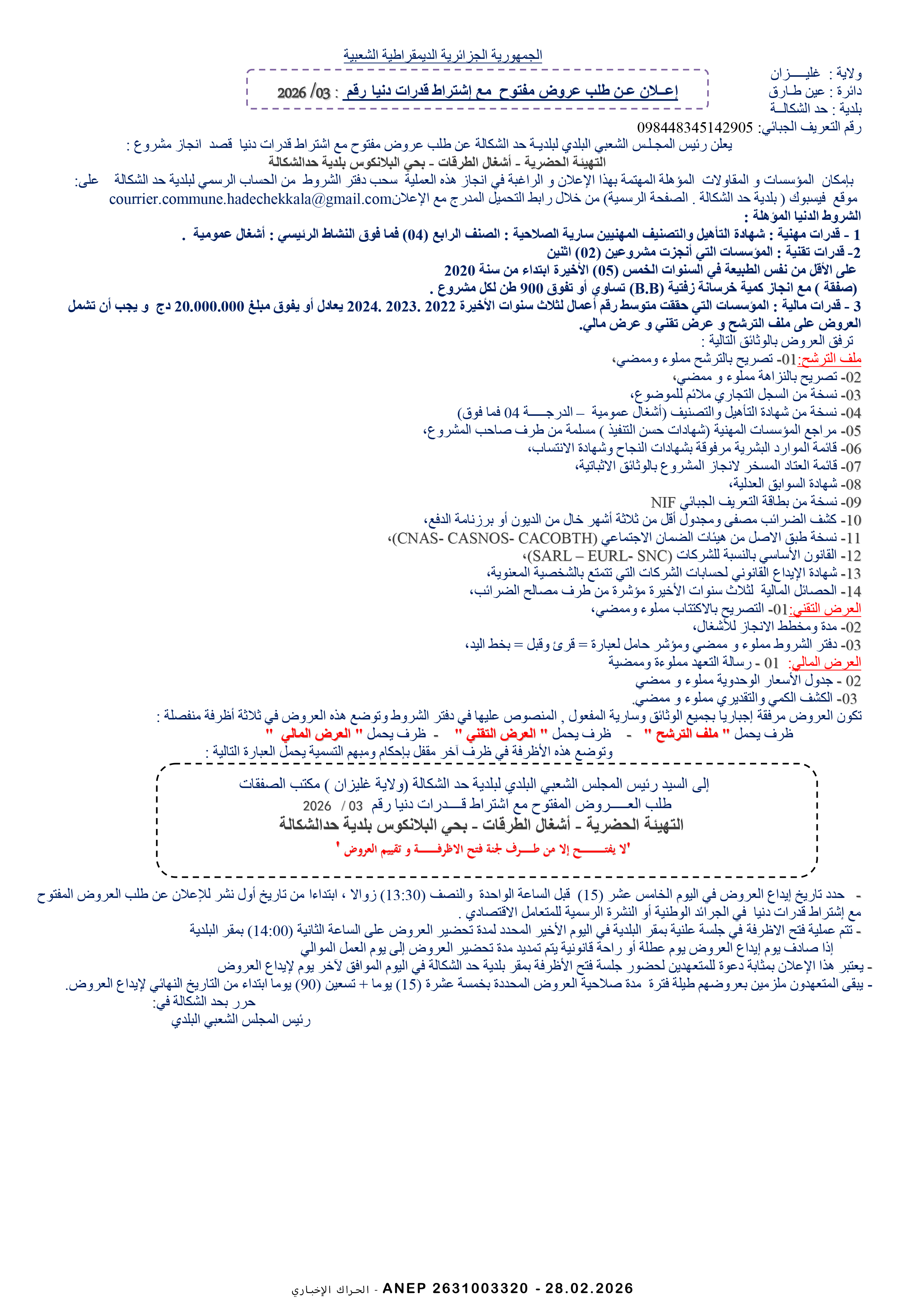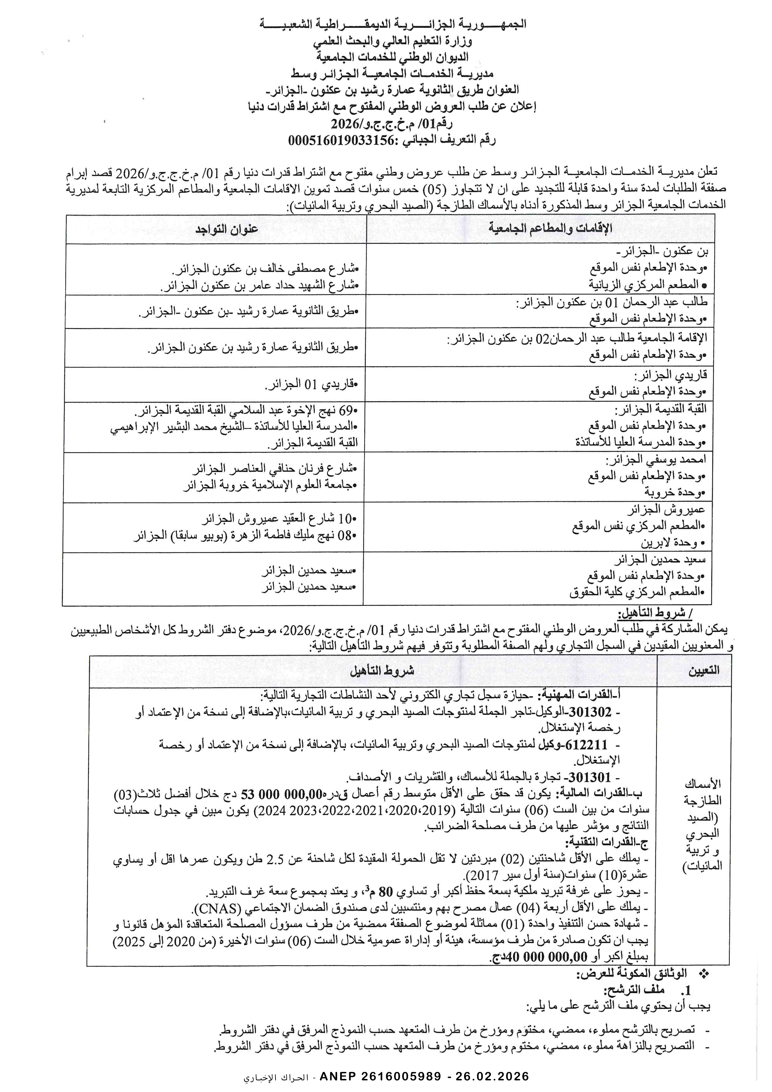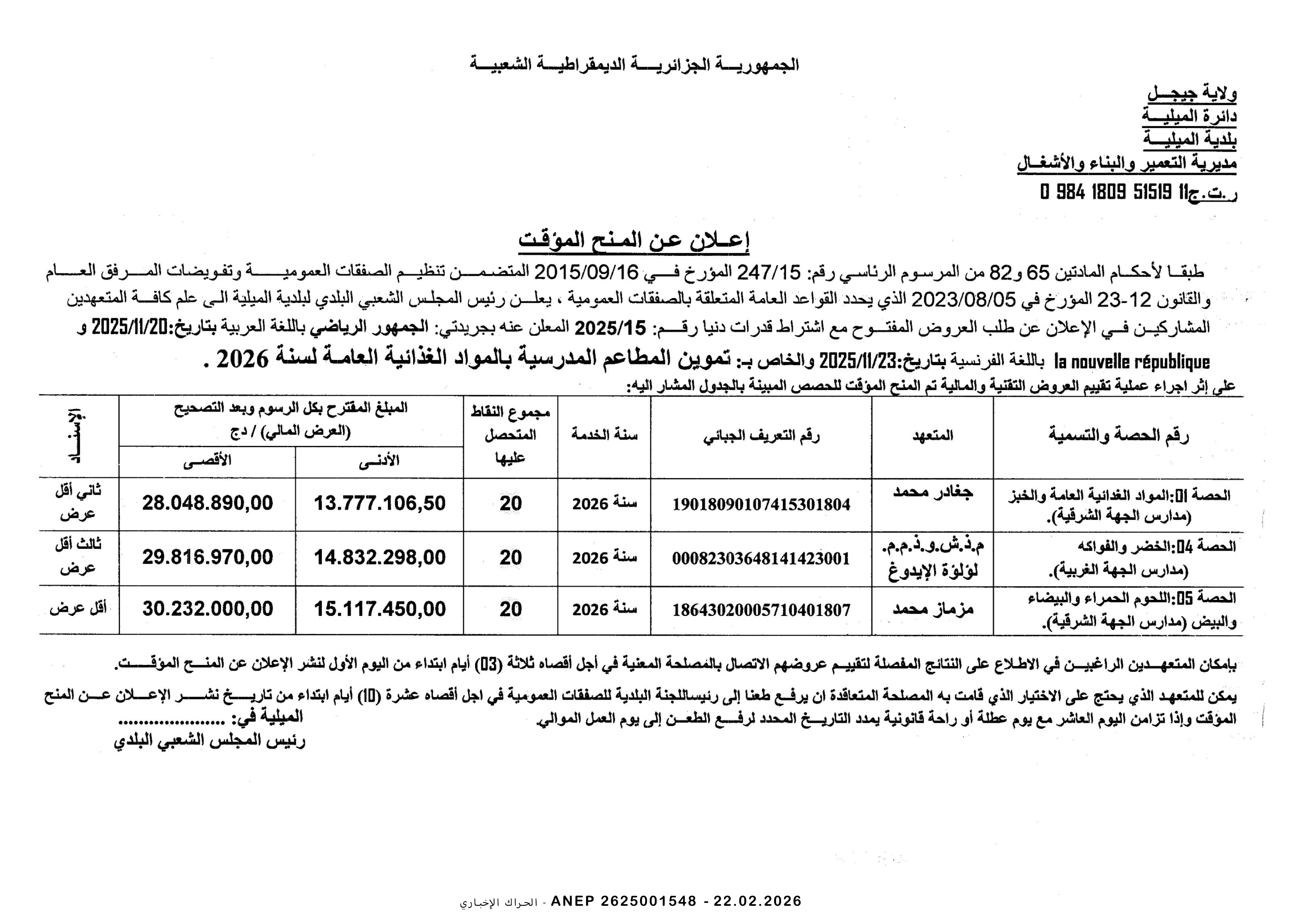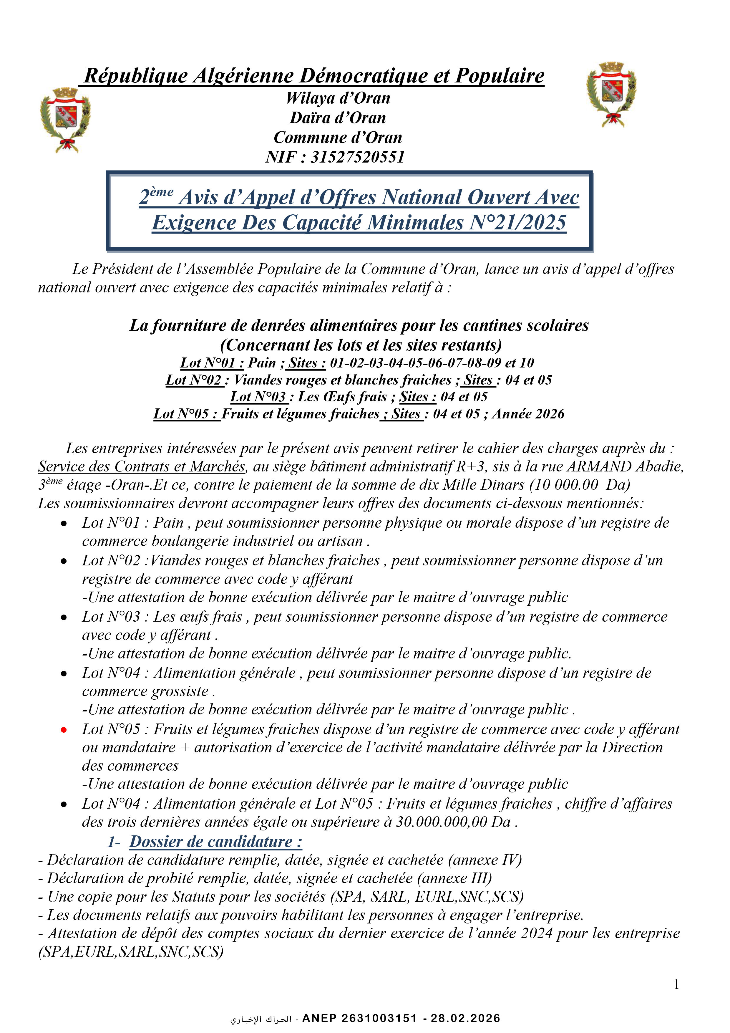 إعلان عن طلب عروض وطني مفتوح