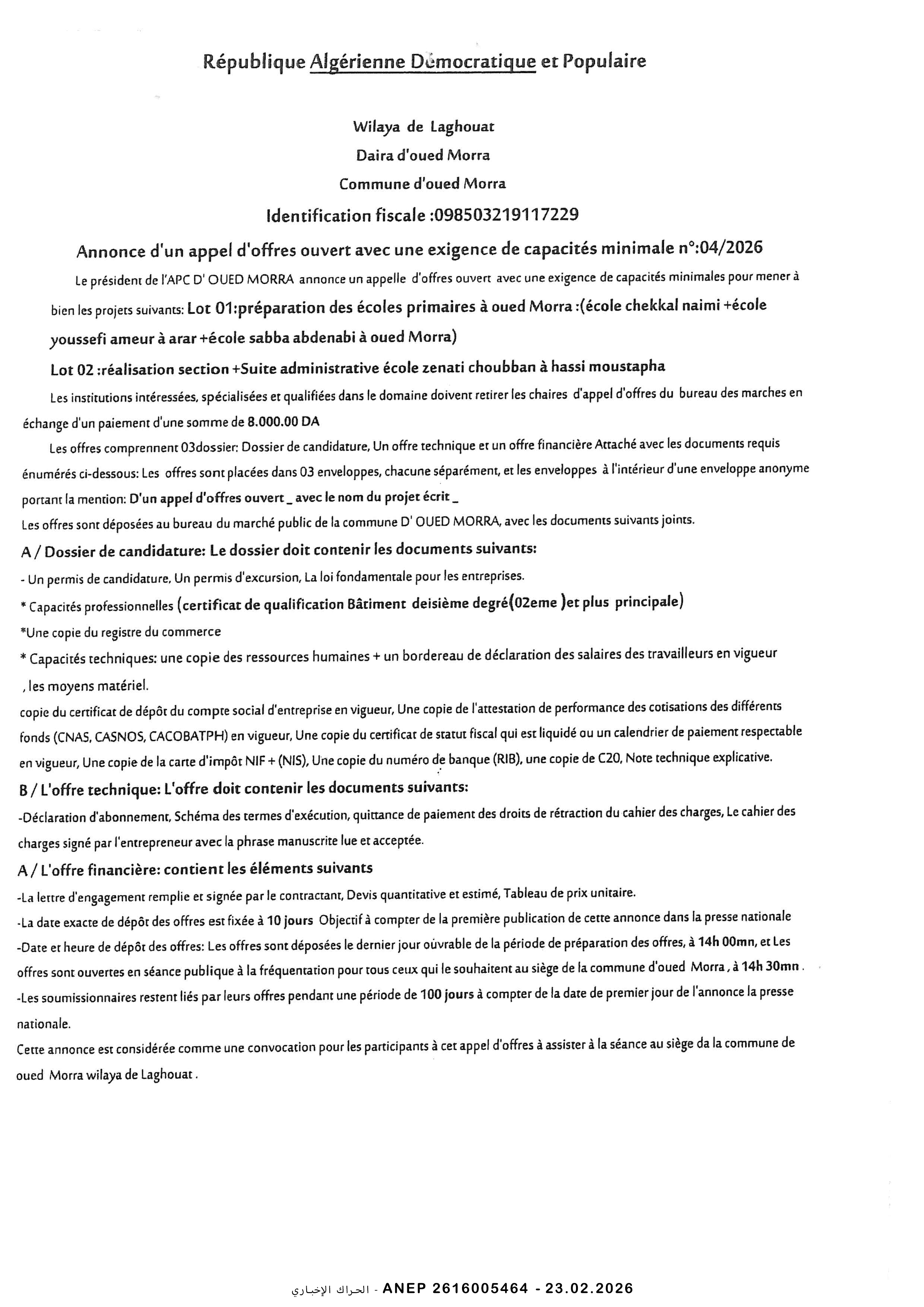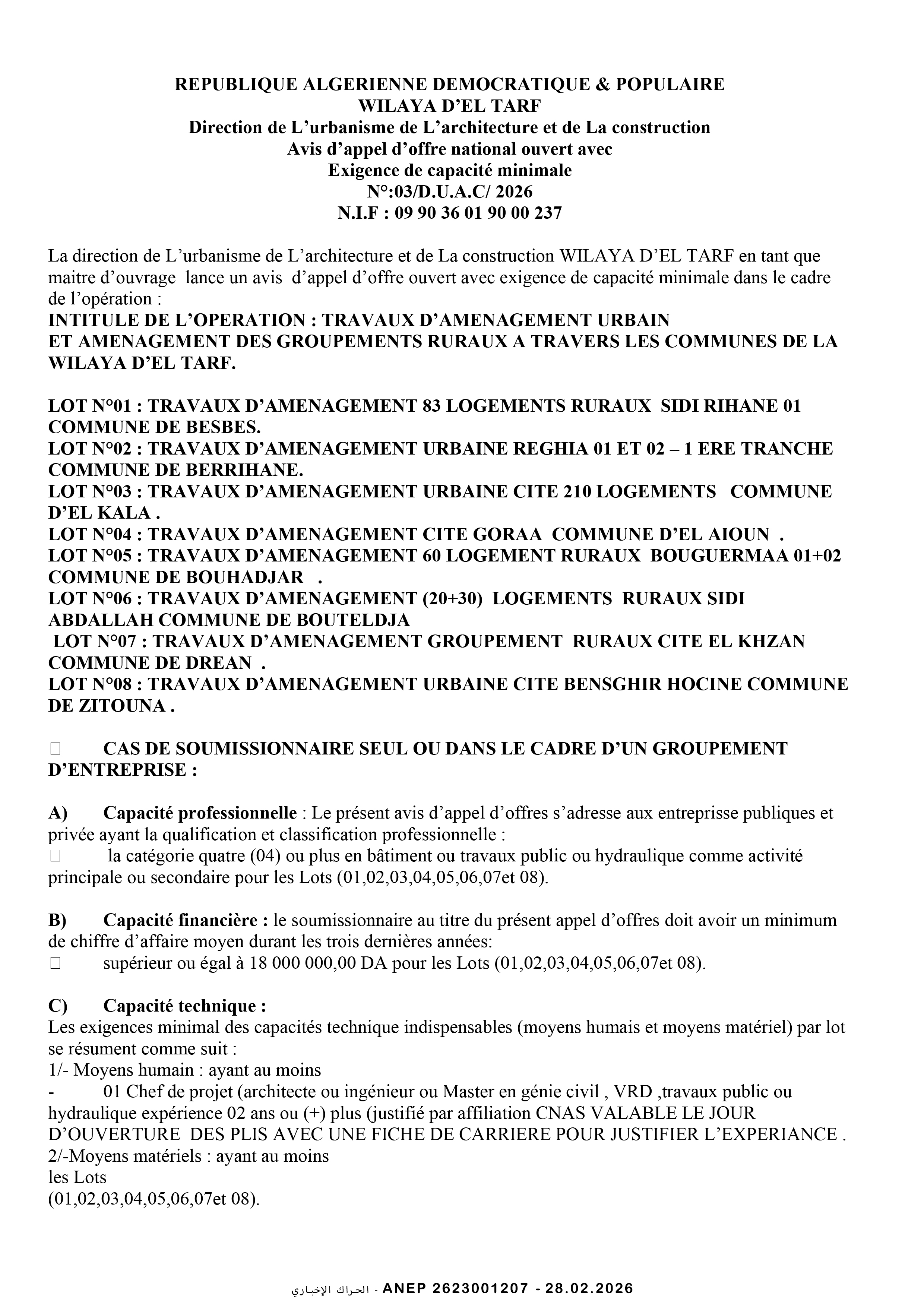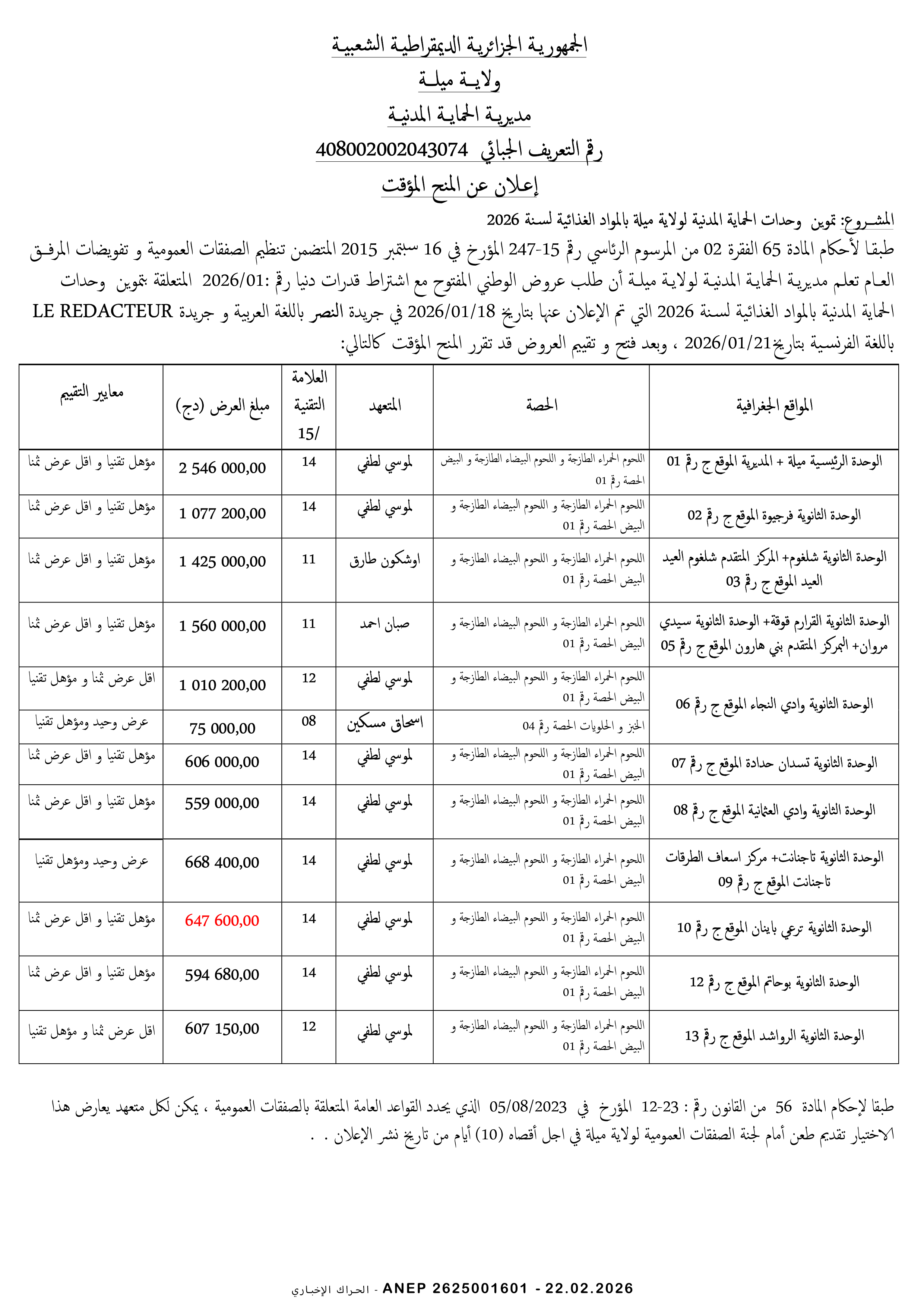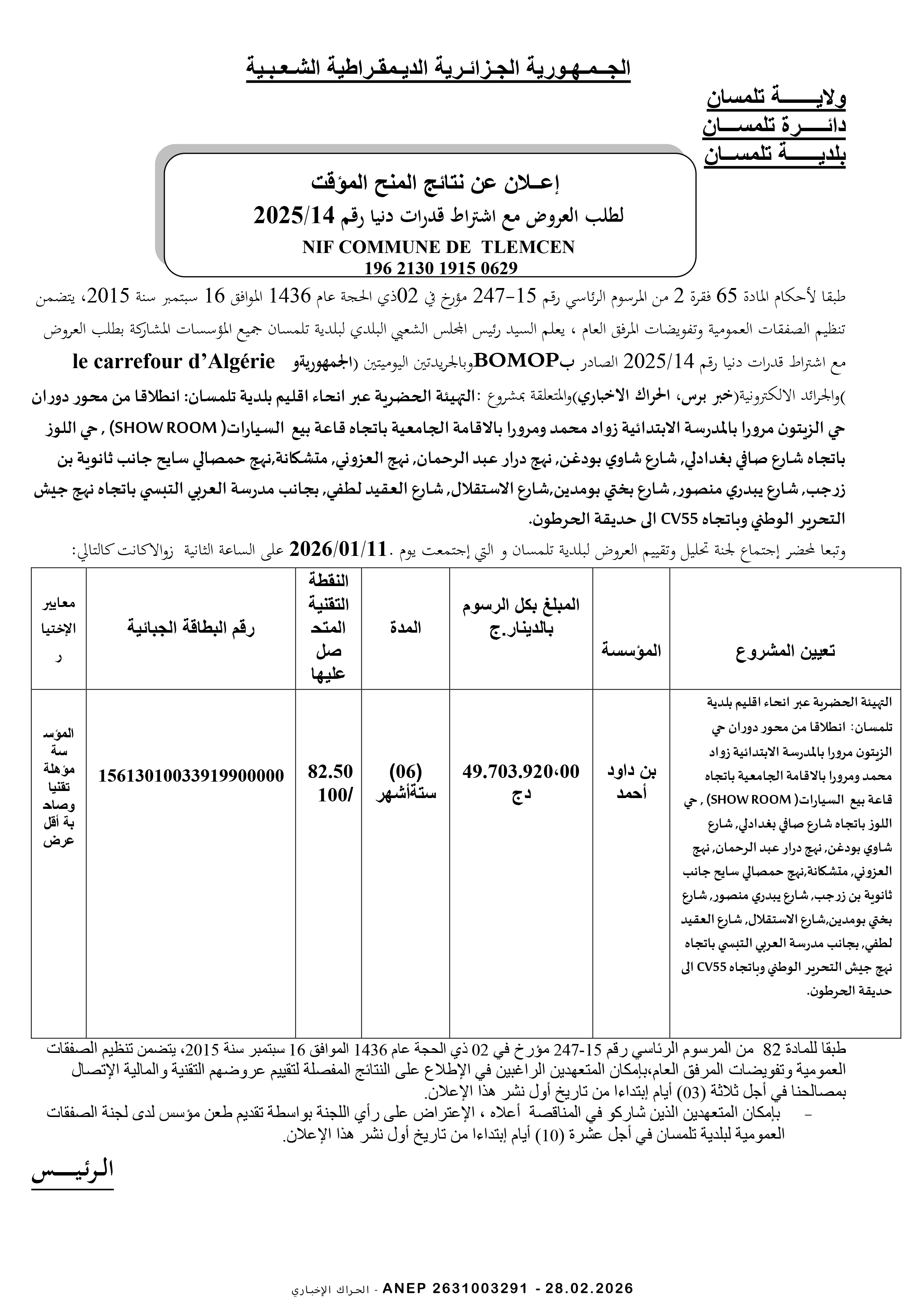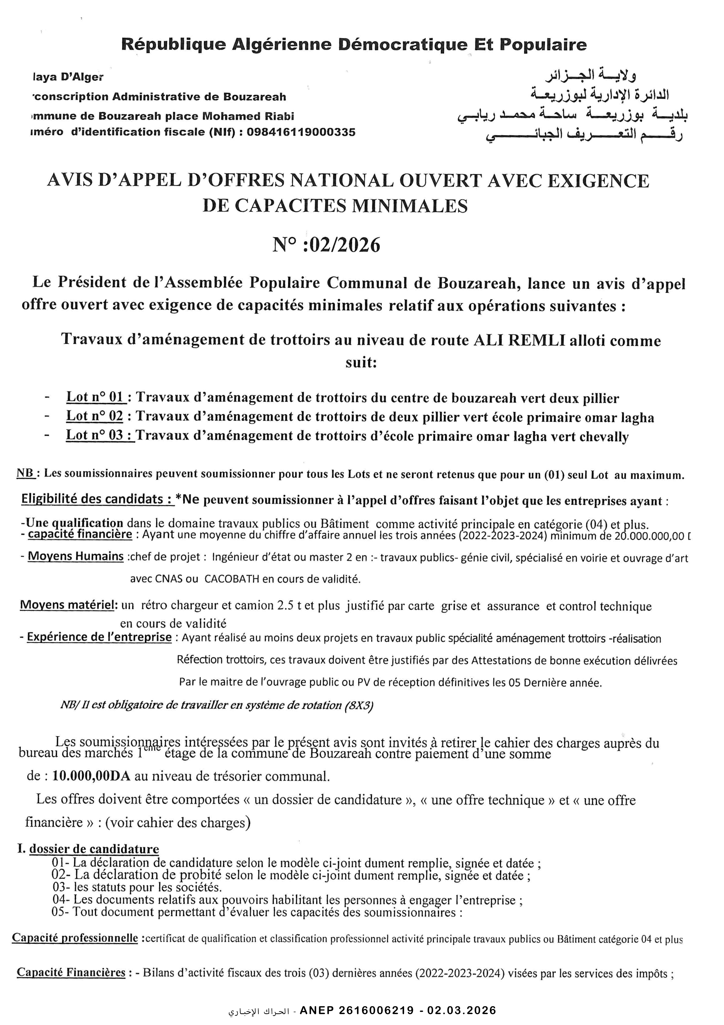 إعلان عن طلب عروض وطني مفتوح
