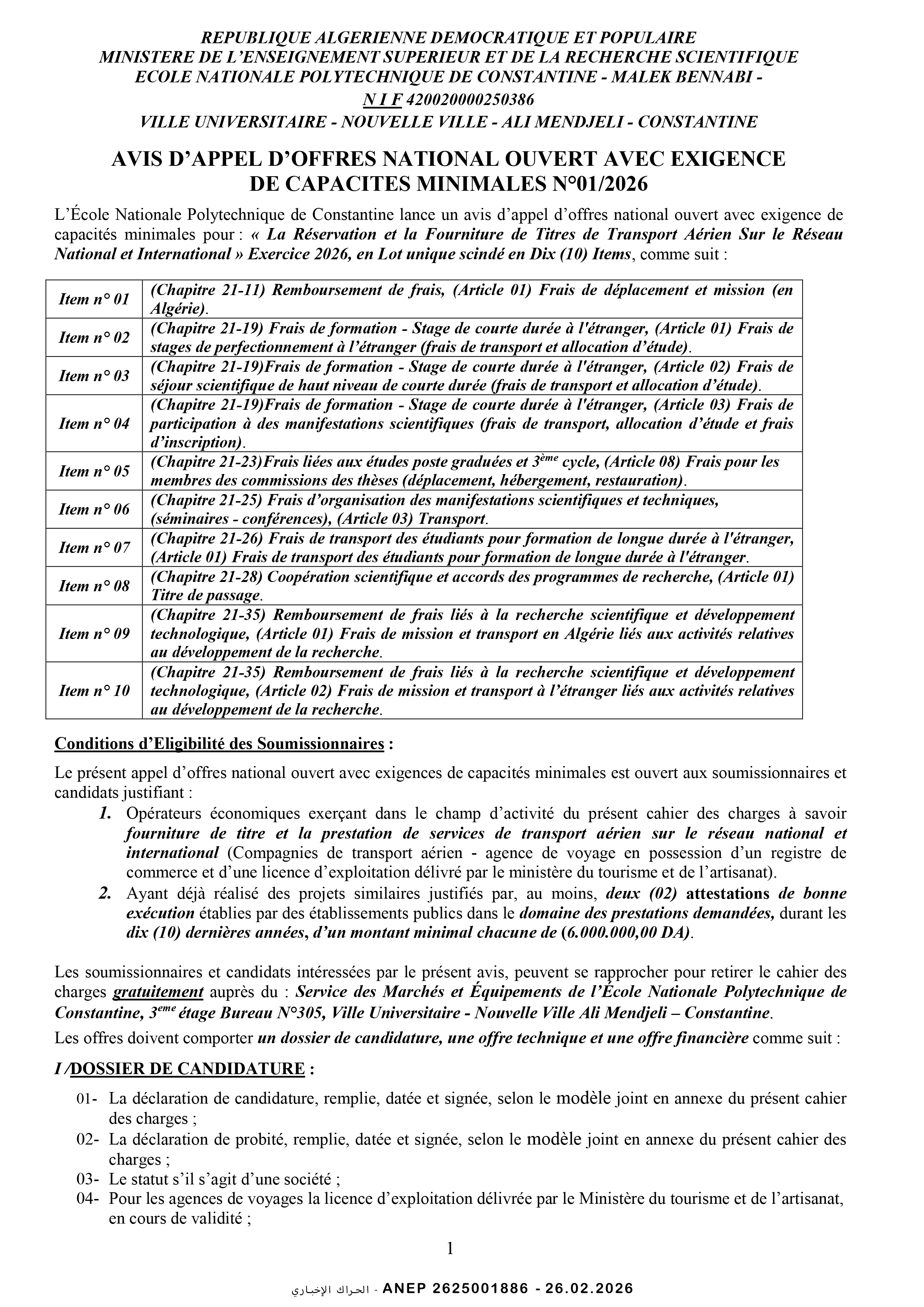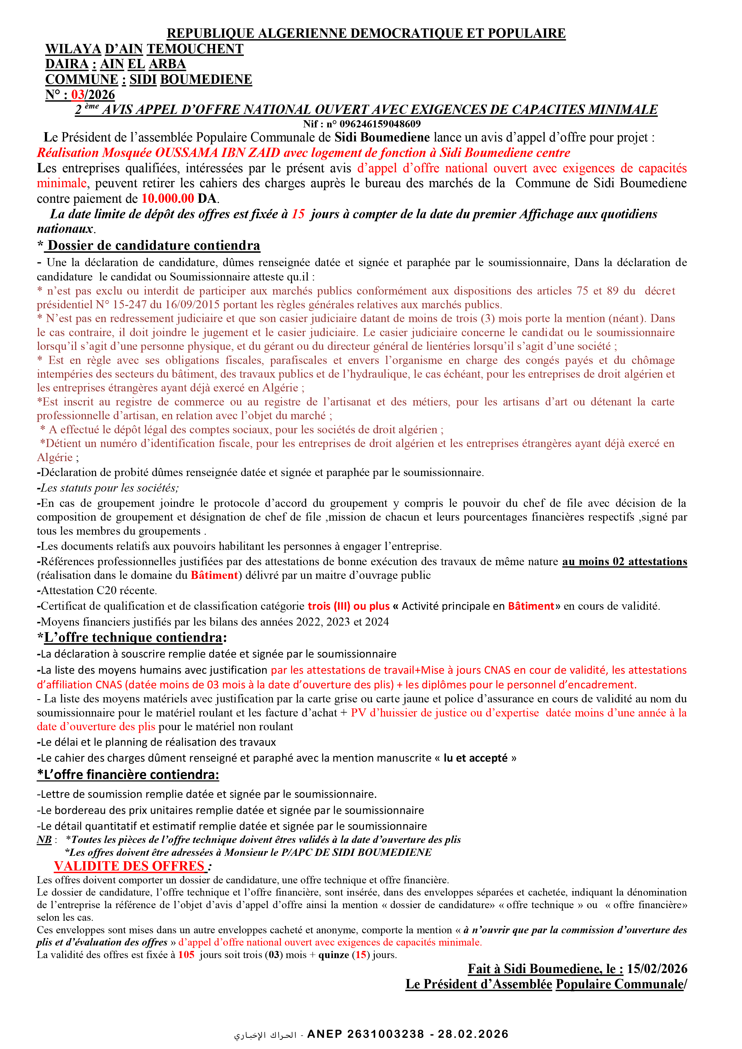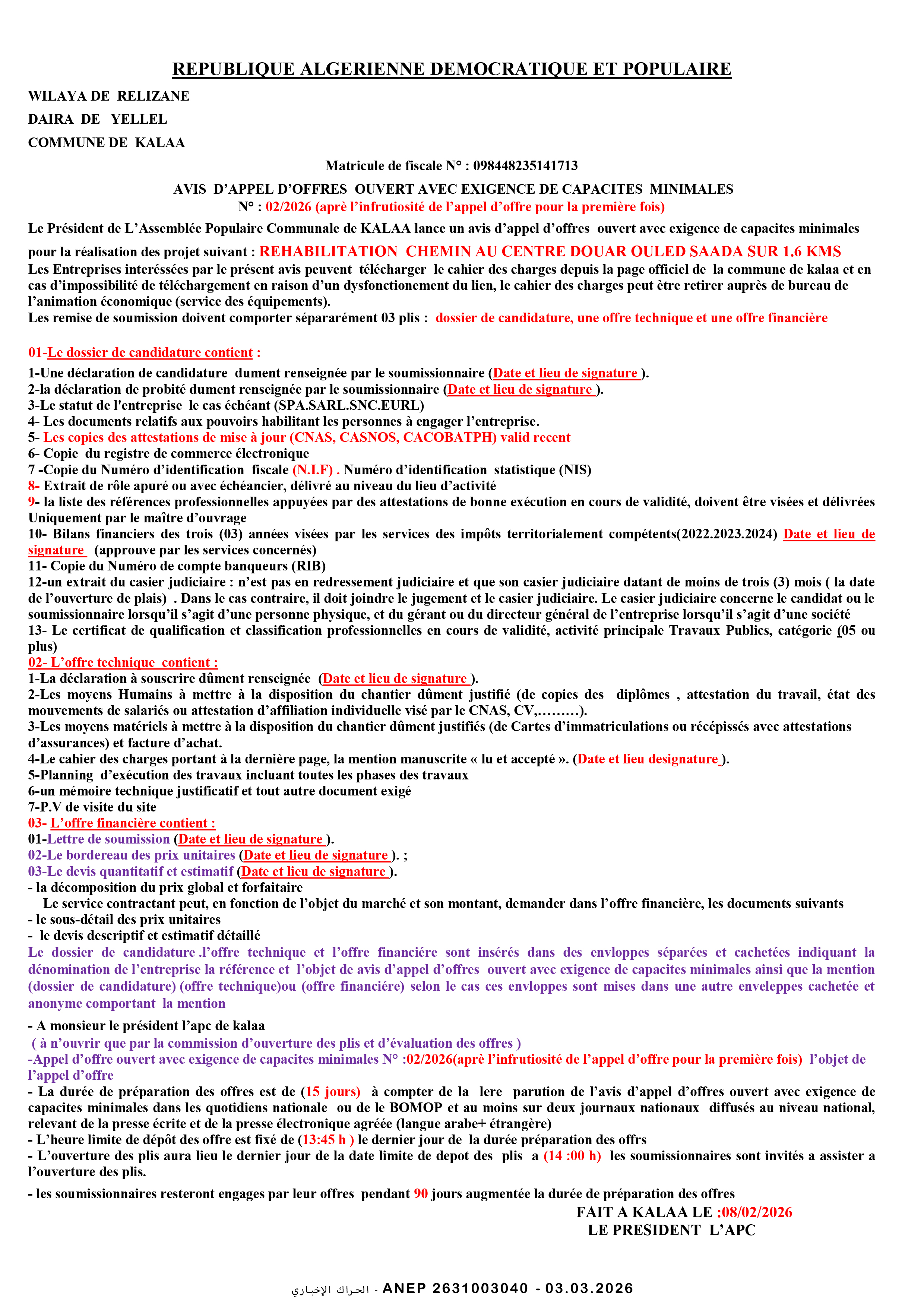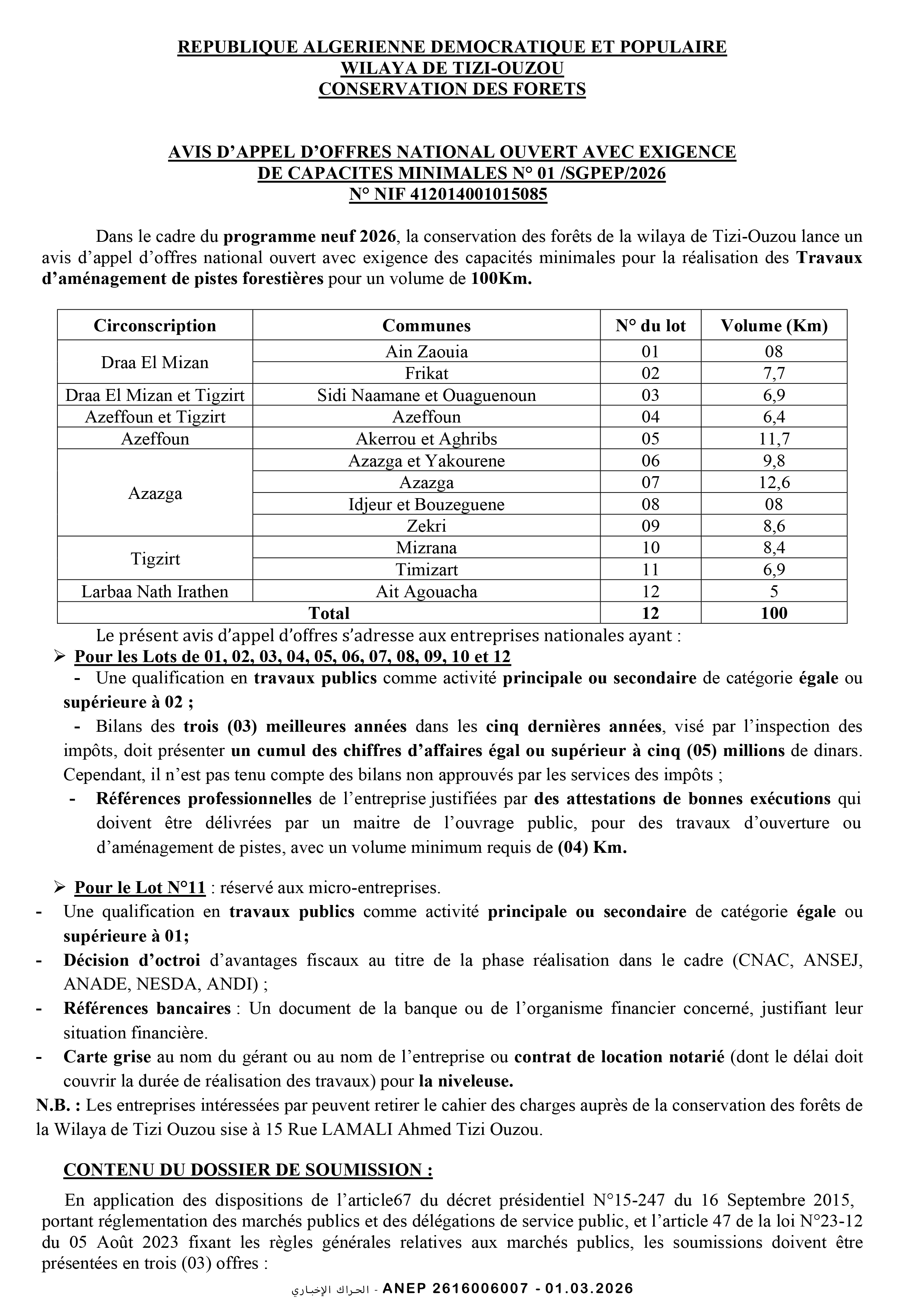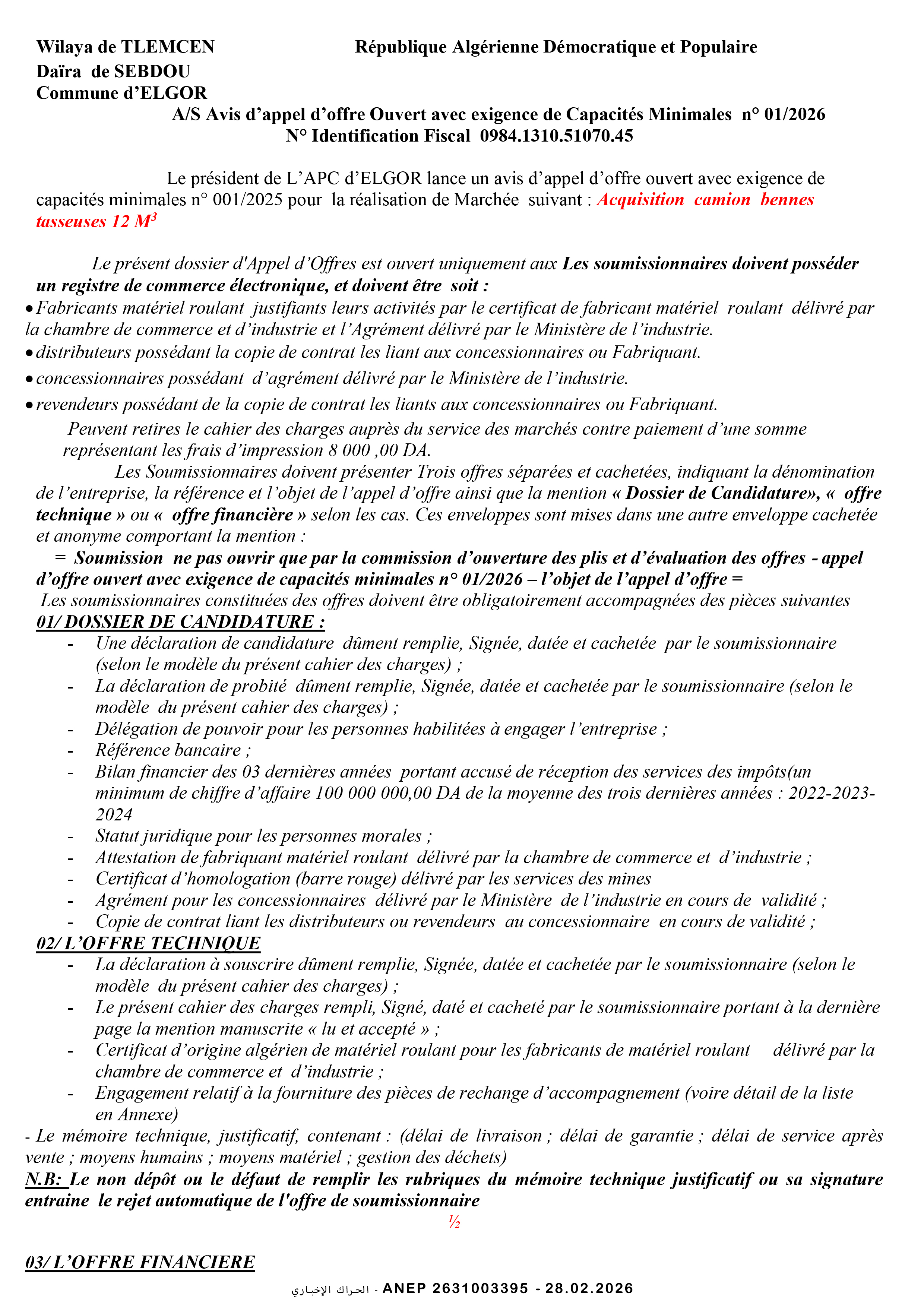إعلان عن طلب عروض وطني مفتوح
