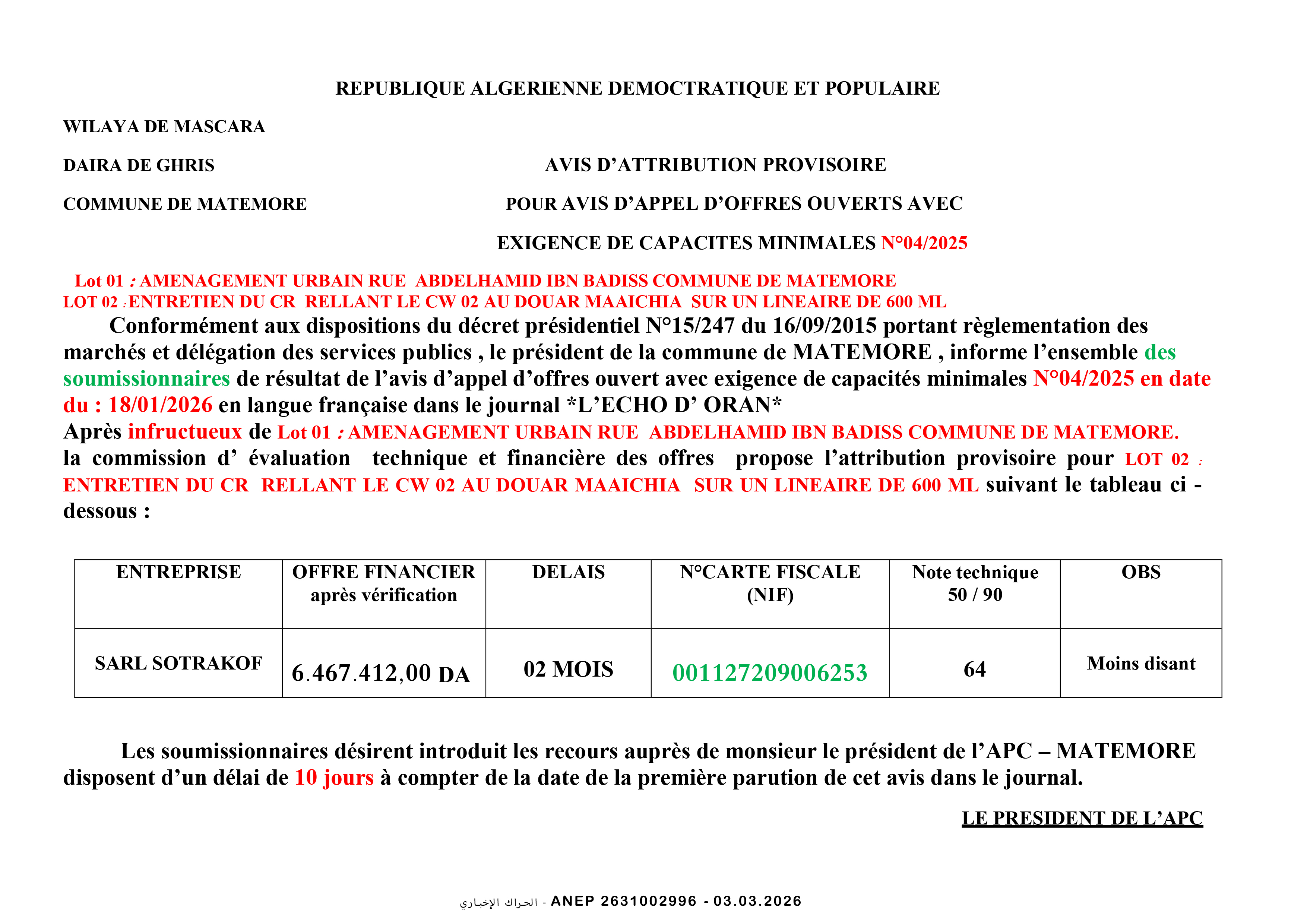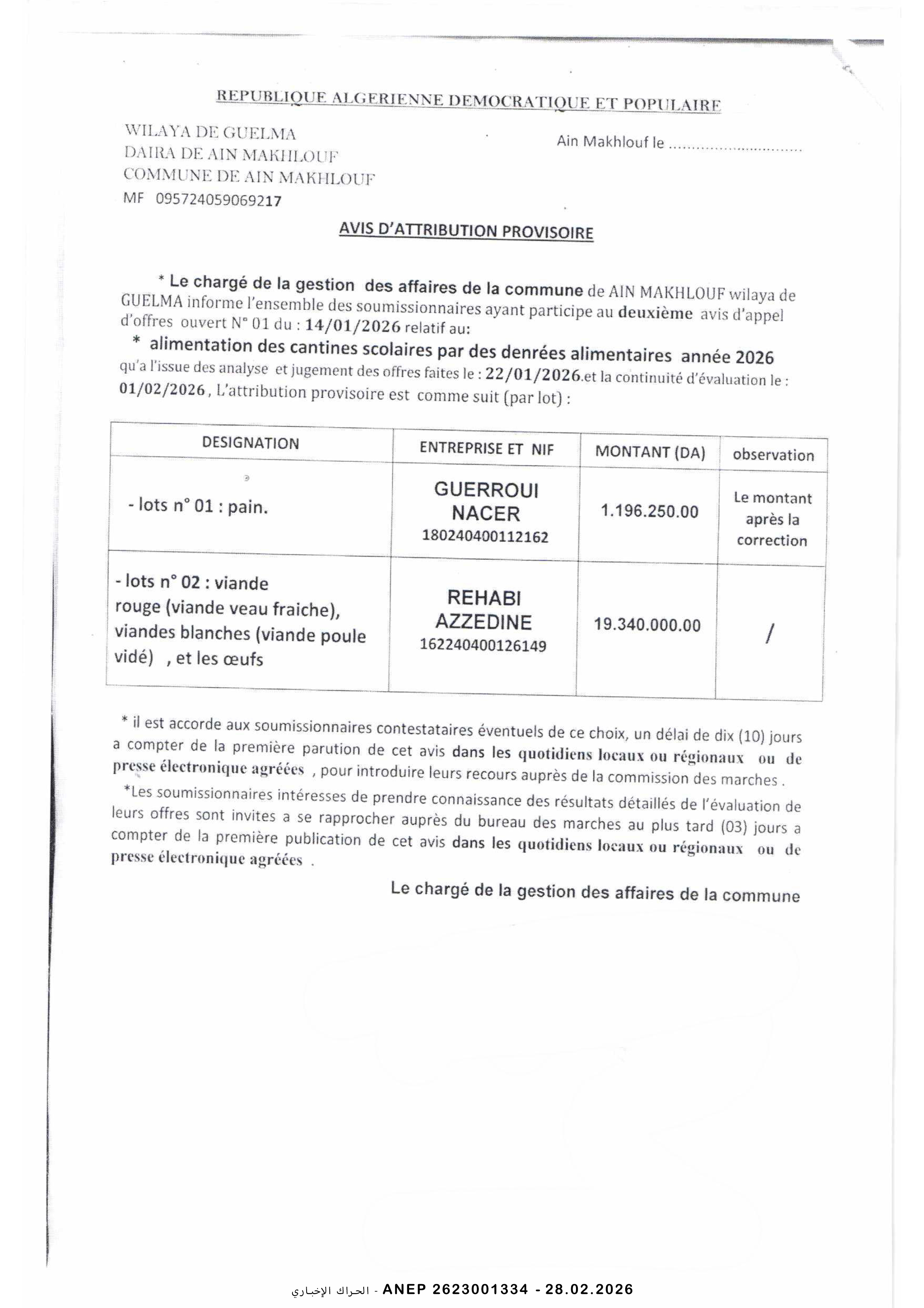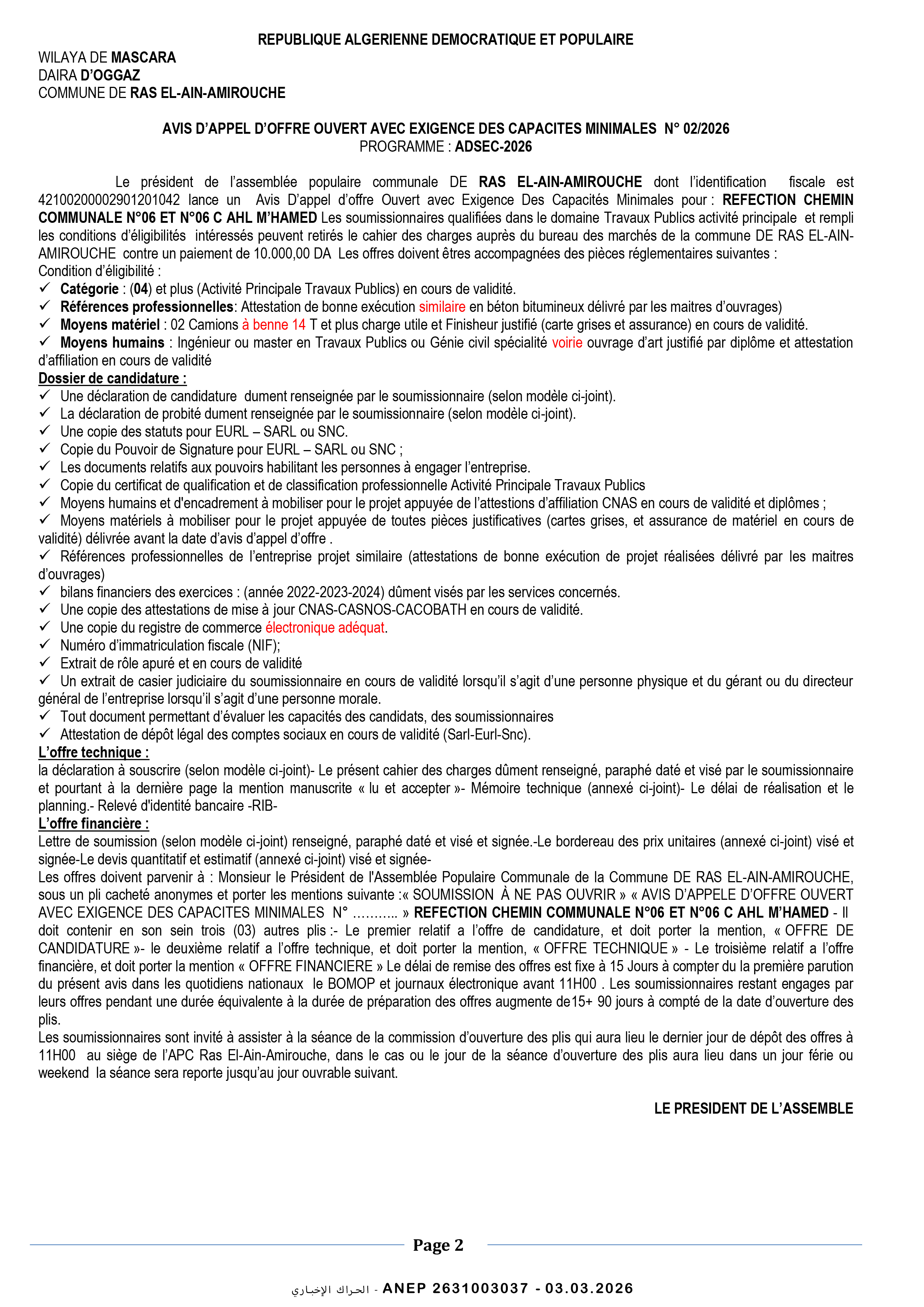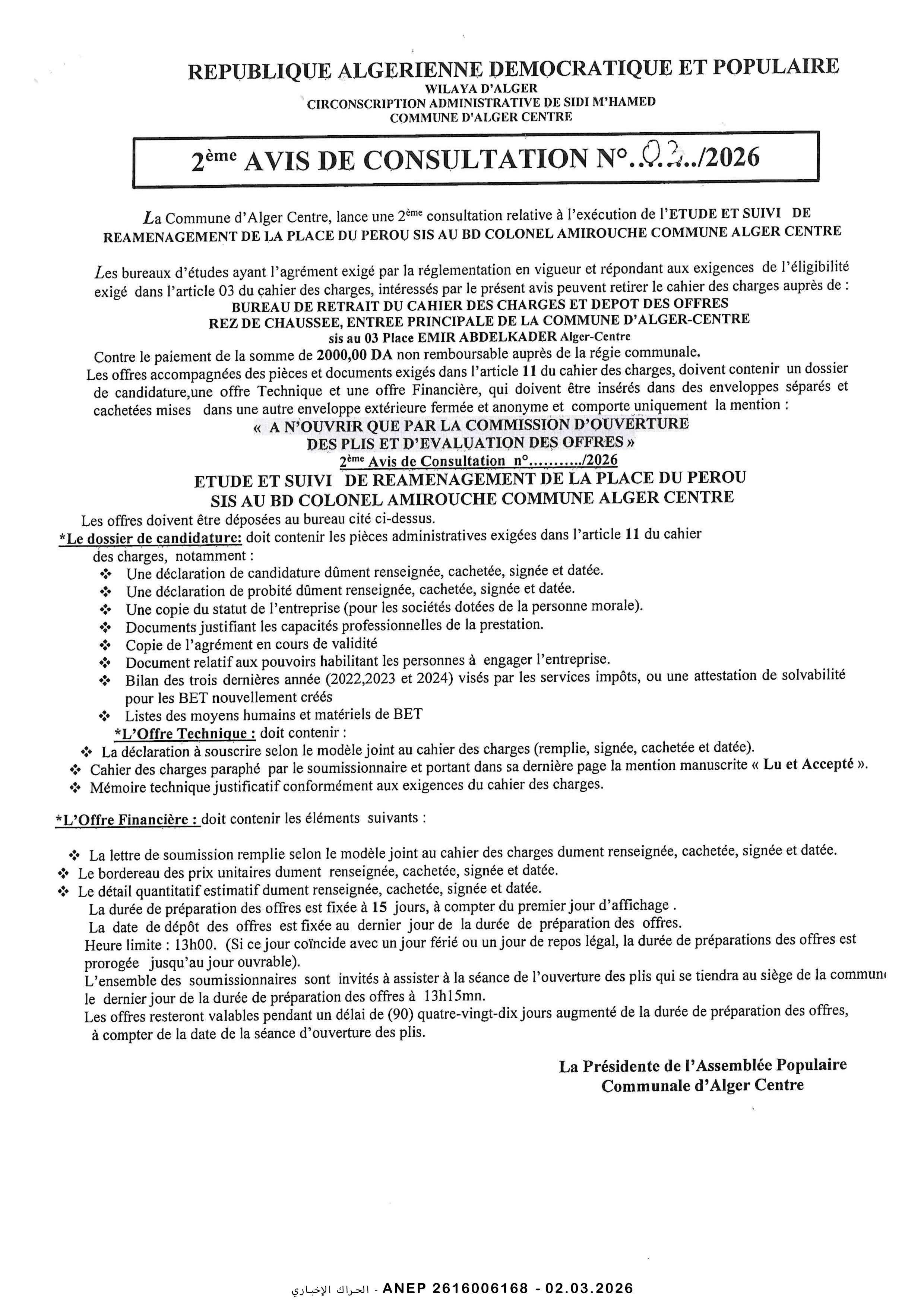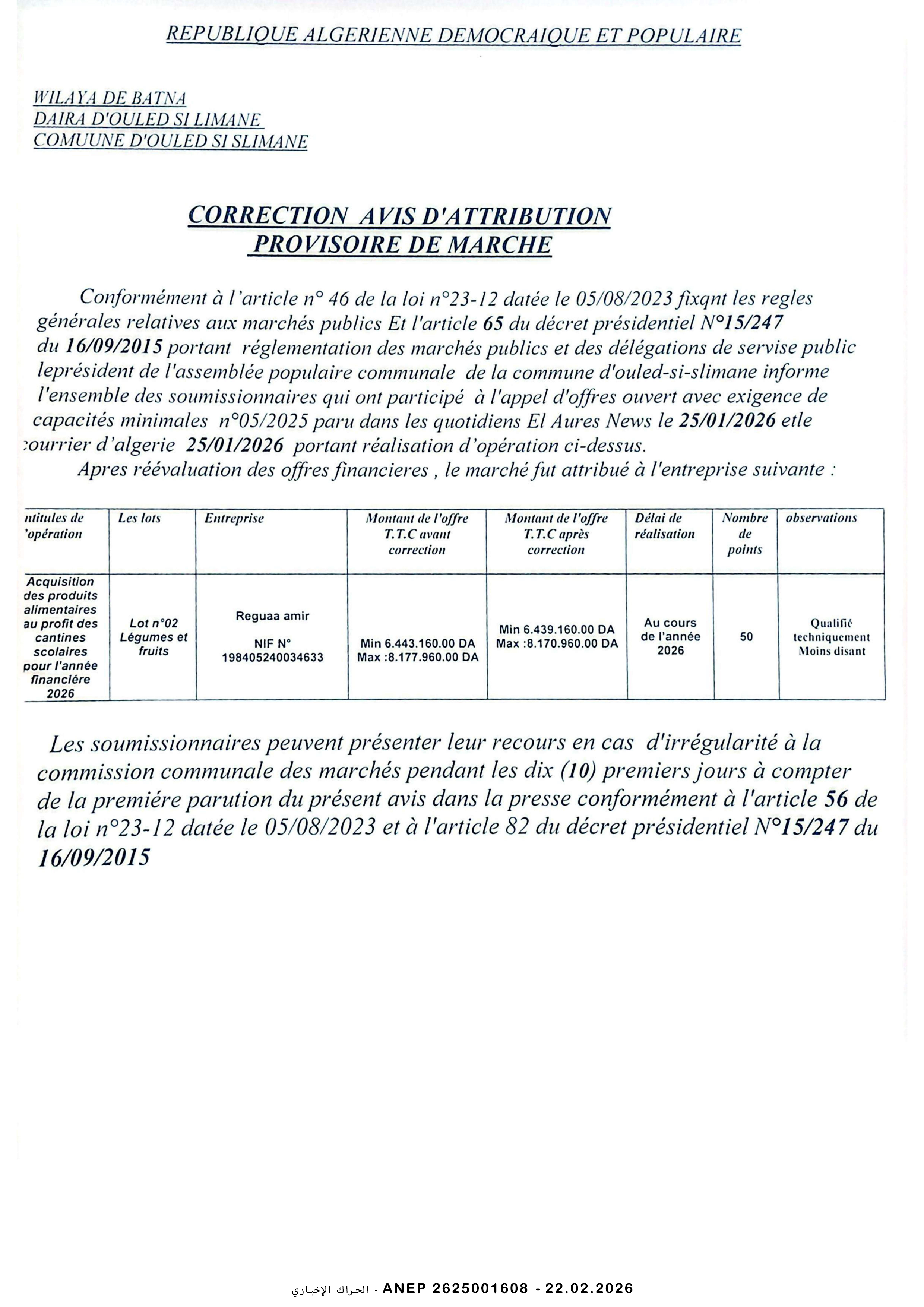 إعلان عن طلب عروض وطني مفتوح