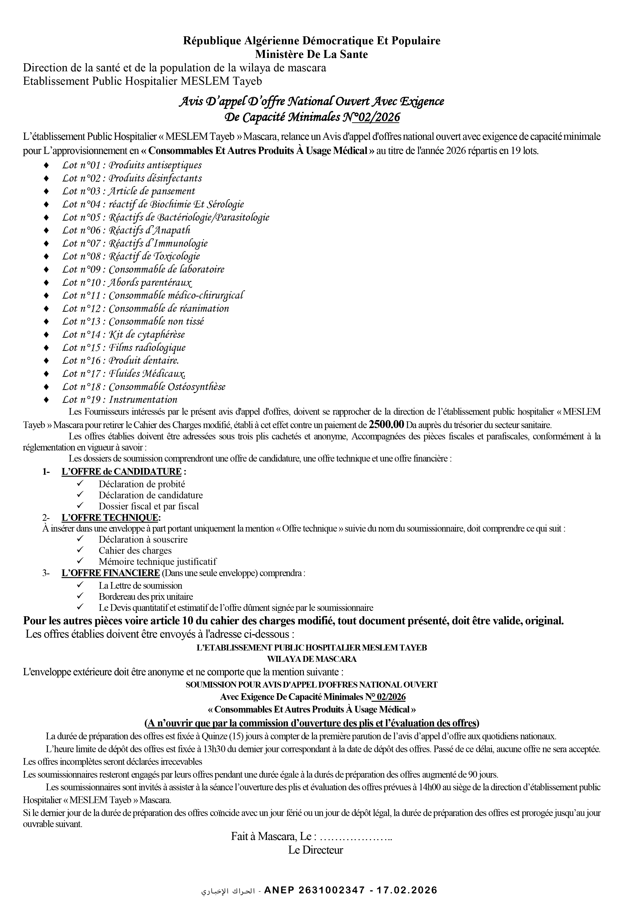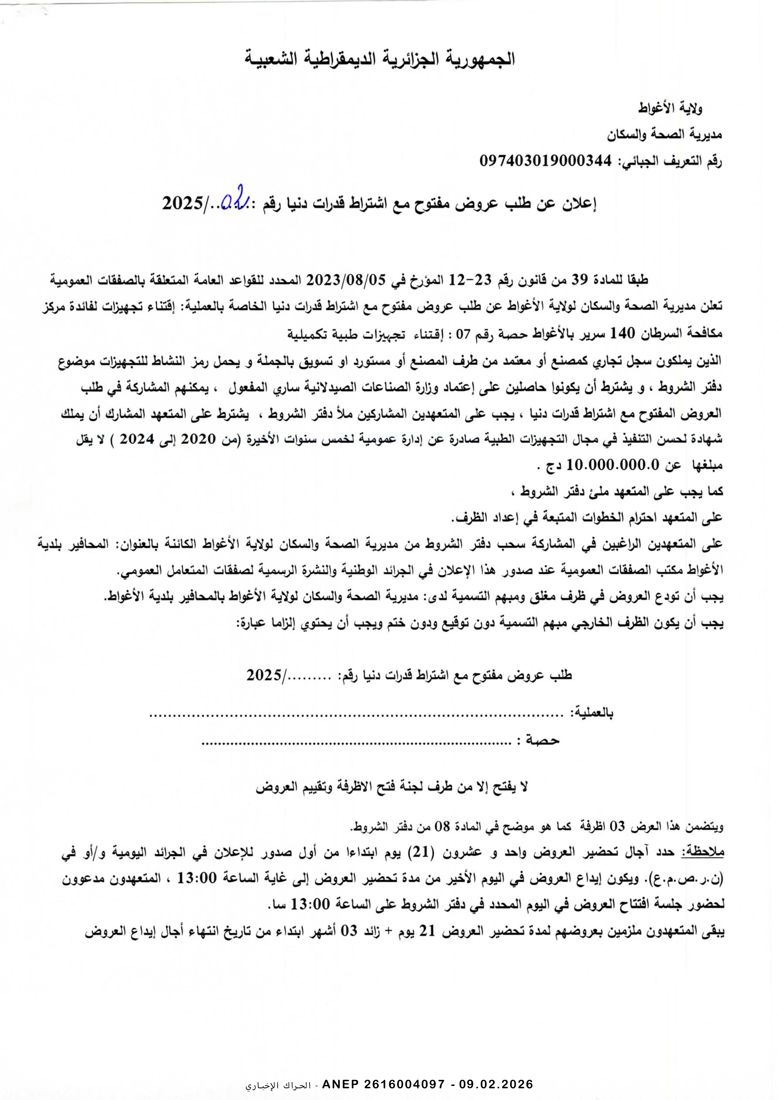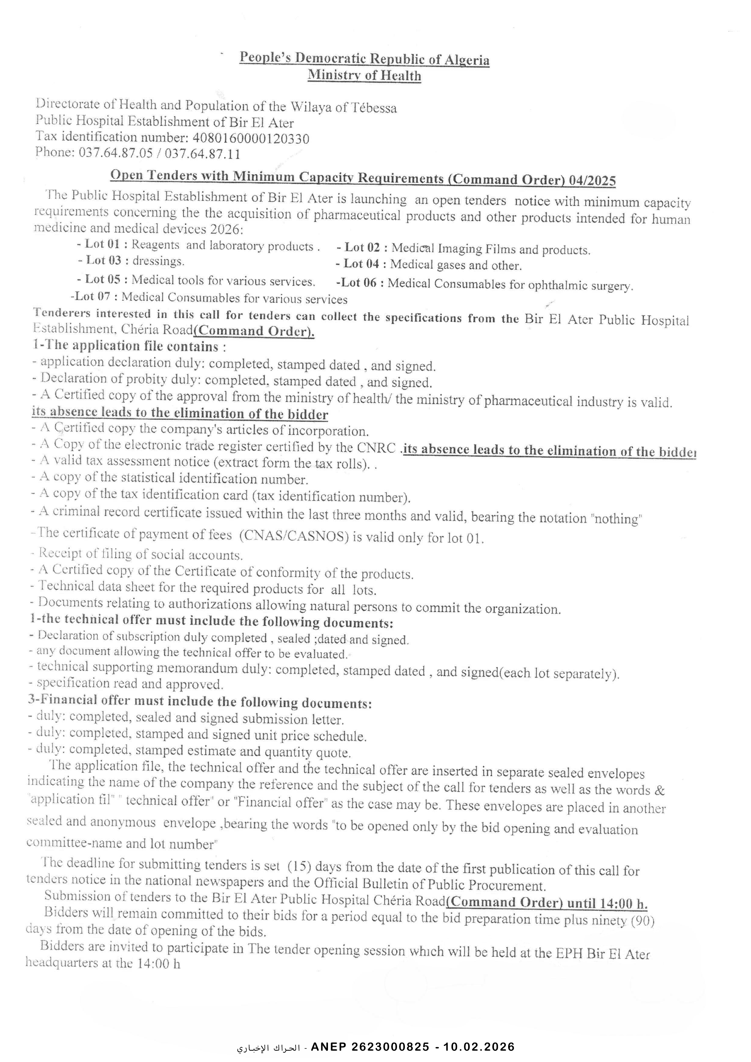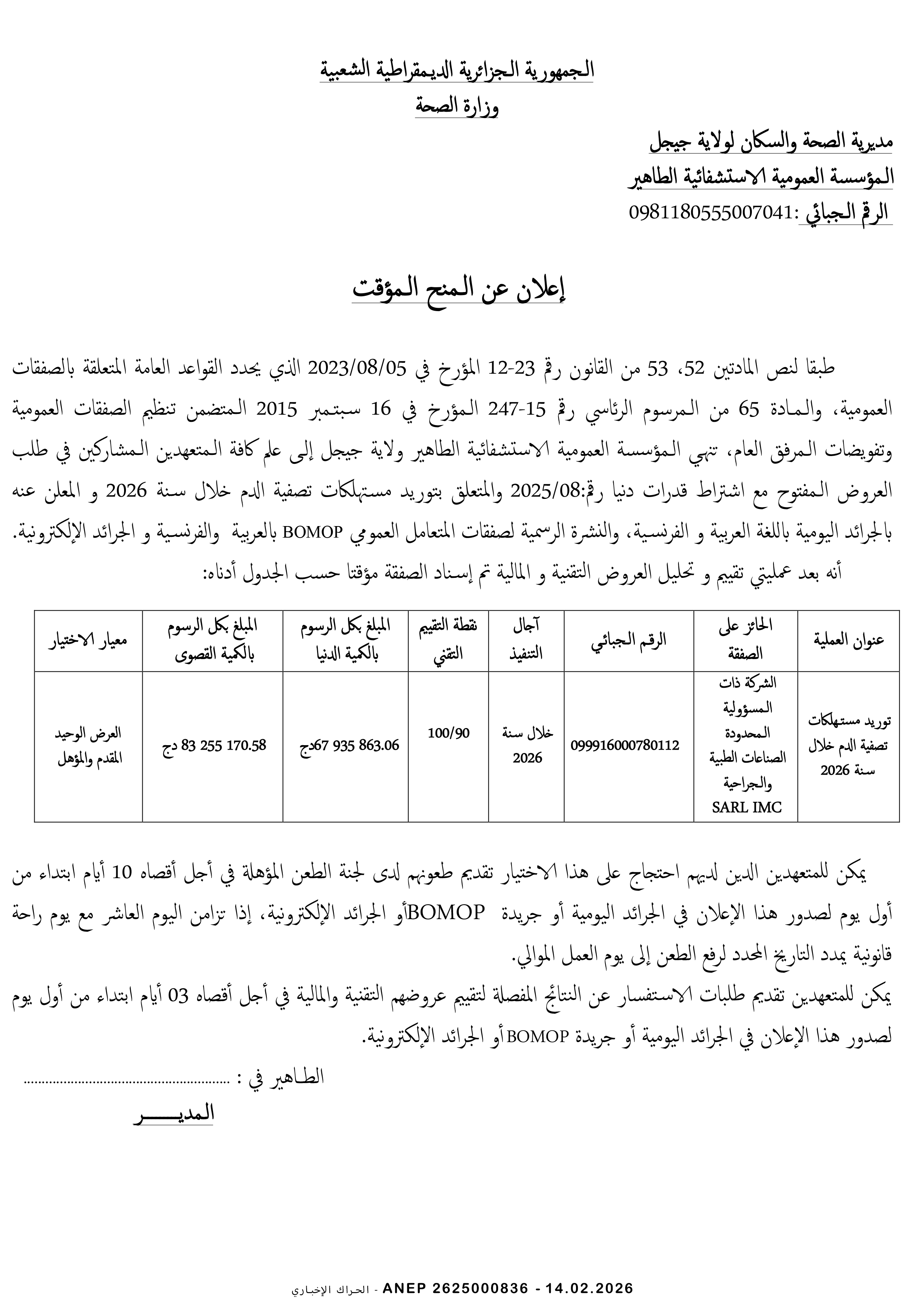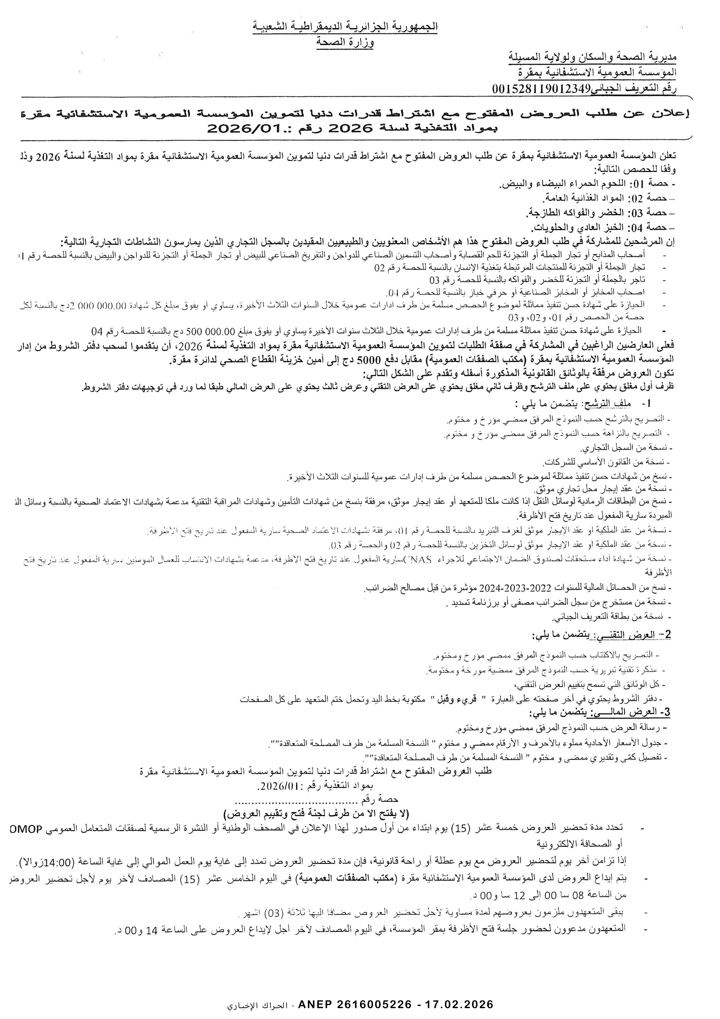 إمداد بالمواد الطبية الاستهلاكية لسنة 2026