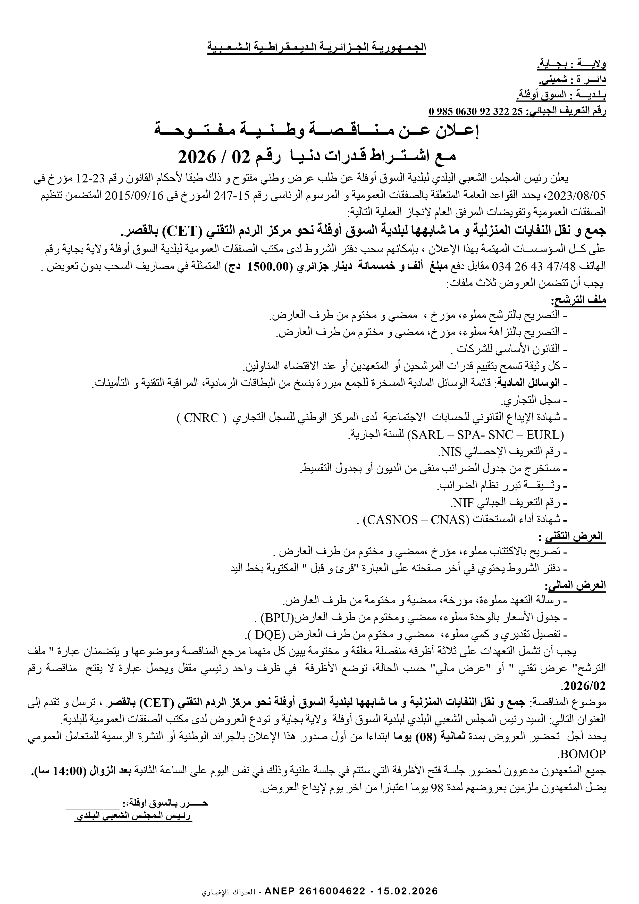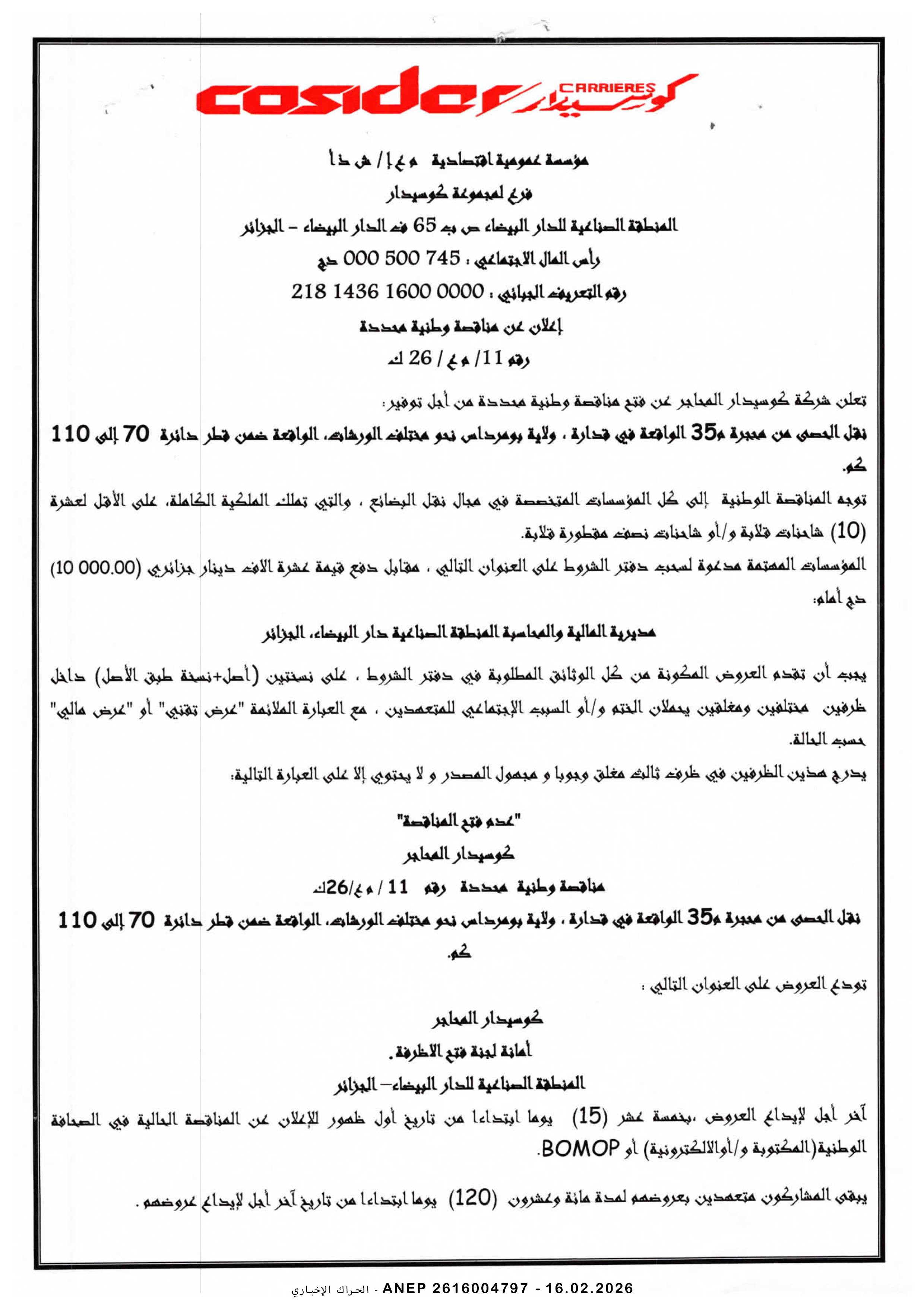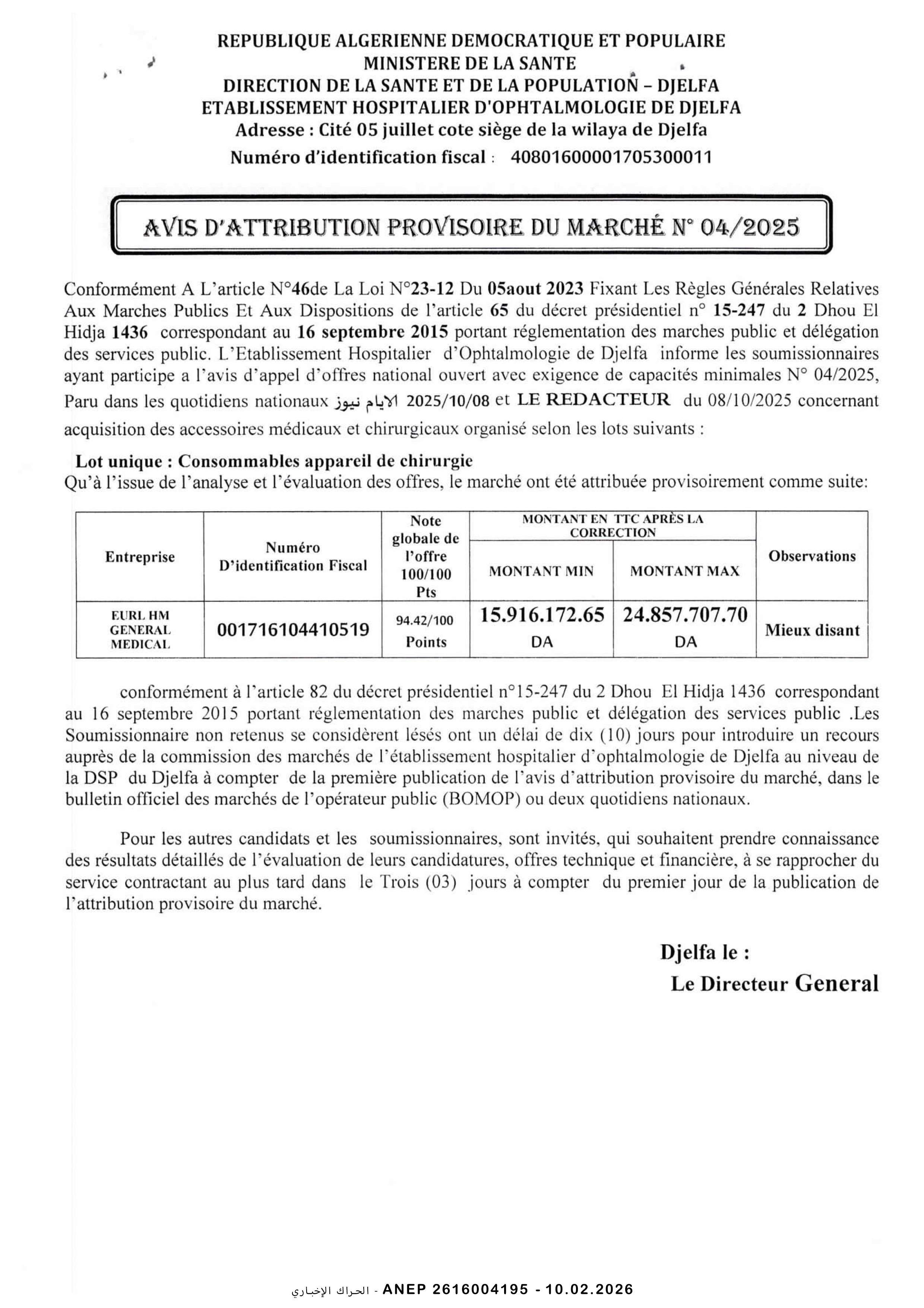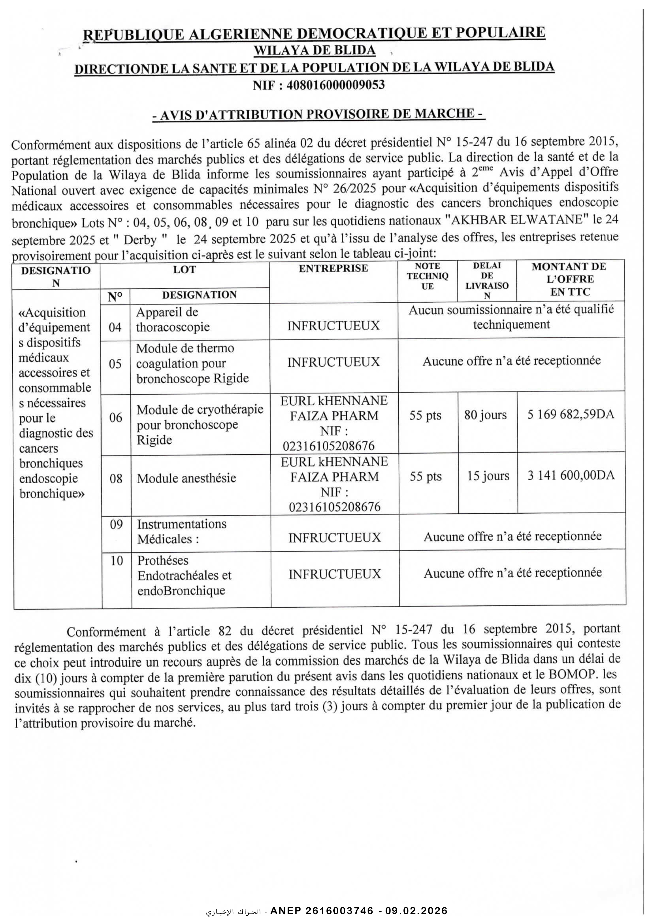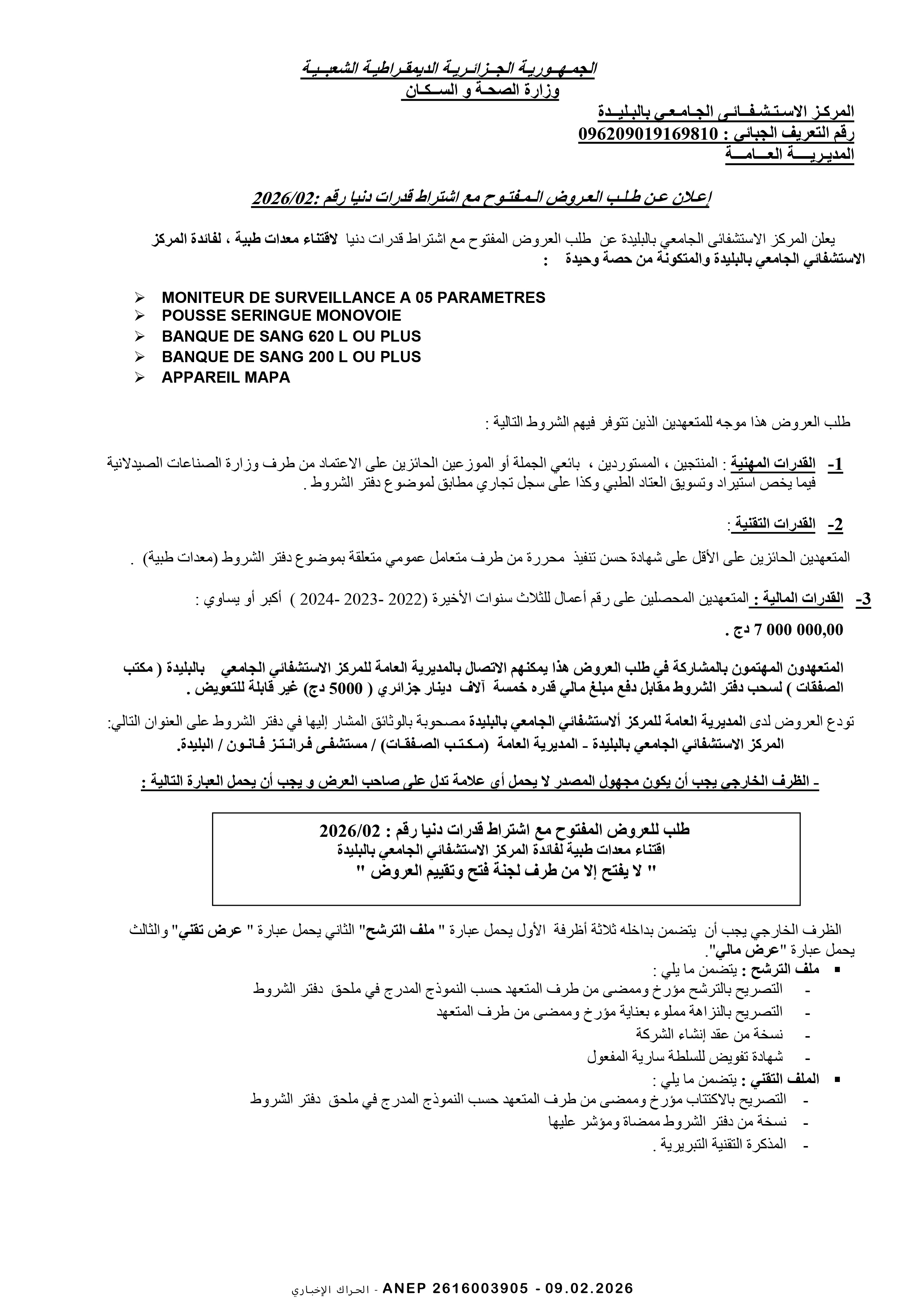 إمداد بالمواد الطبية الاستهلاكية لسنة 2026