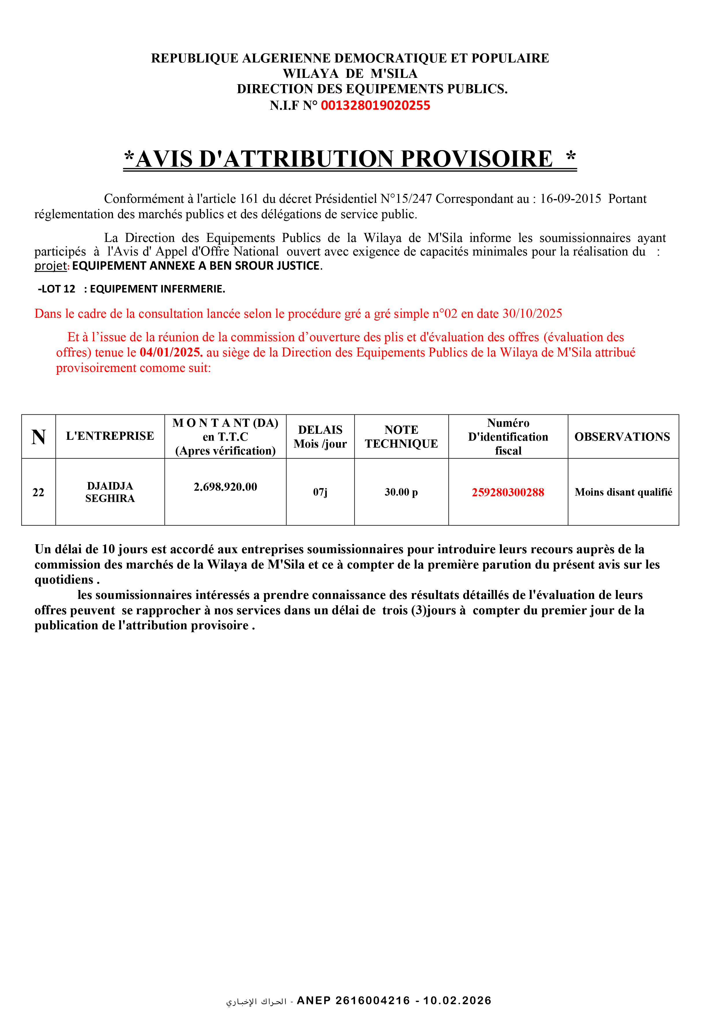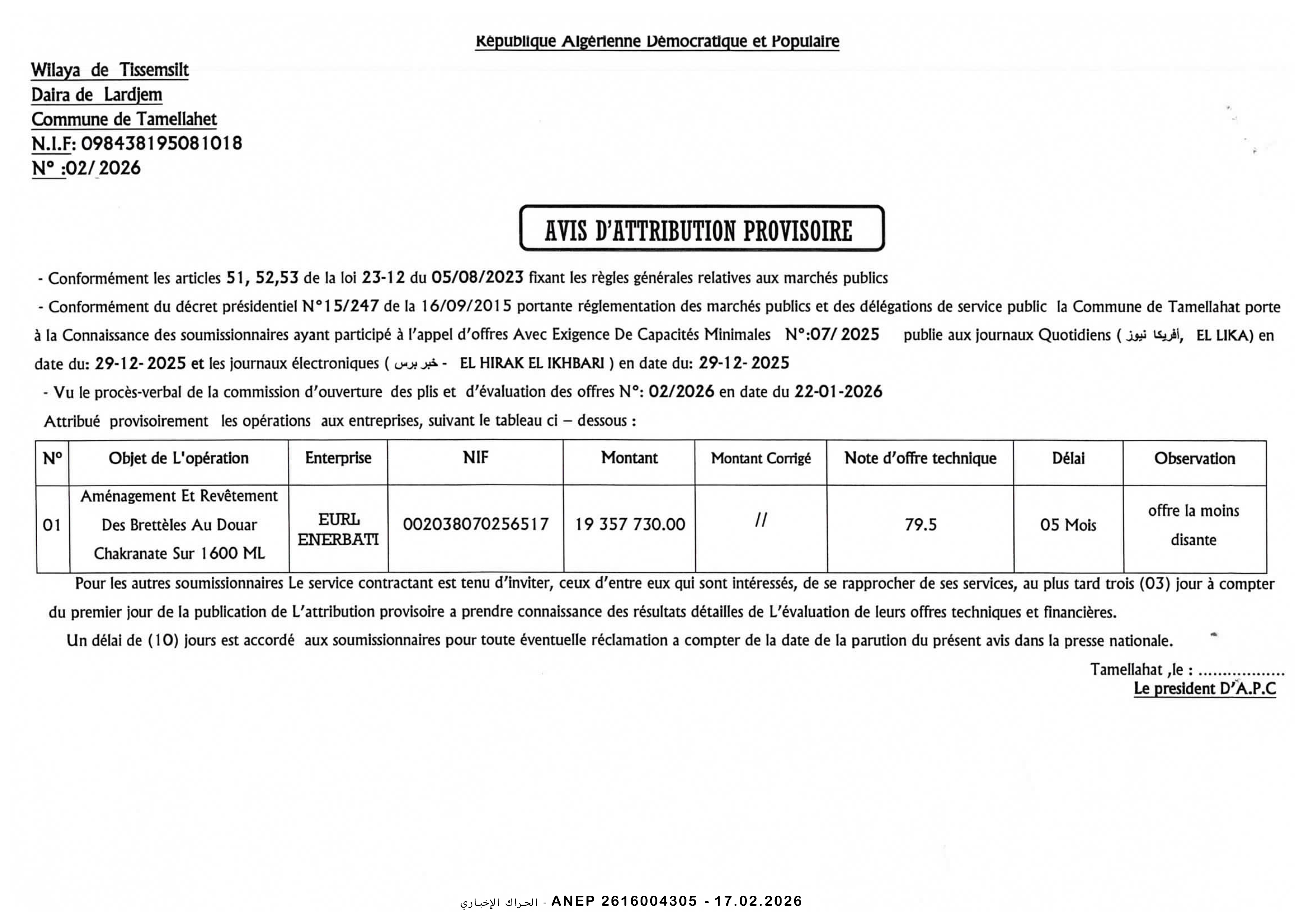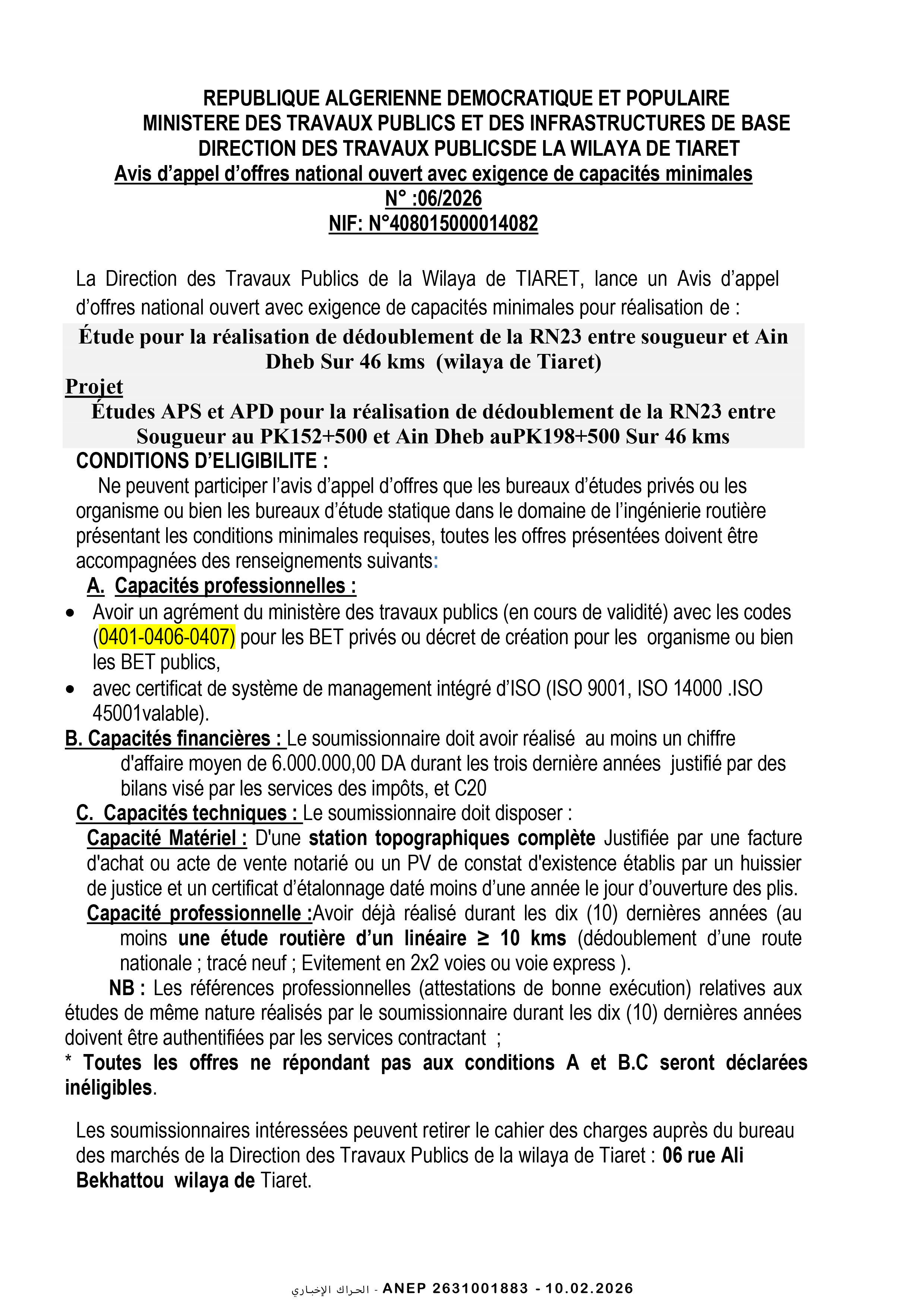 مديرية التجهيزات العمومية لولاية تيسمسيلت