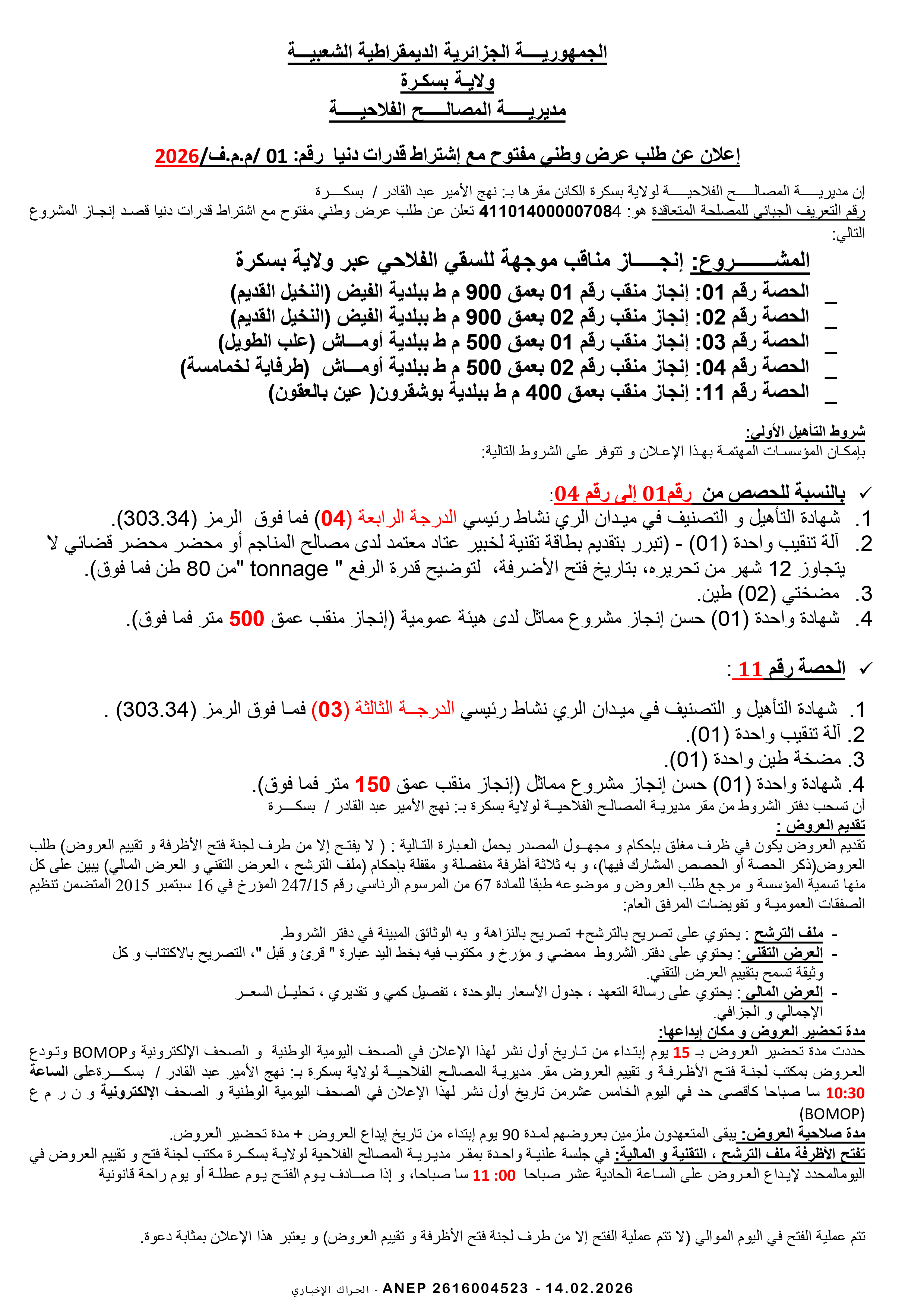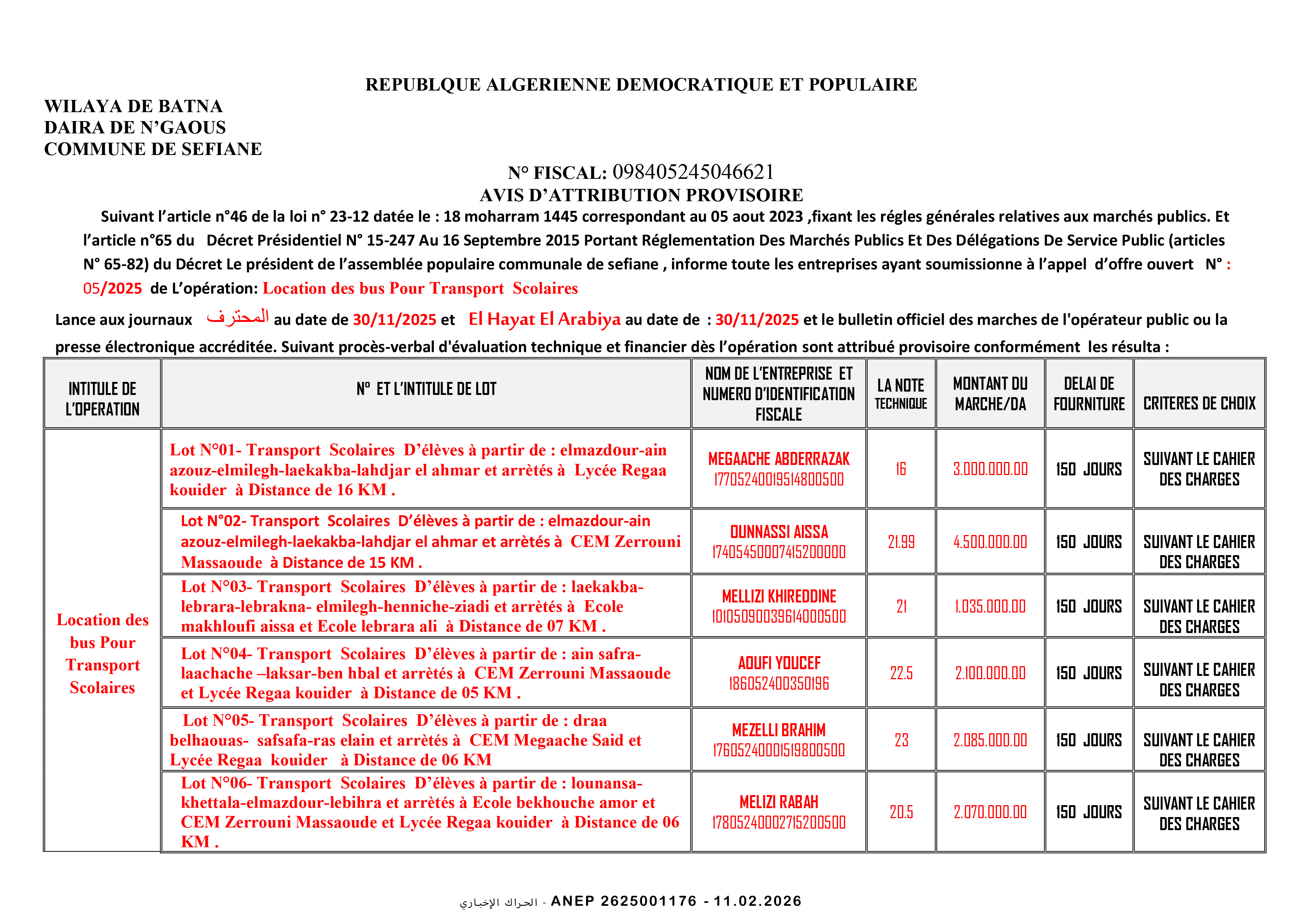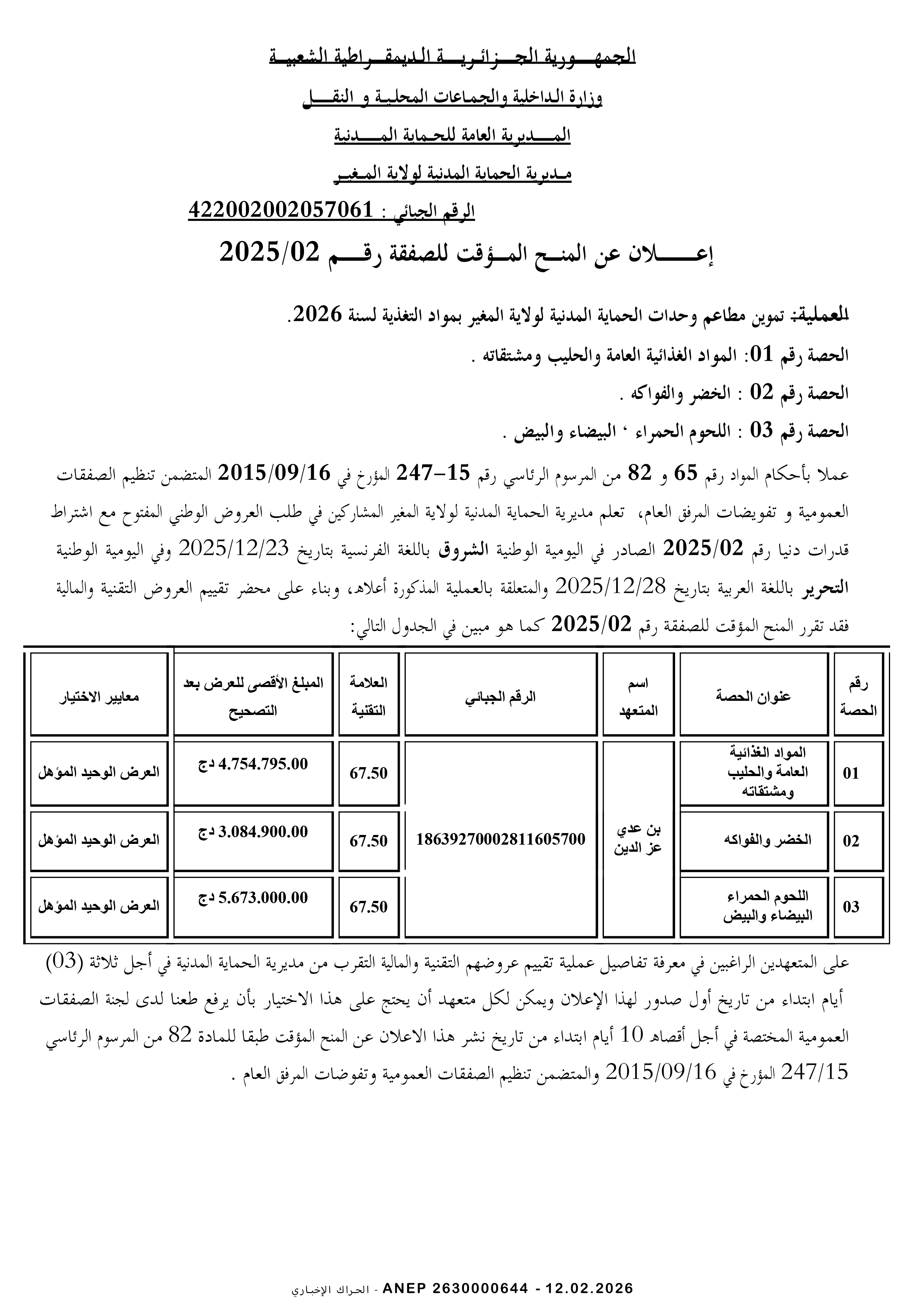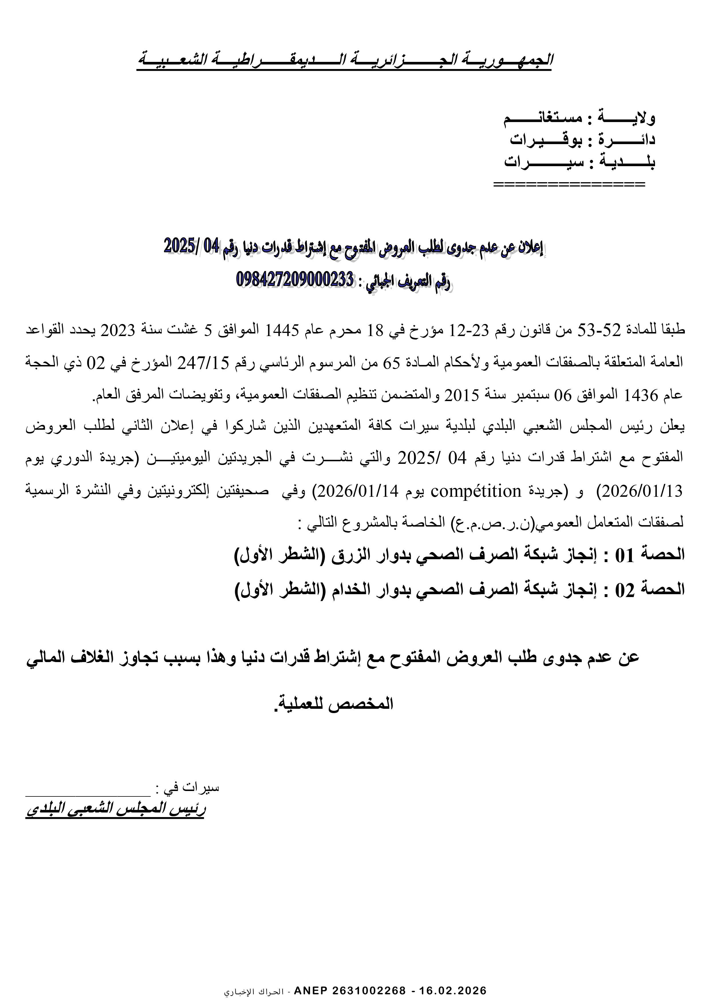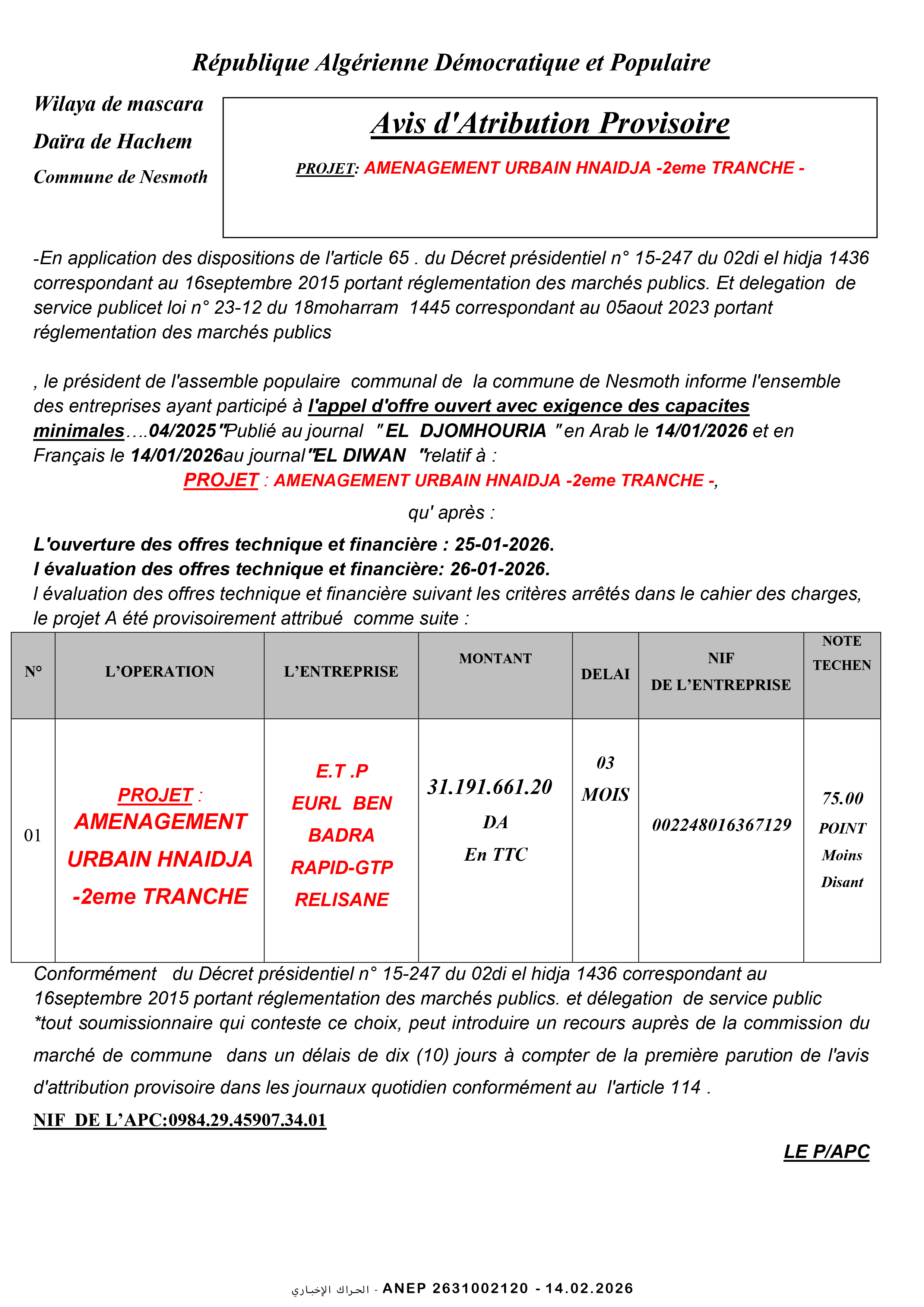 دراسة و متابعة لانجاز ابتدائية صنف 02 بلدية عين الصفراء ولاية النعامة