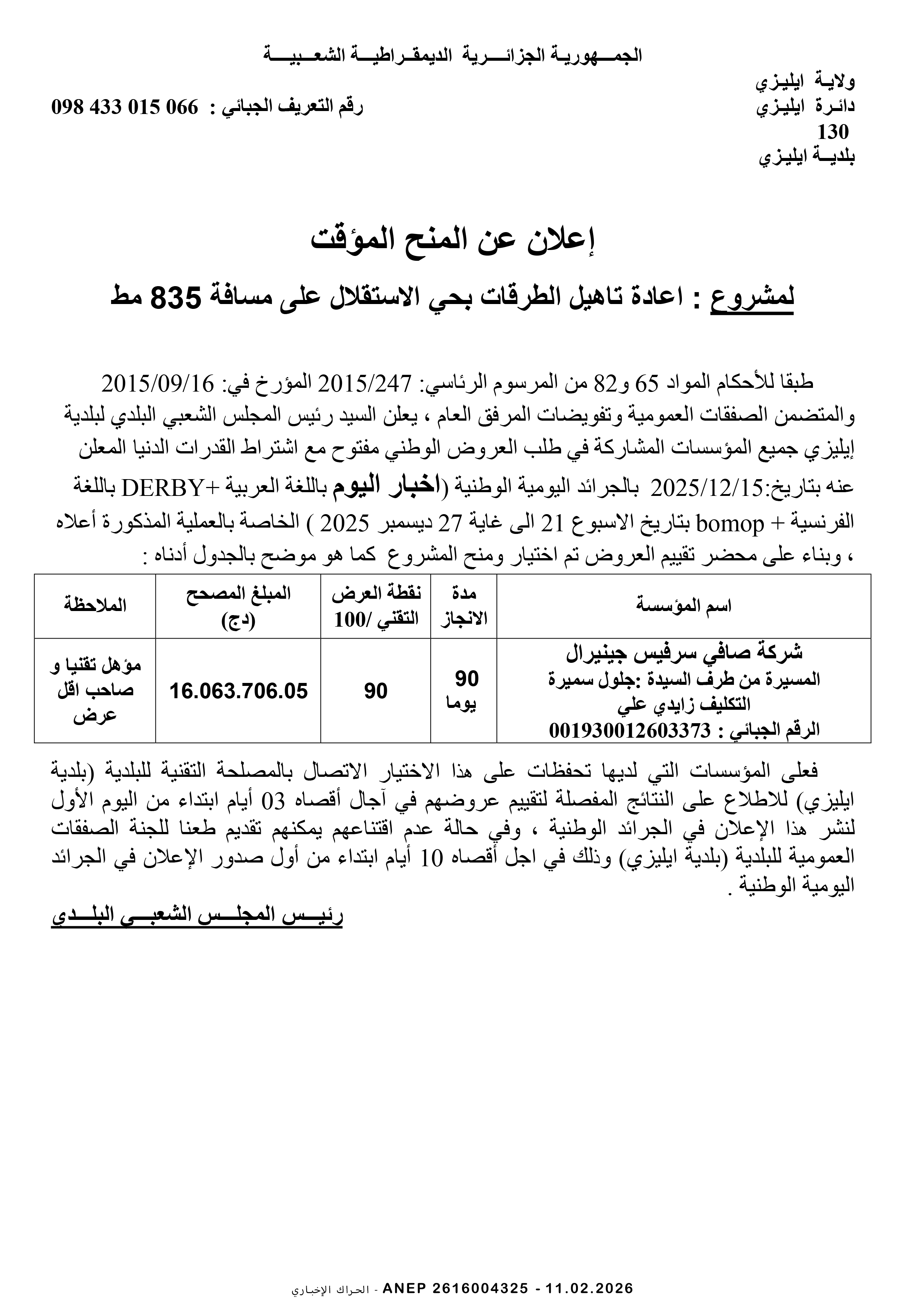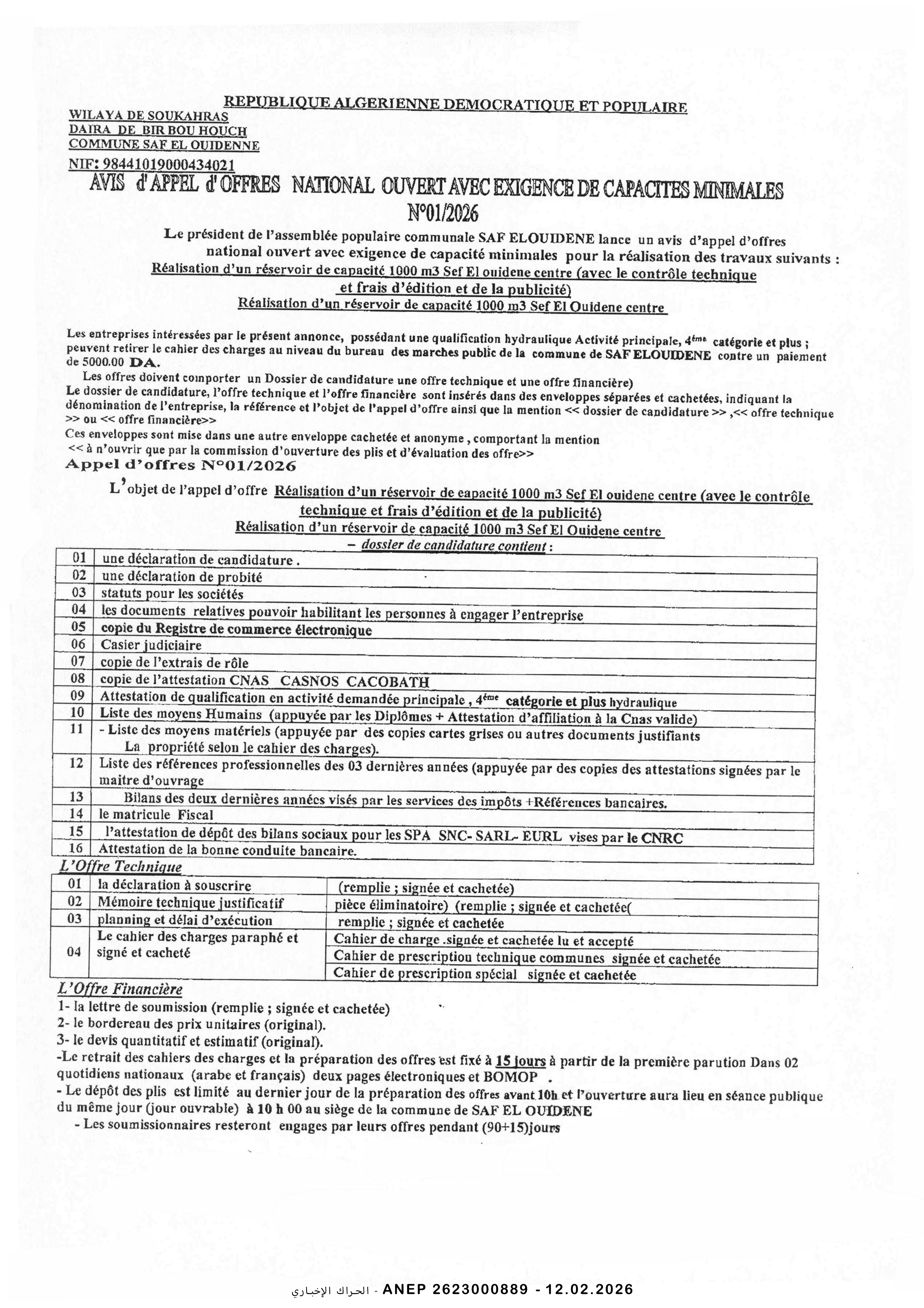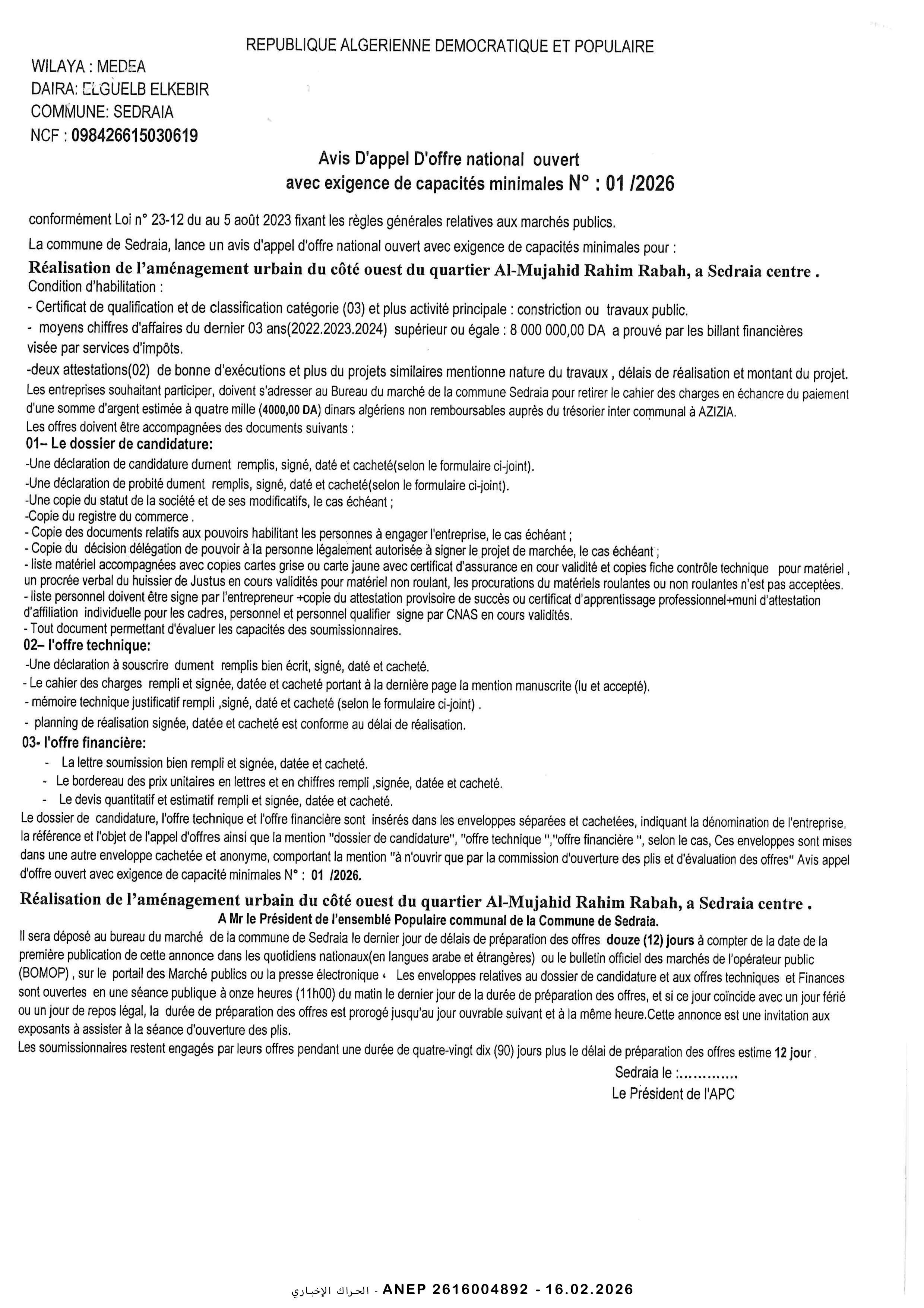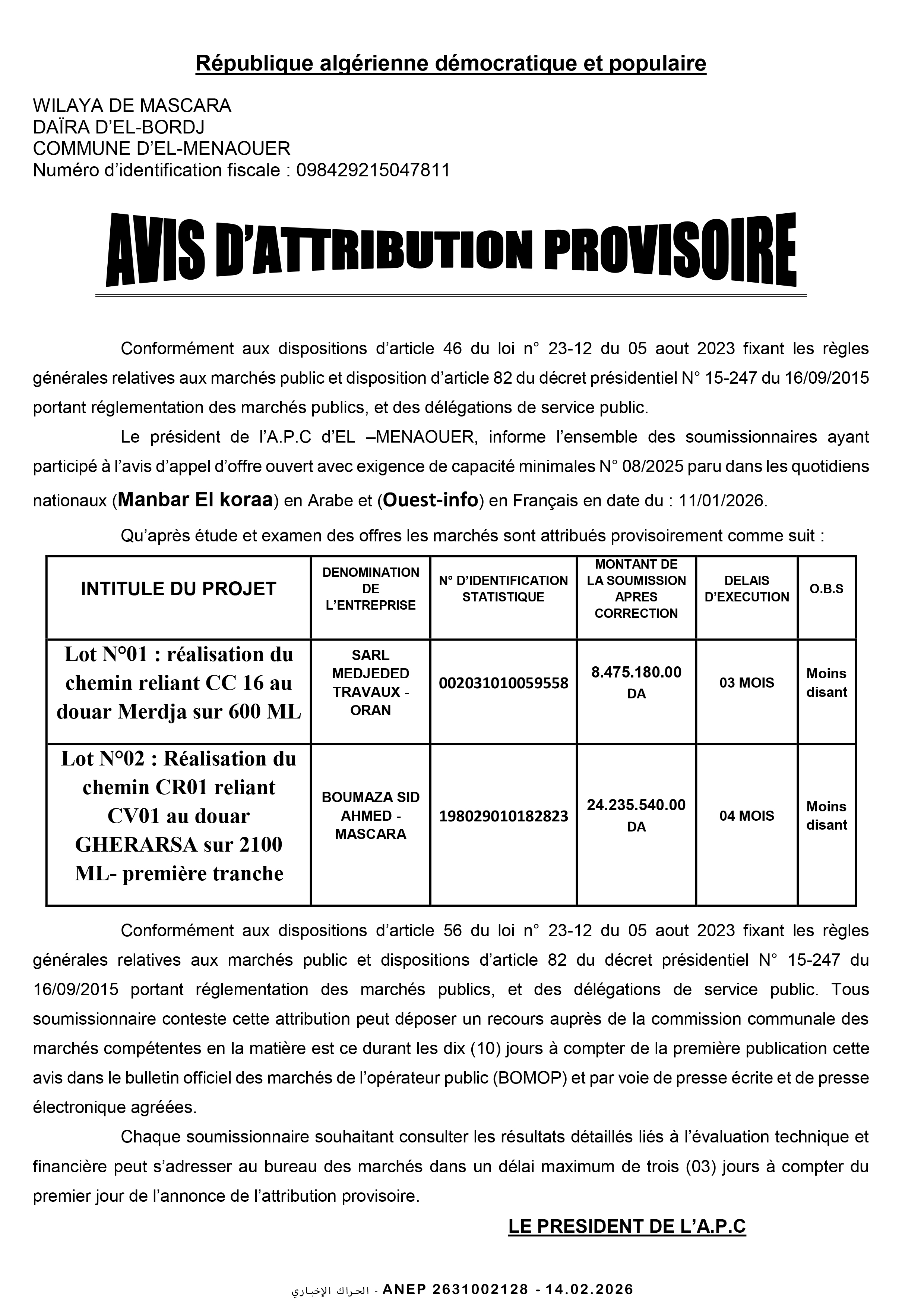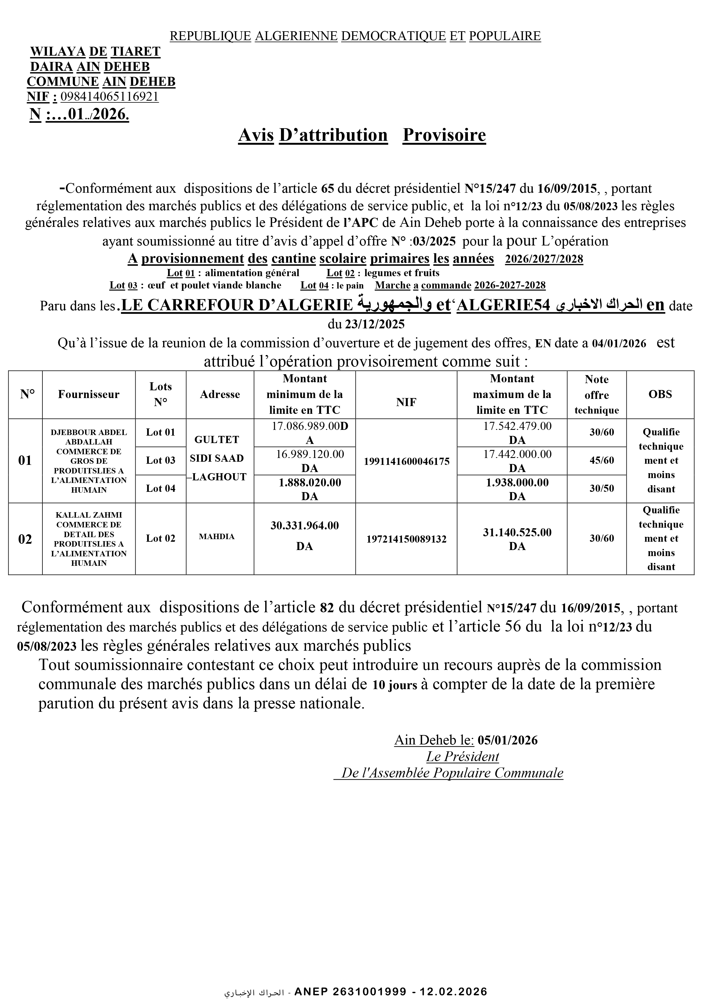 دراسة و متابعة لانجاز ابتدائية صنف 02 بلدية عين الصفراء ولاية النعامة