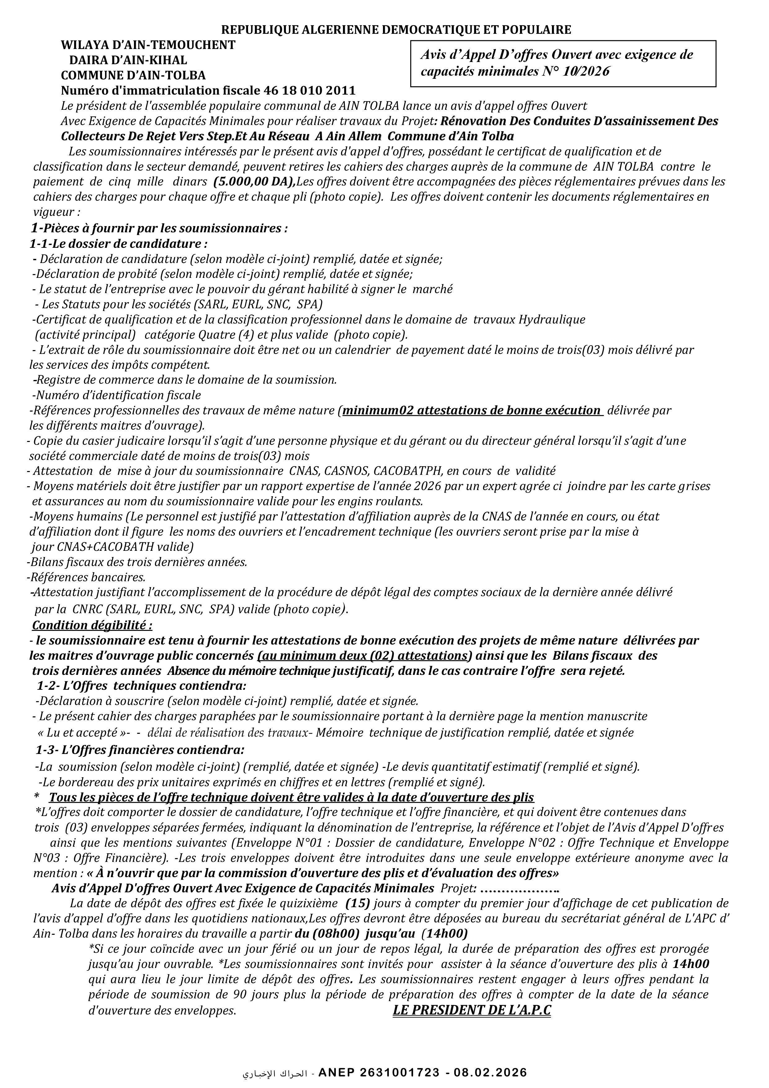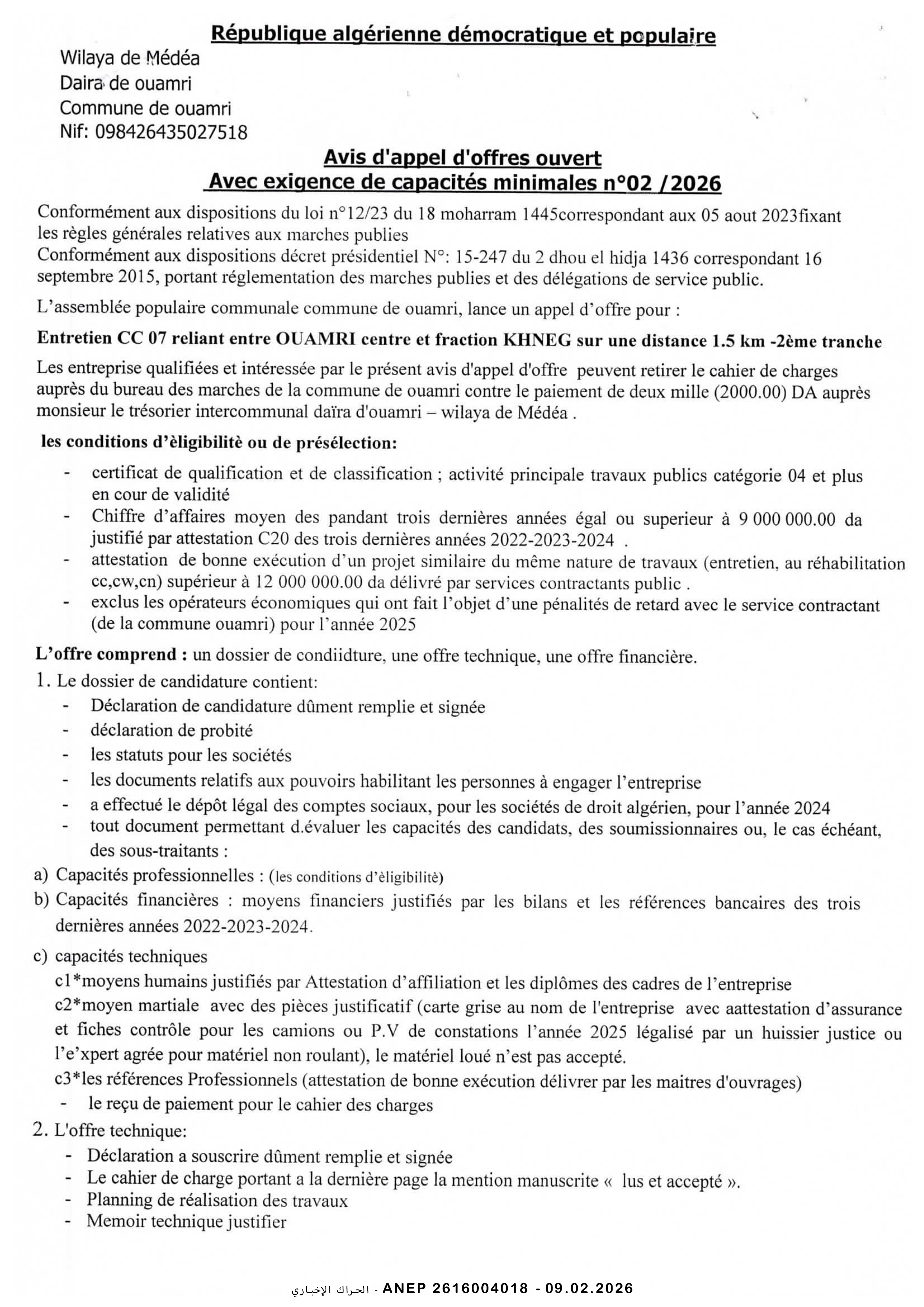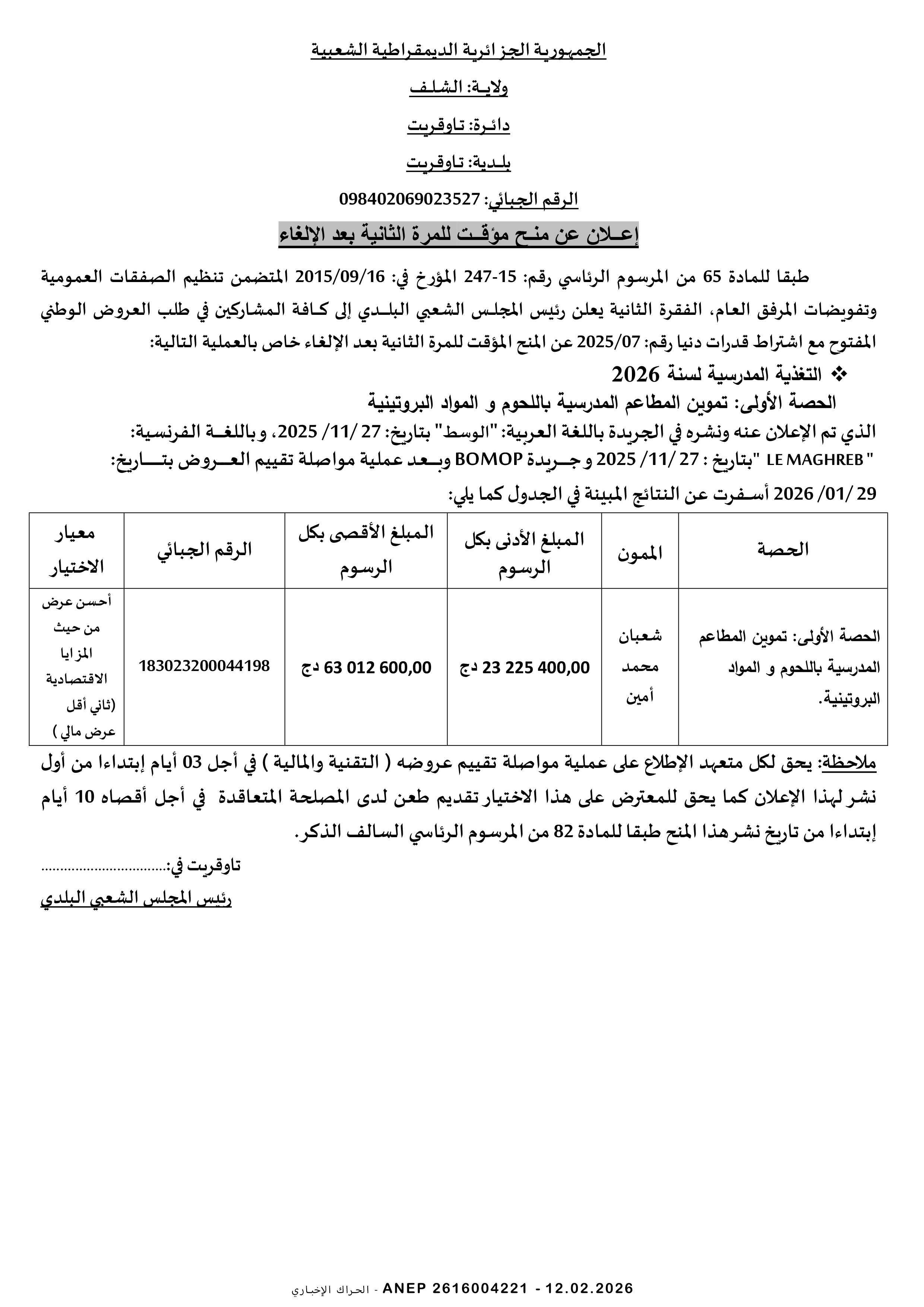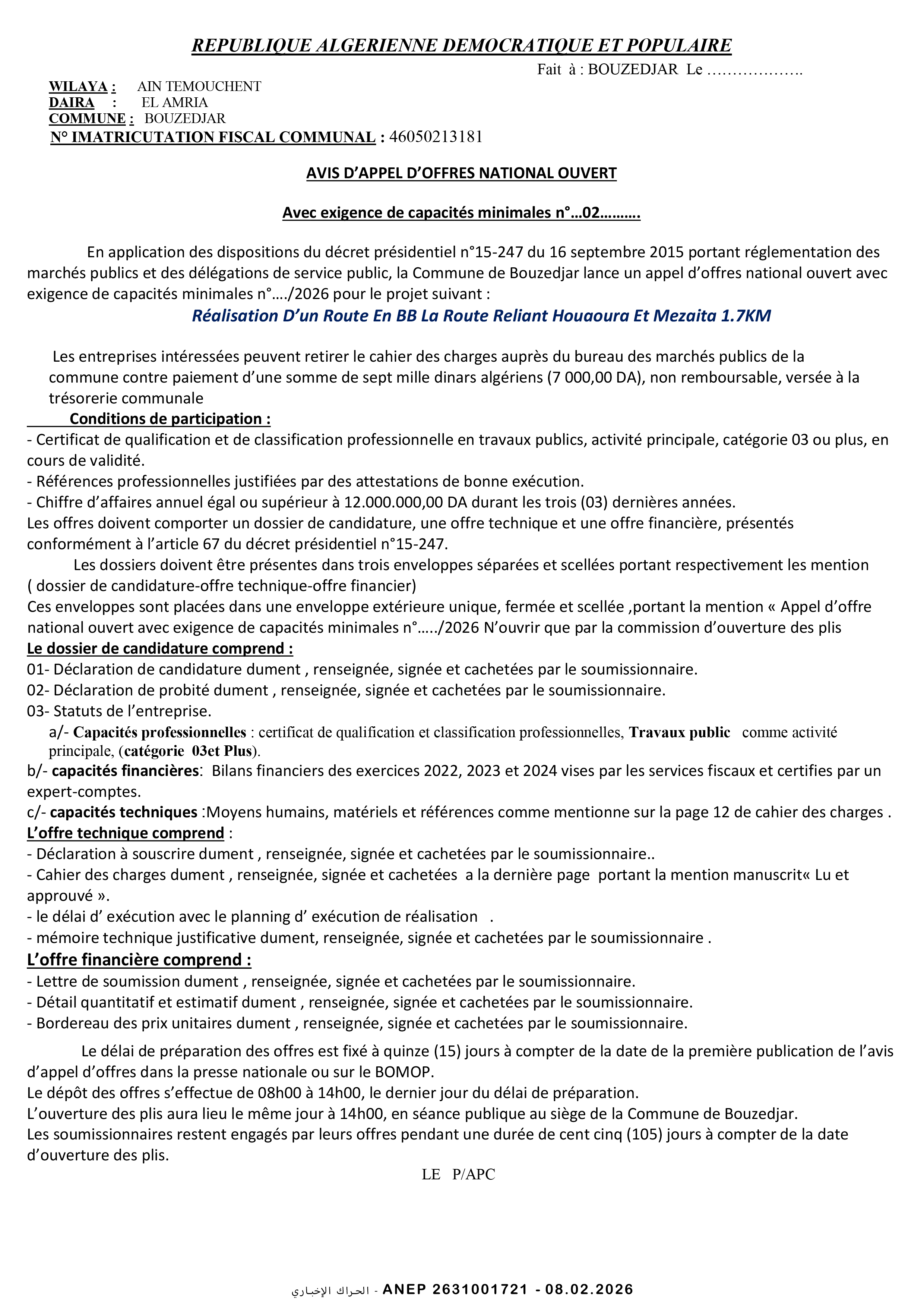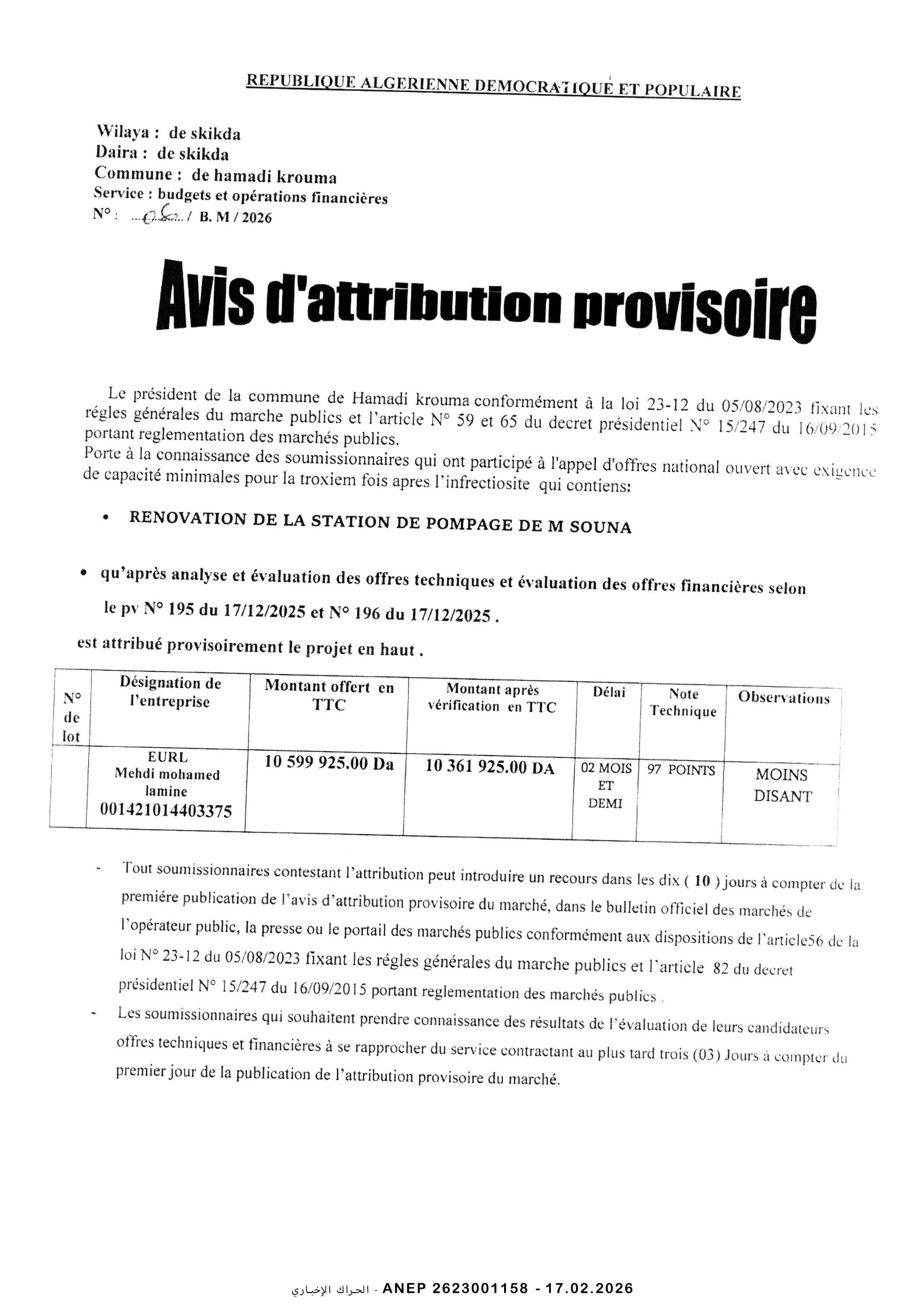 دراسة و متابعة لانجاز ابتدائية صنف 02 بلدية عين الصفراء ولاية النعامة