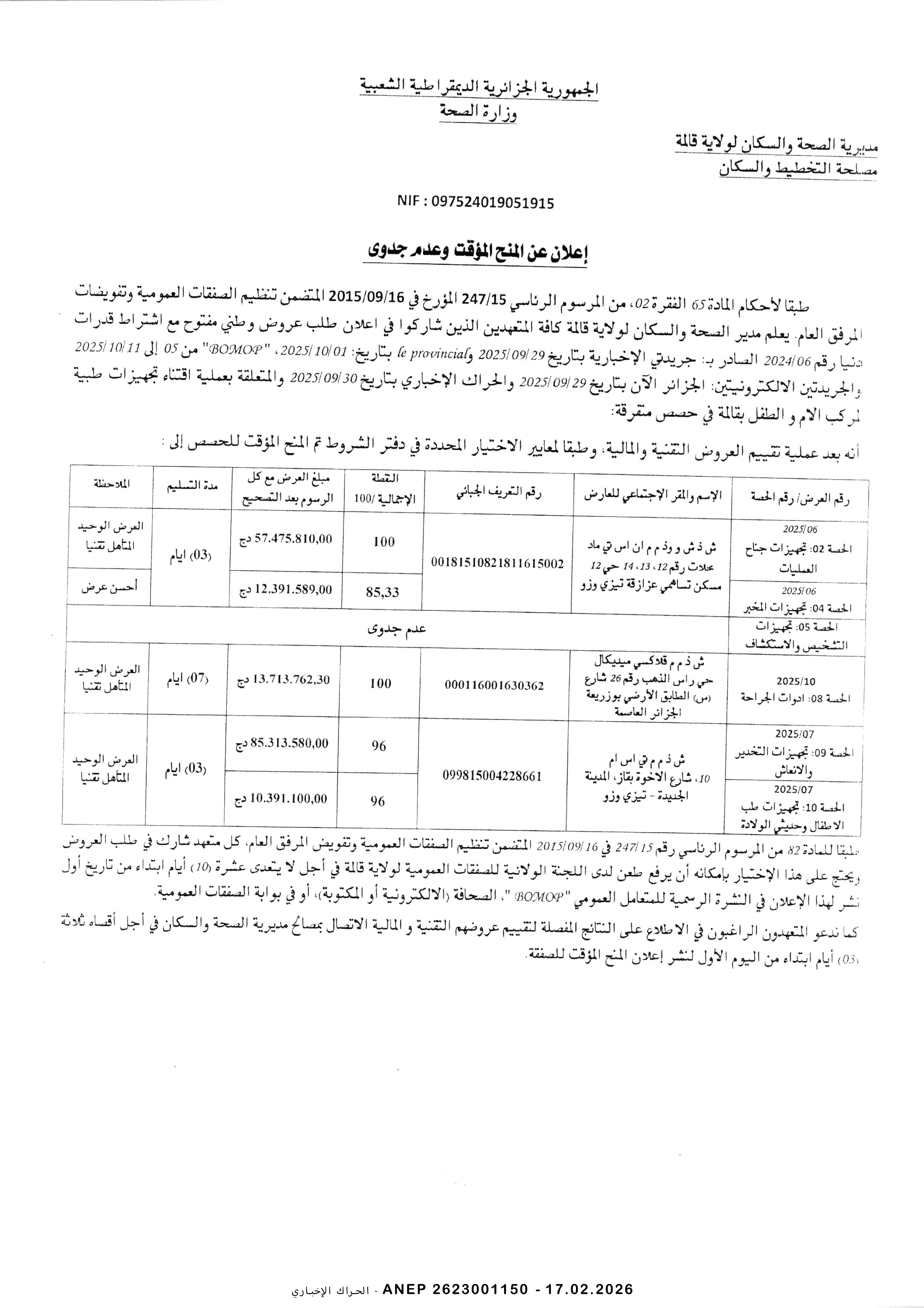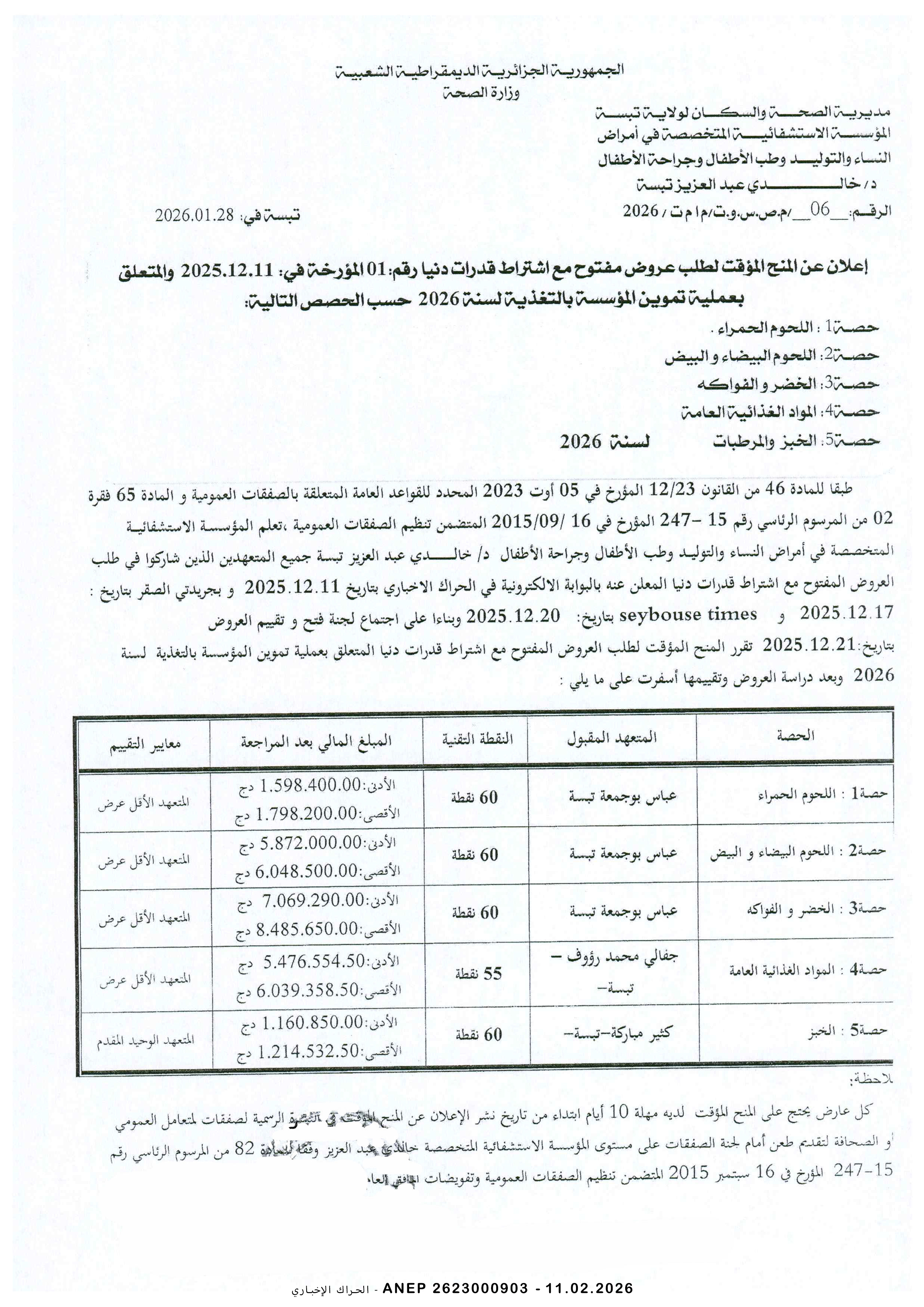 المؤسسة العمومية الاستشفائية بئر العاتر ولاية تبسة