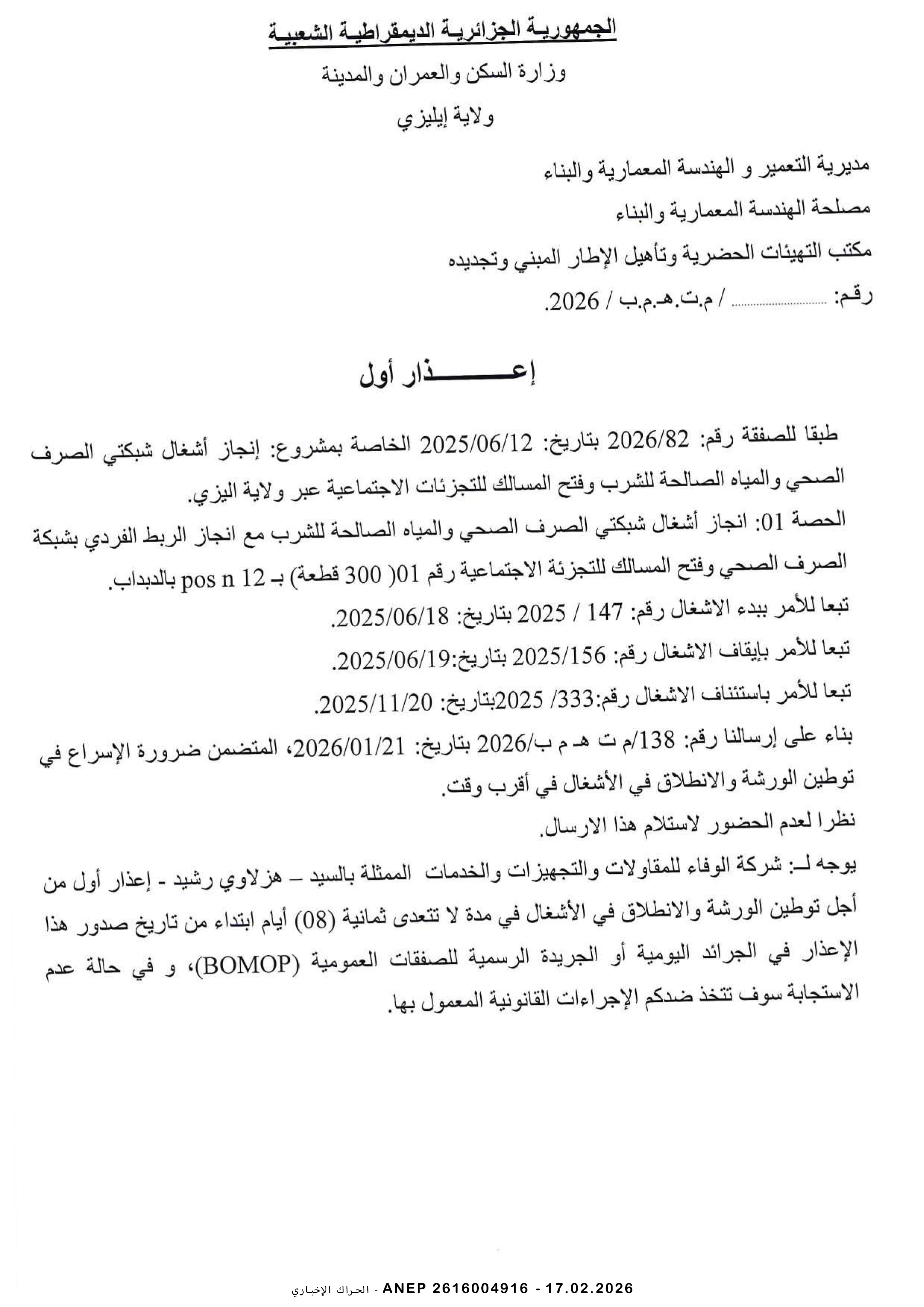 مديرية التعمير و الهندسة المعمارية و البناء لولاية إيليزي