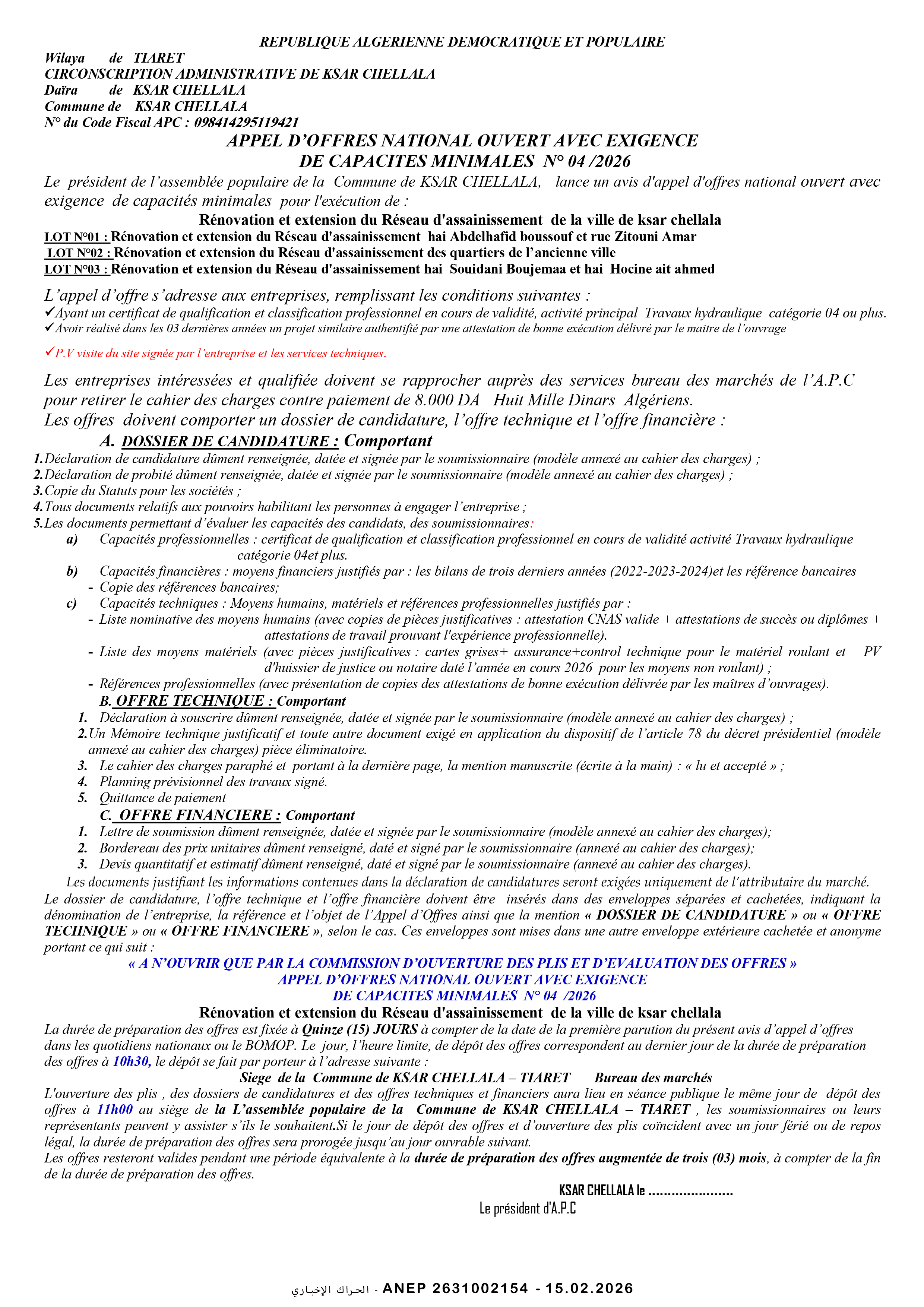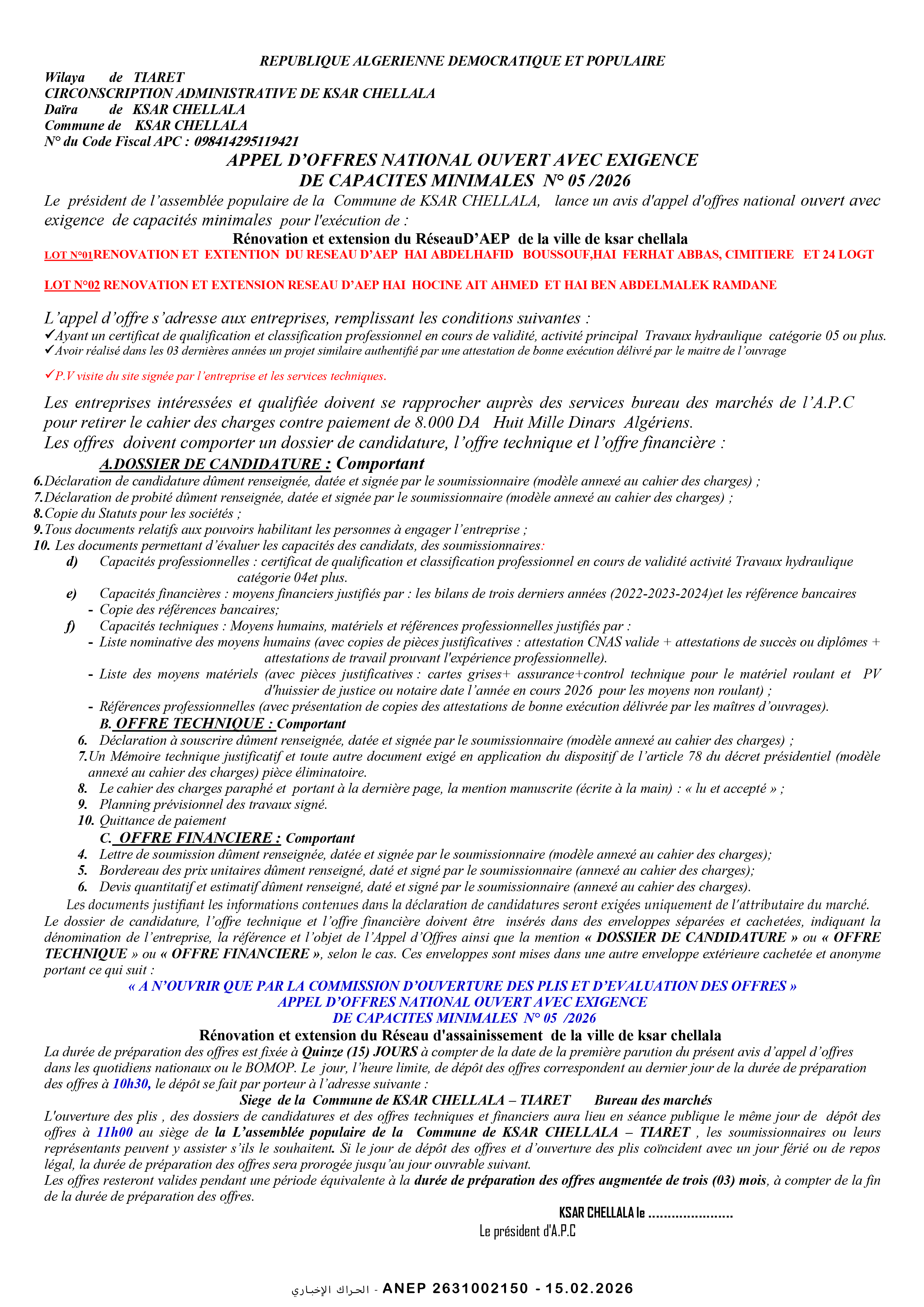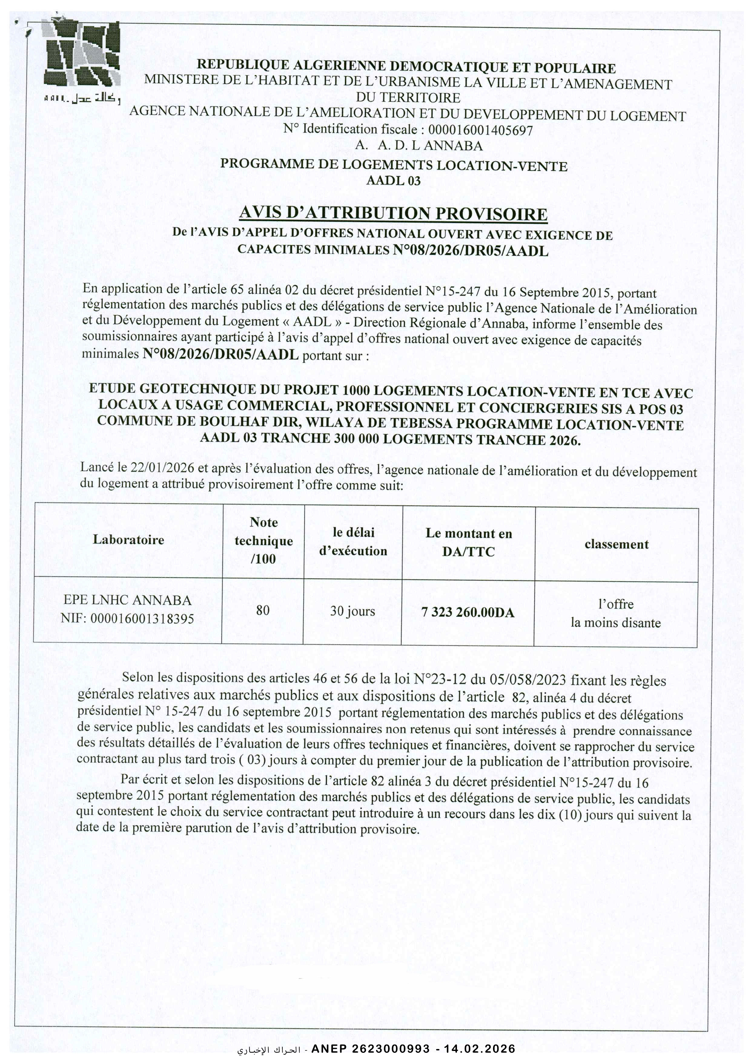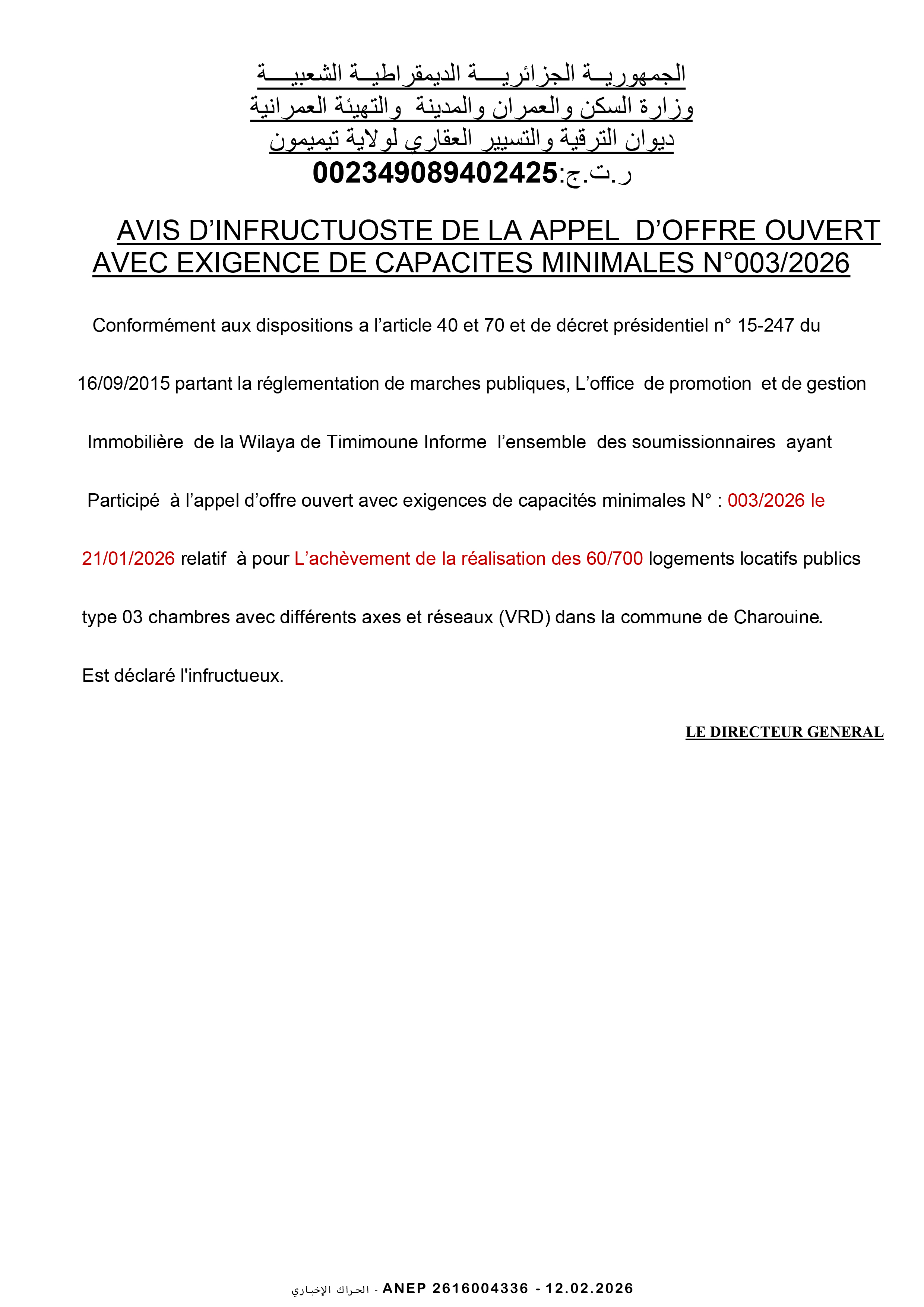 إنجاز 60 مسكن بصيغة بيع بالايجار مع محلات و أشغال الشبكات بلدية جانت ولاية جانت