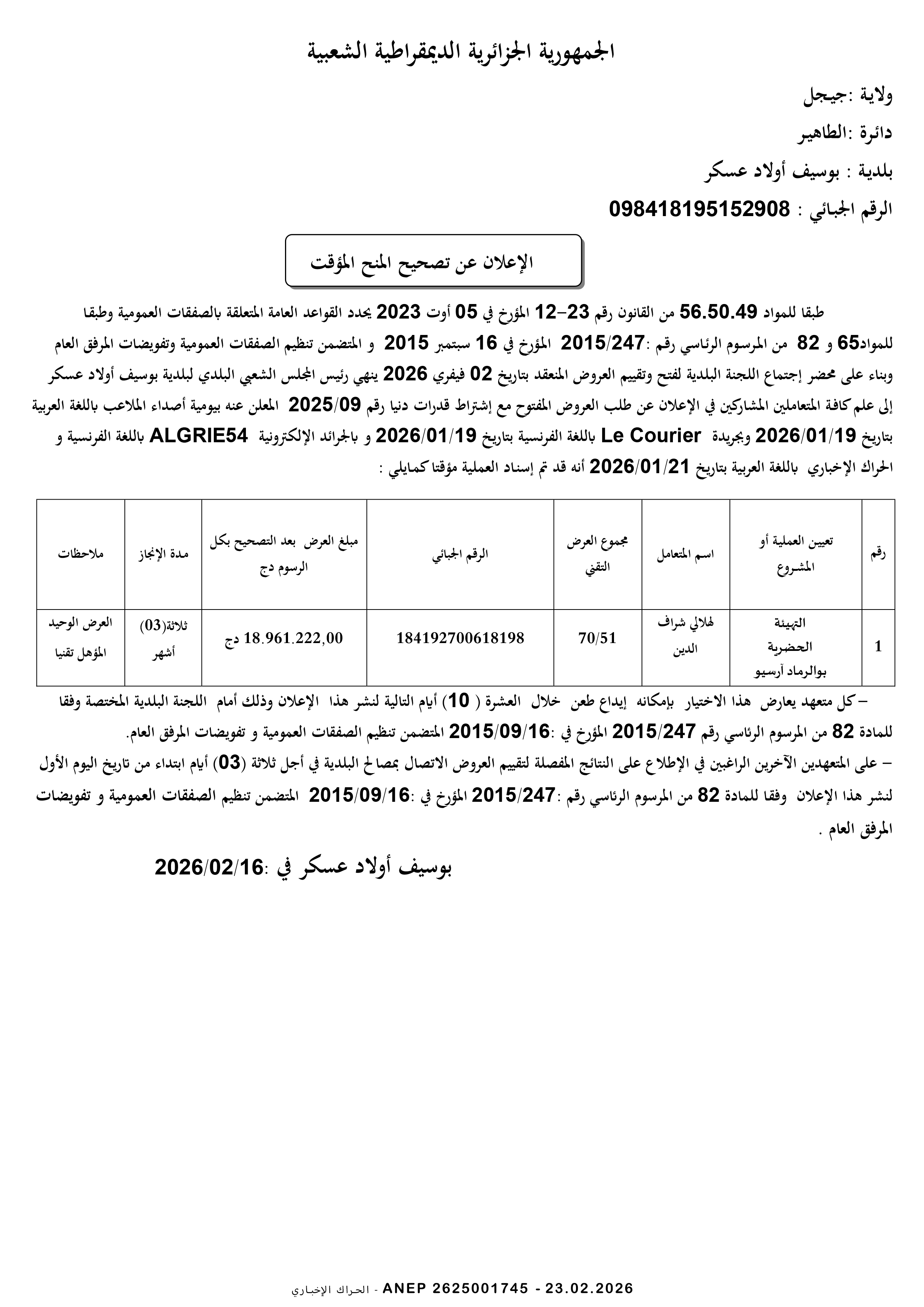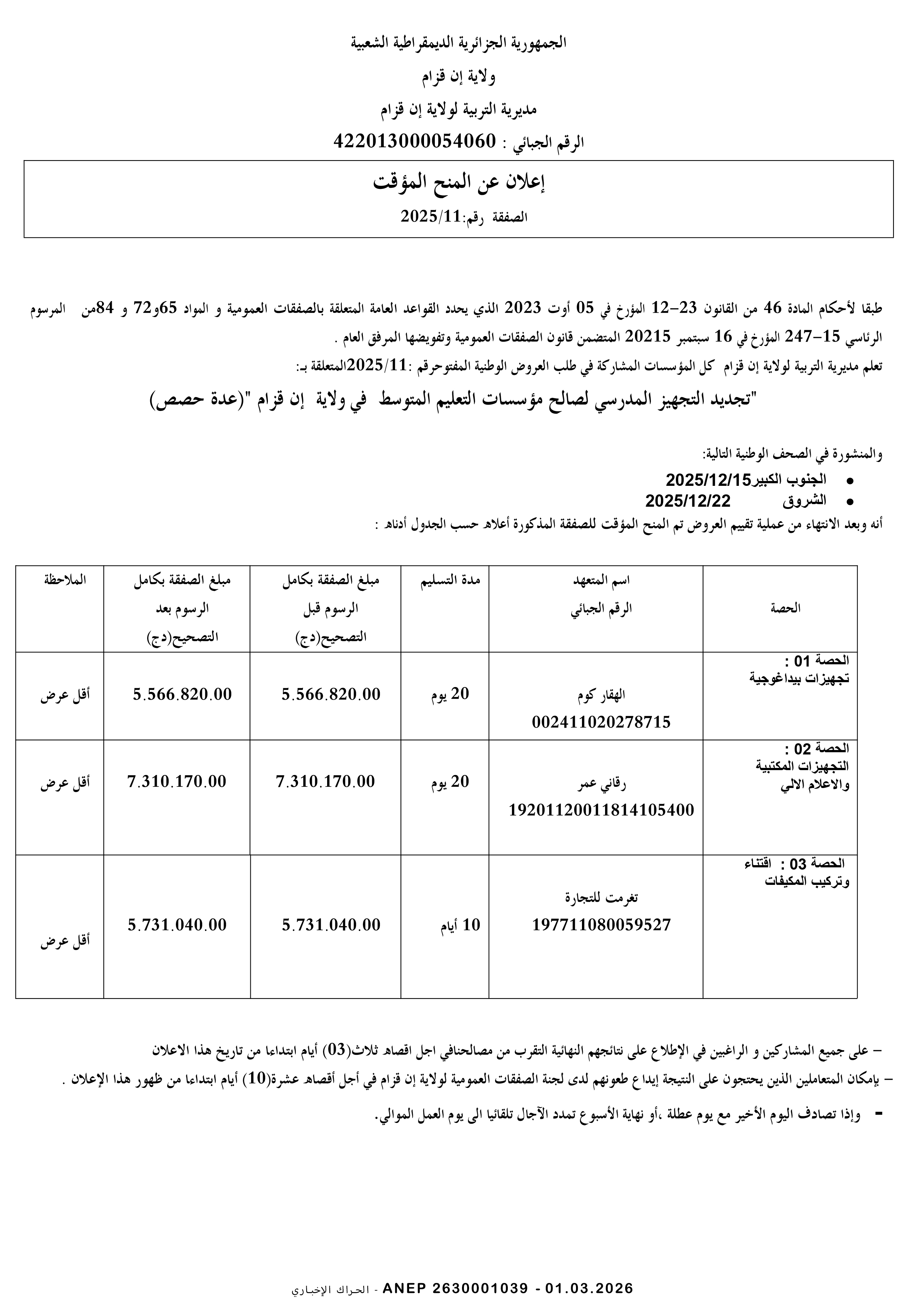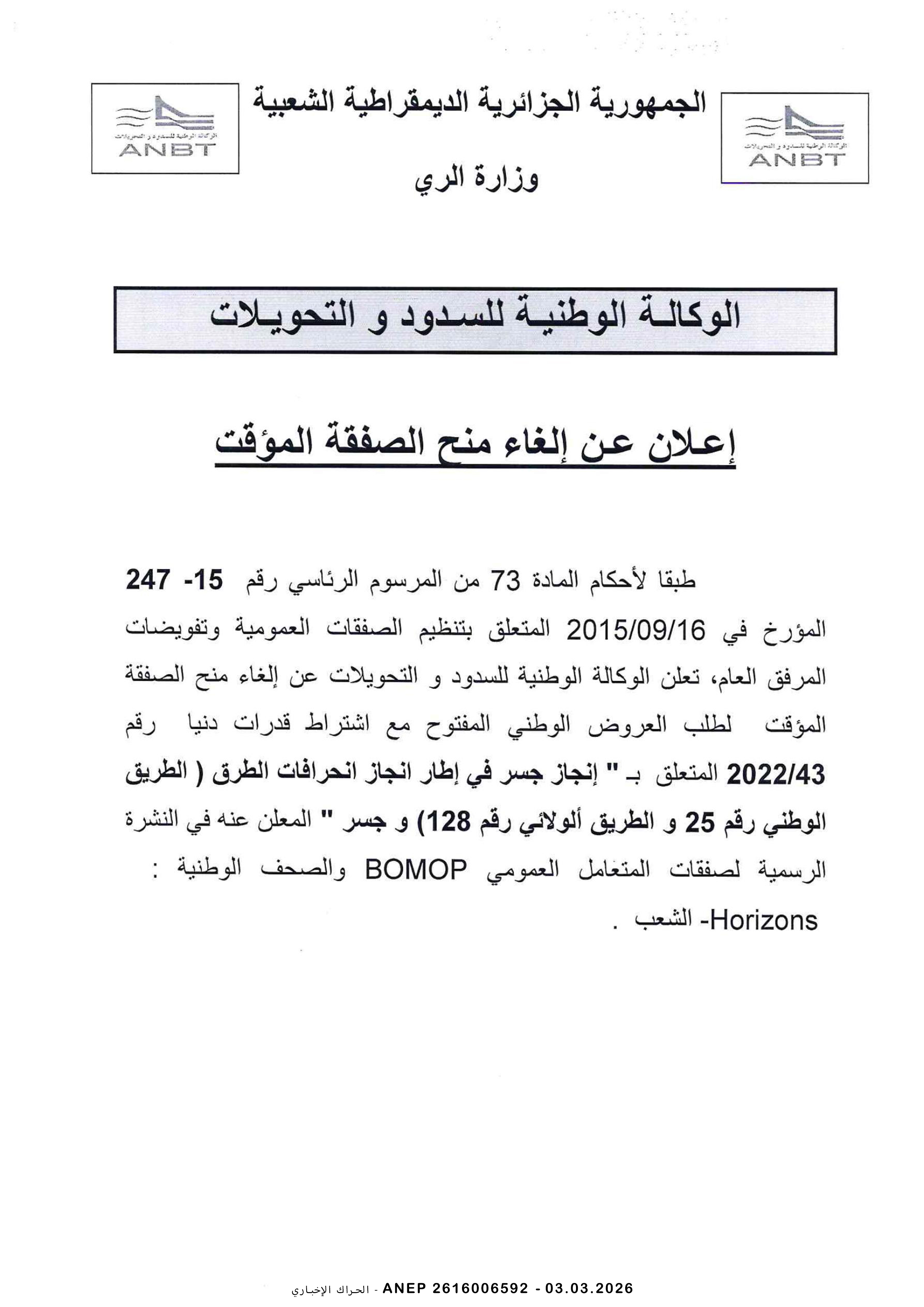 إعلانات الصفقات العمومية