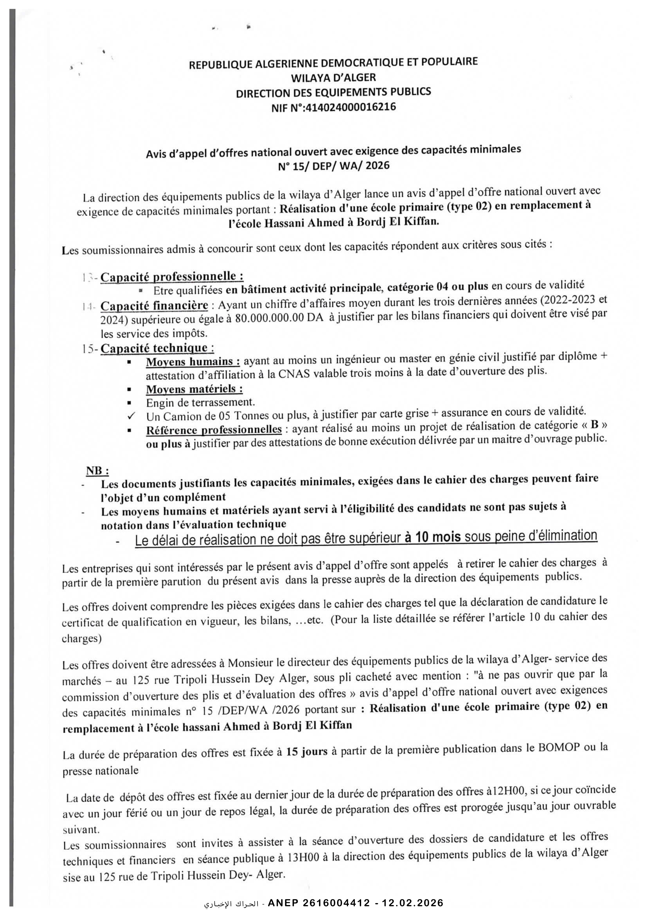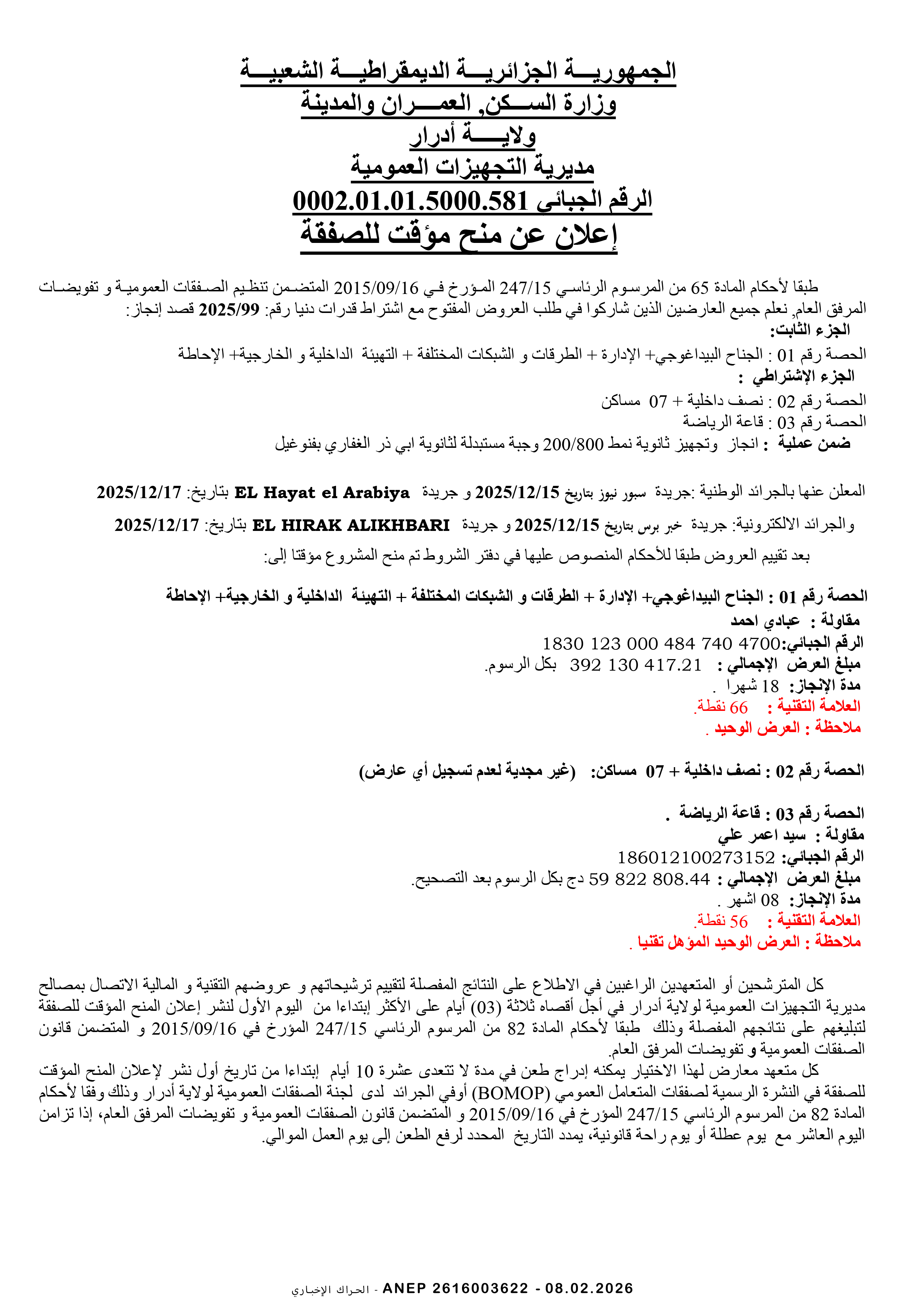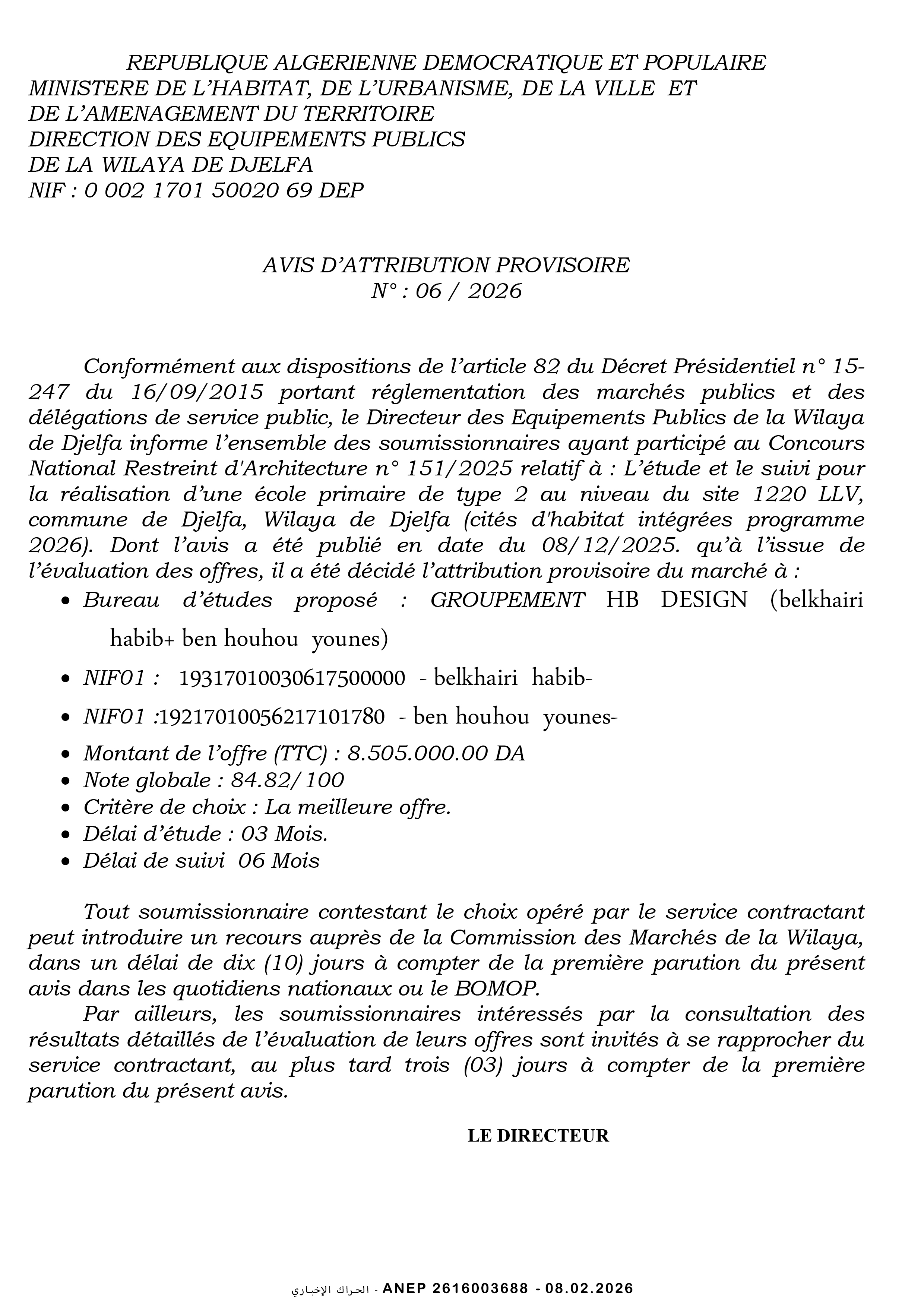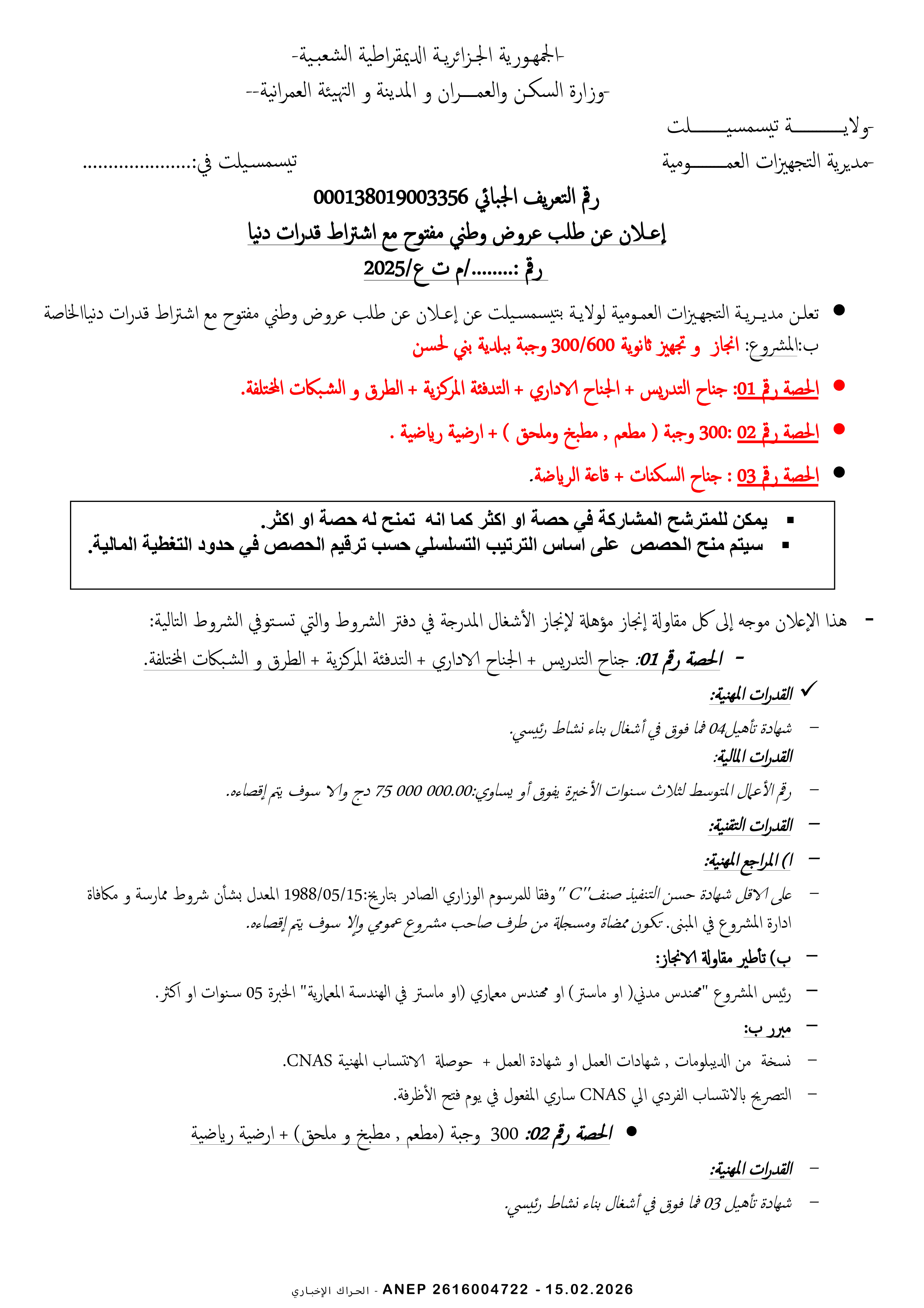 دراسة و متابعة لانجاز ابتدائية صنف 02 بلدية الجلفة