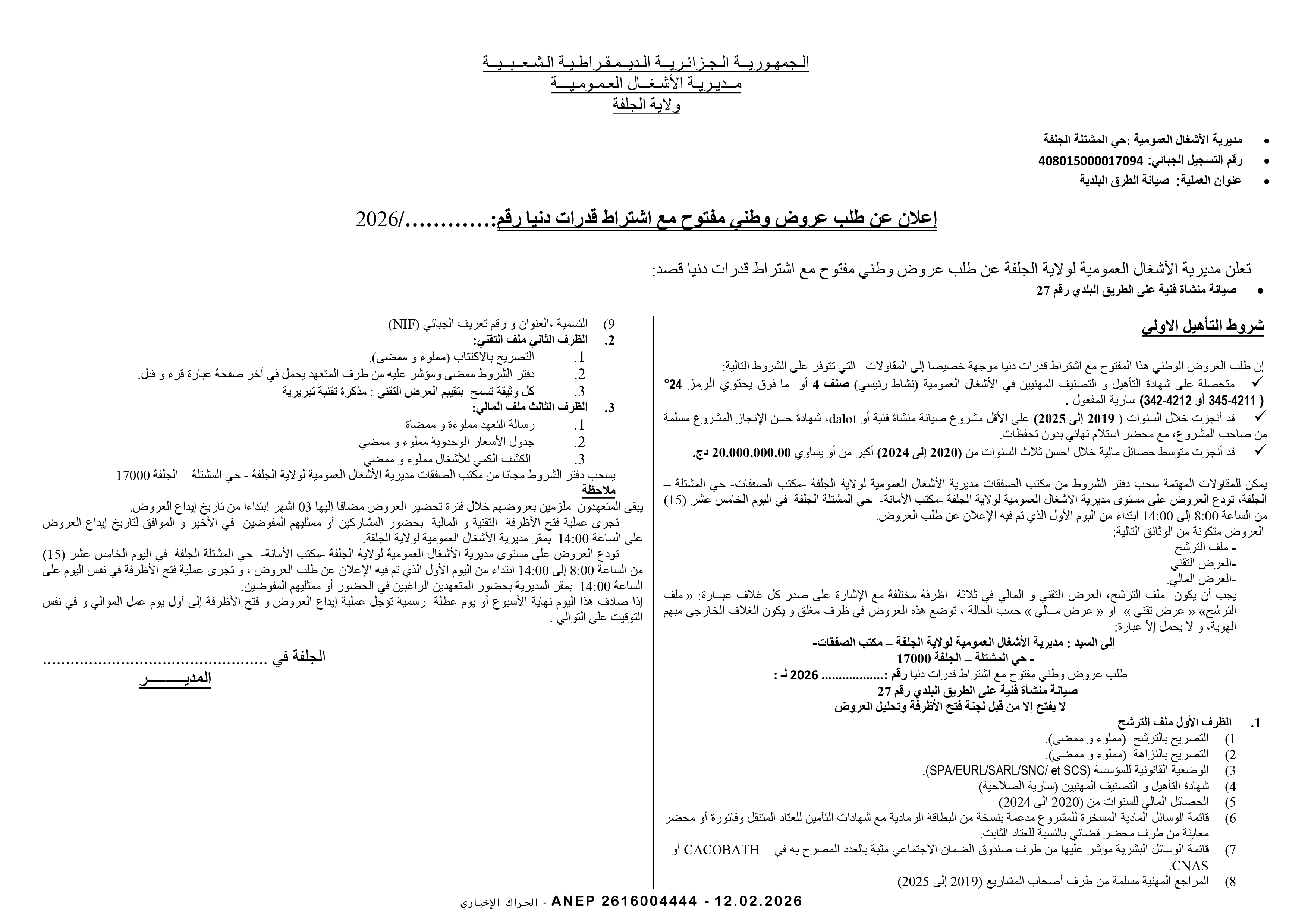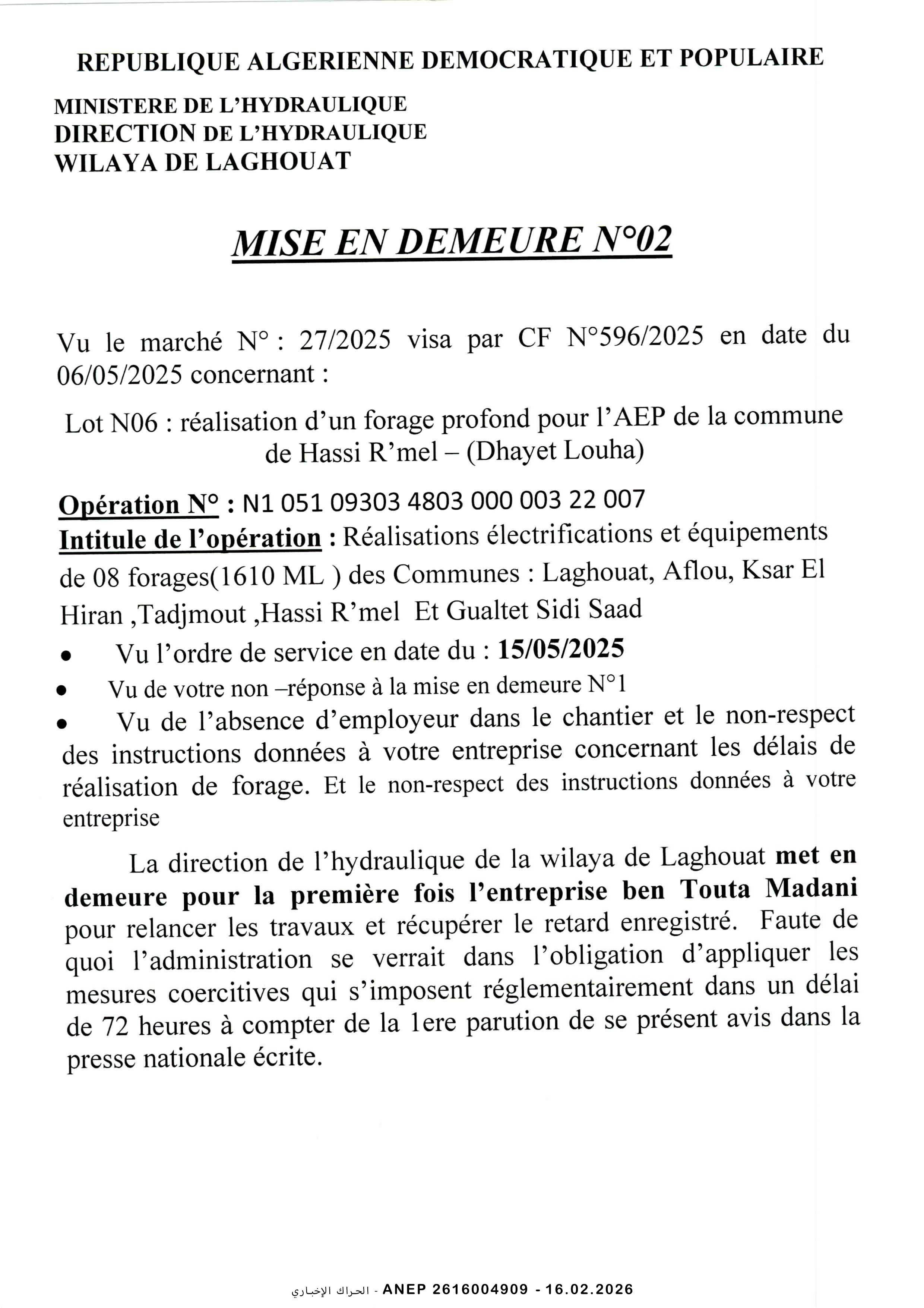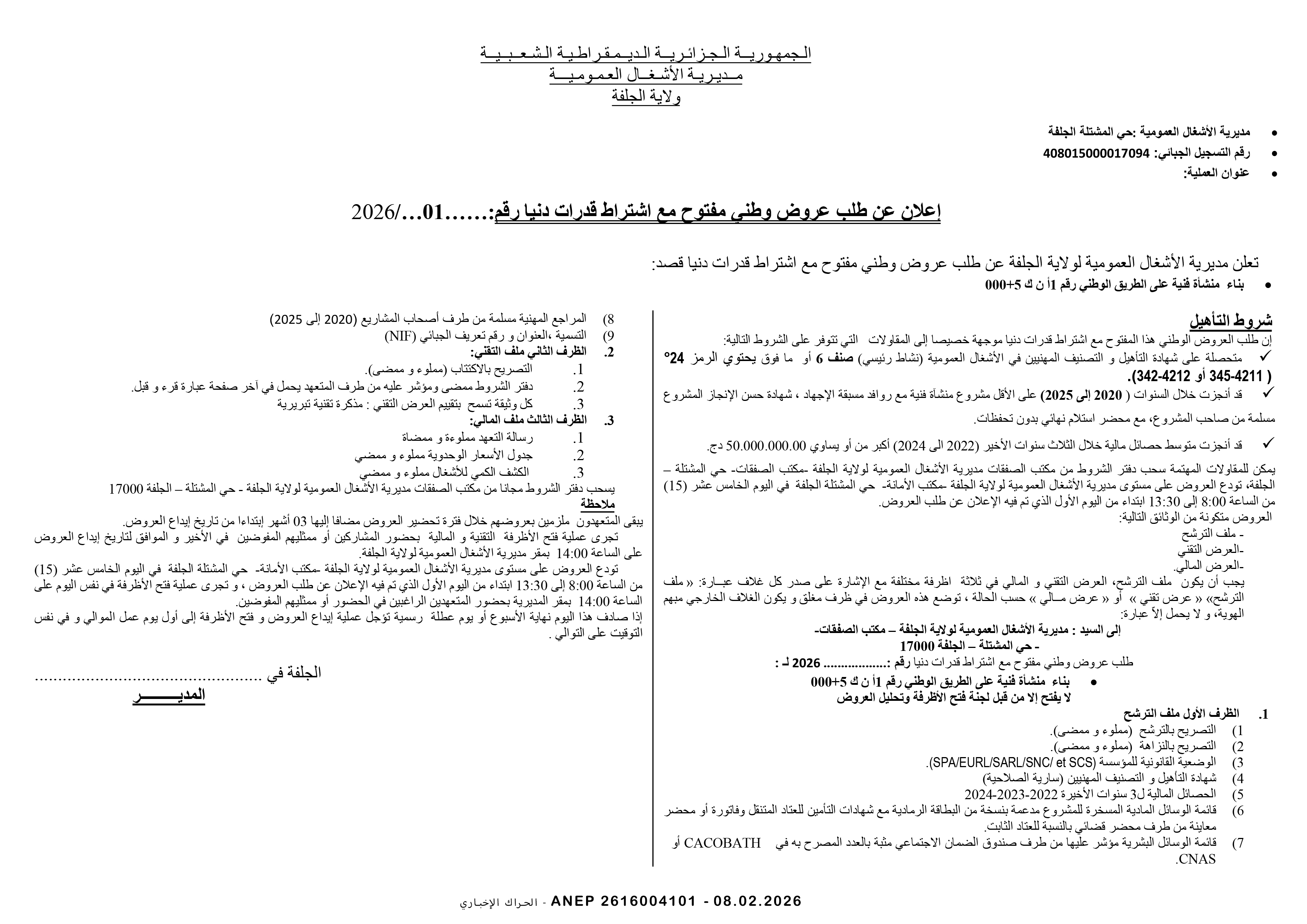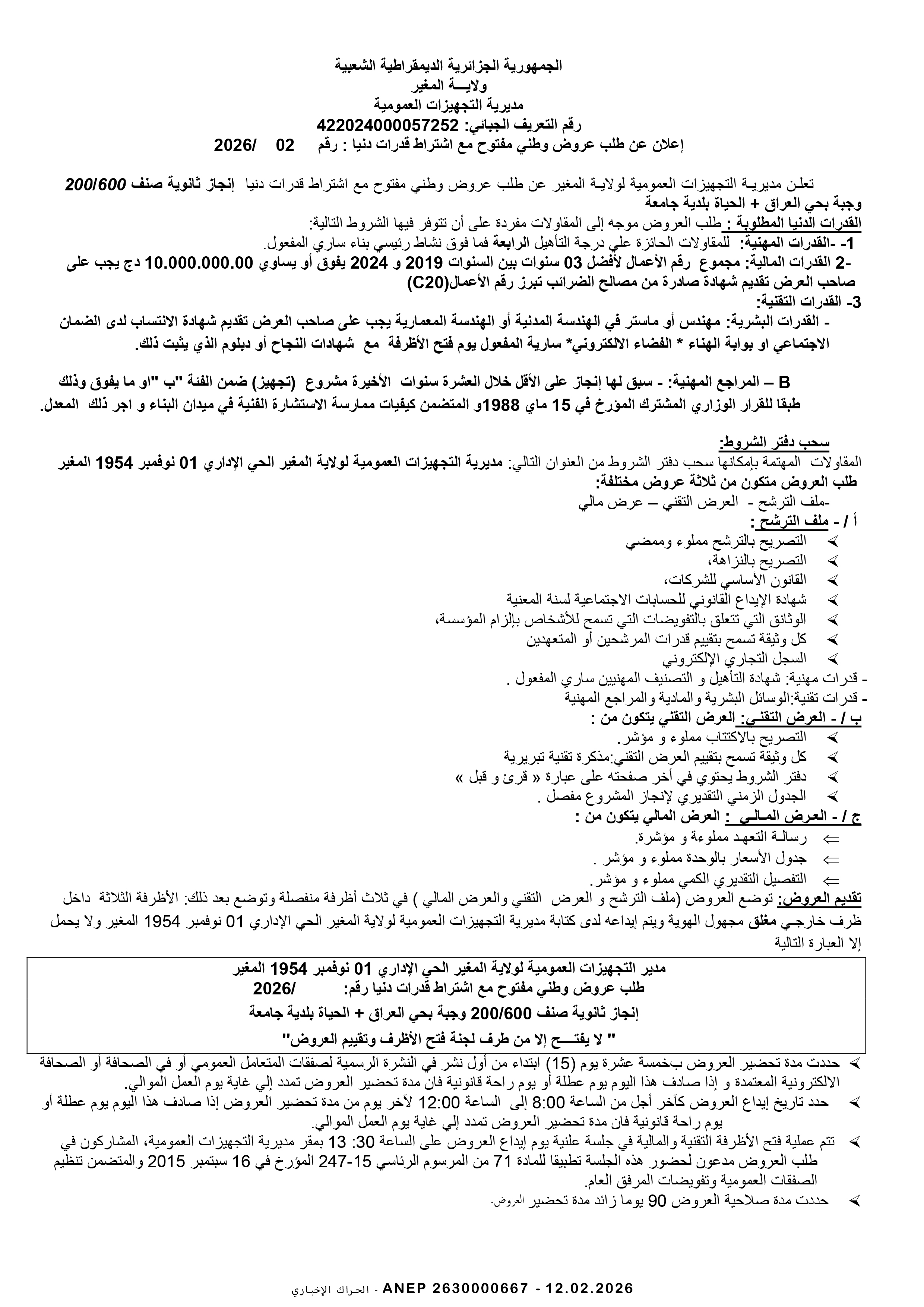 دراسة و متابعة لانجاز ابتدائية صنف 02 بلدية الجلفة