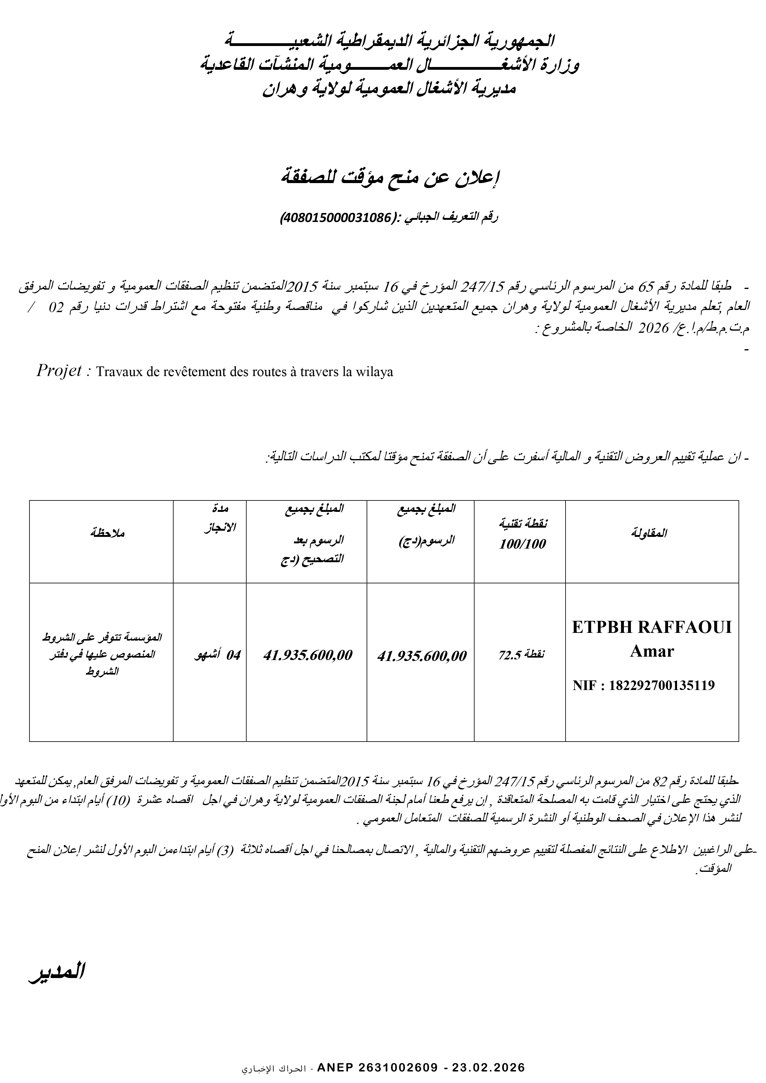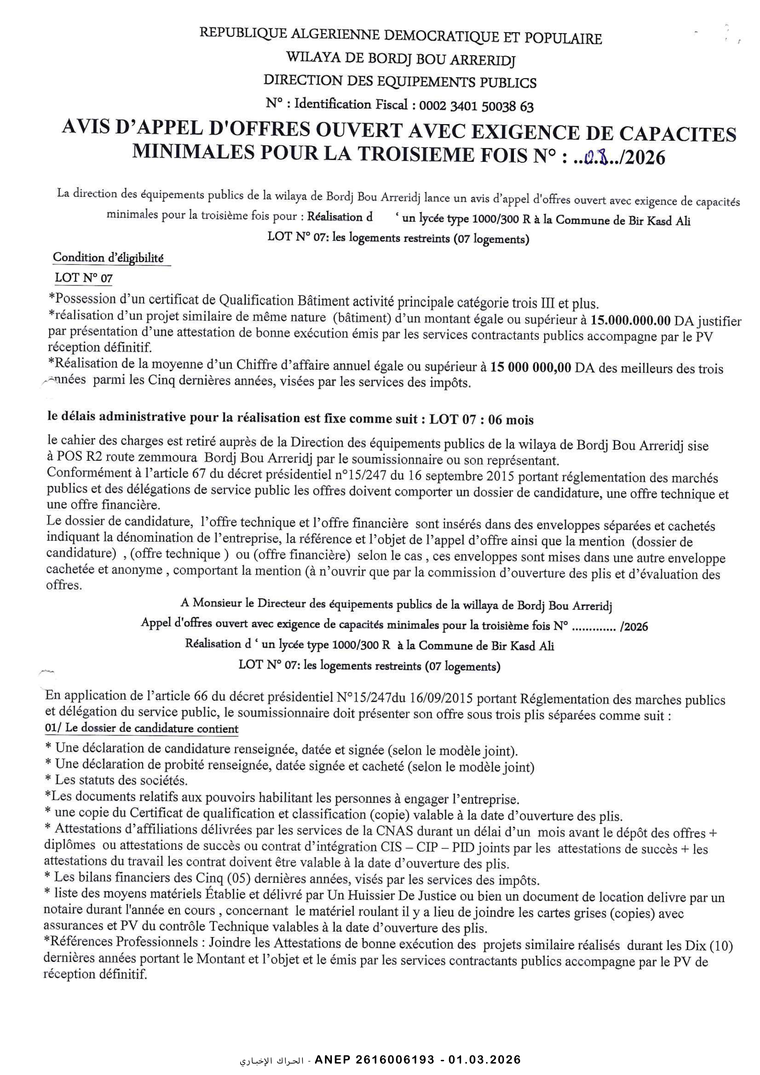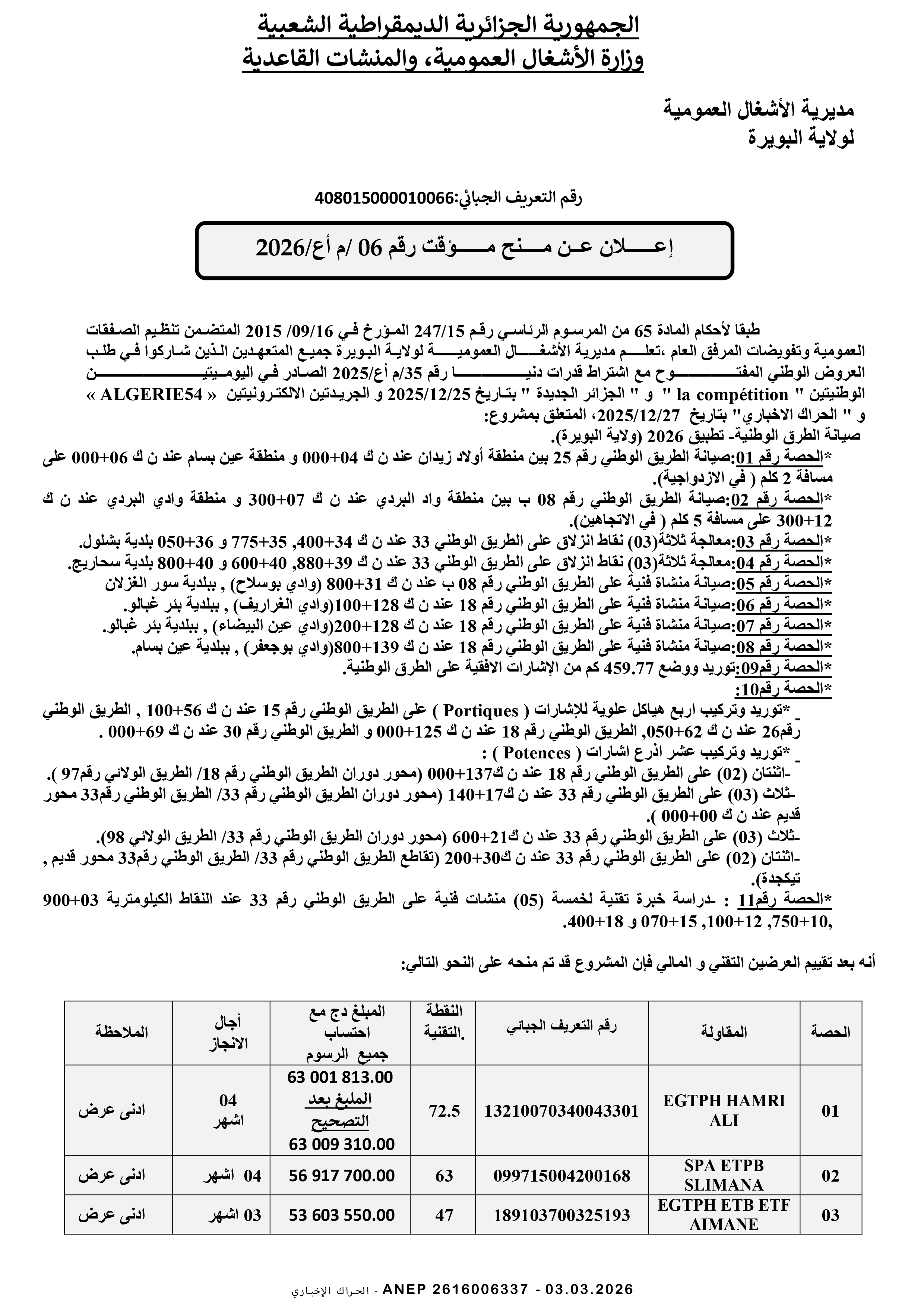 مديرية التجهيزات العمومية لولاية برج بوعريريج