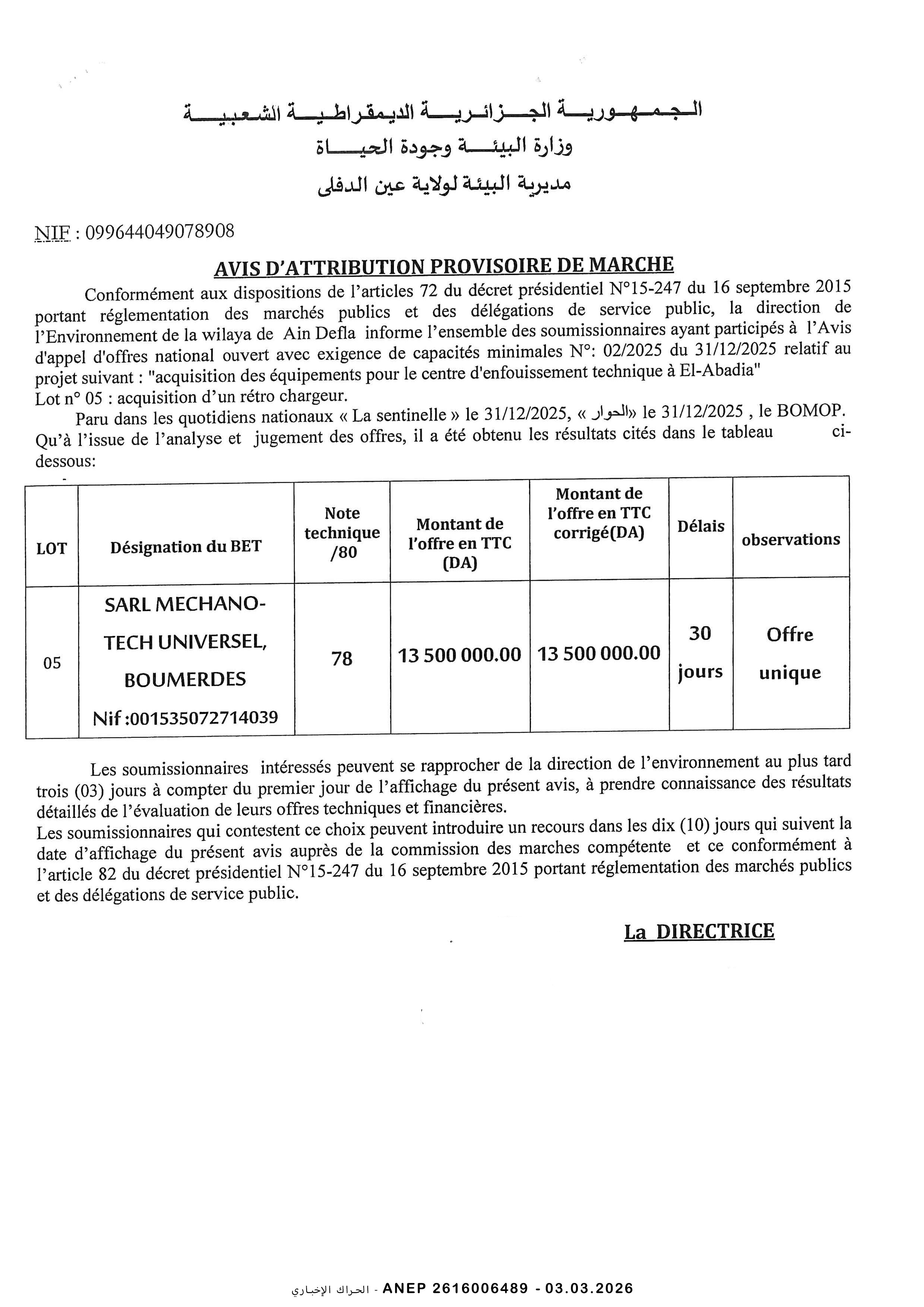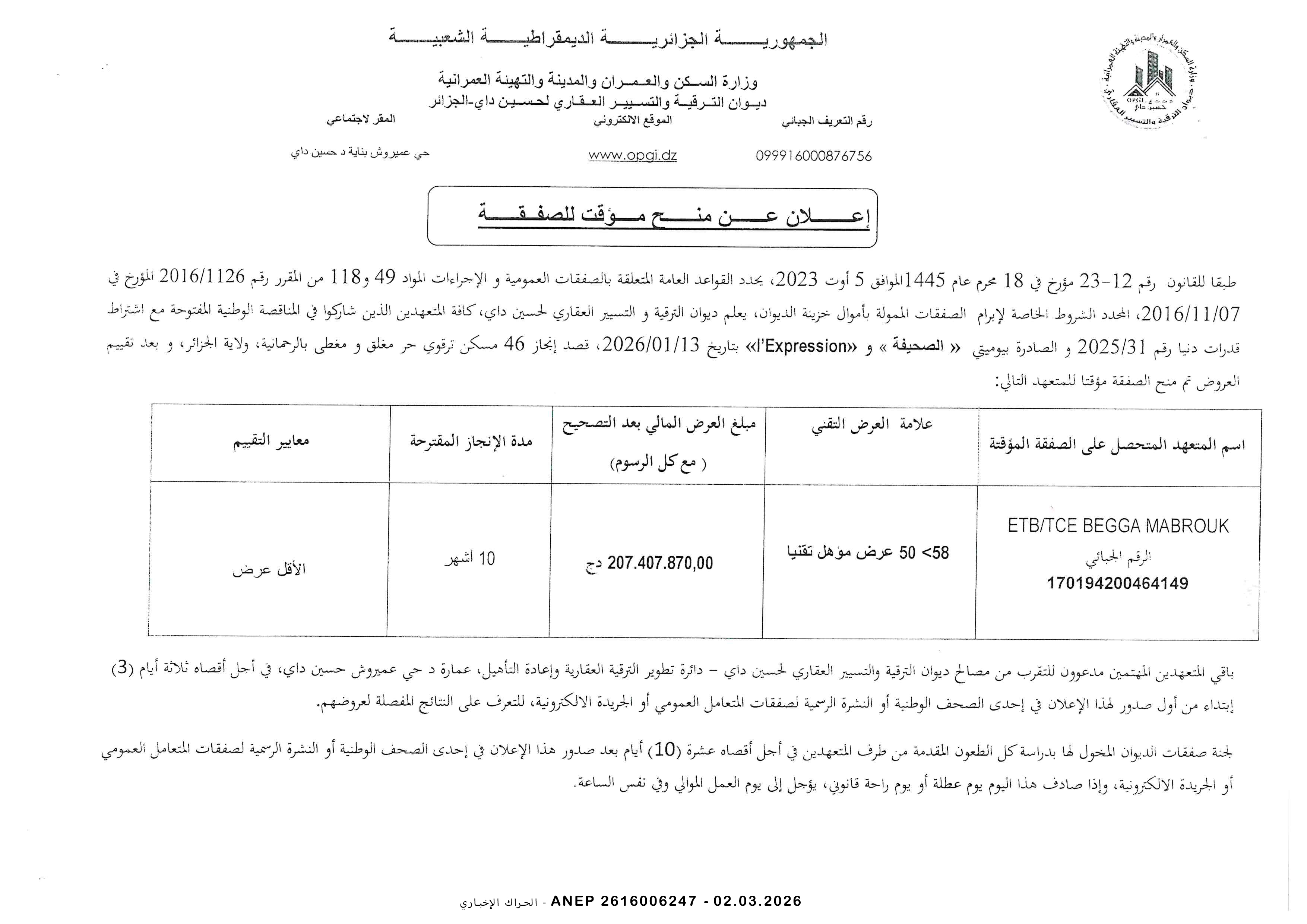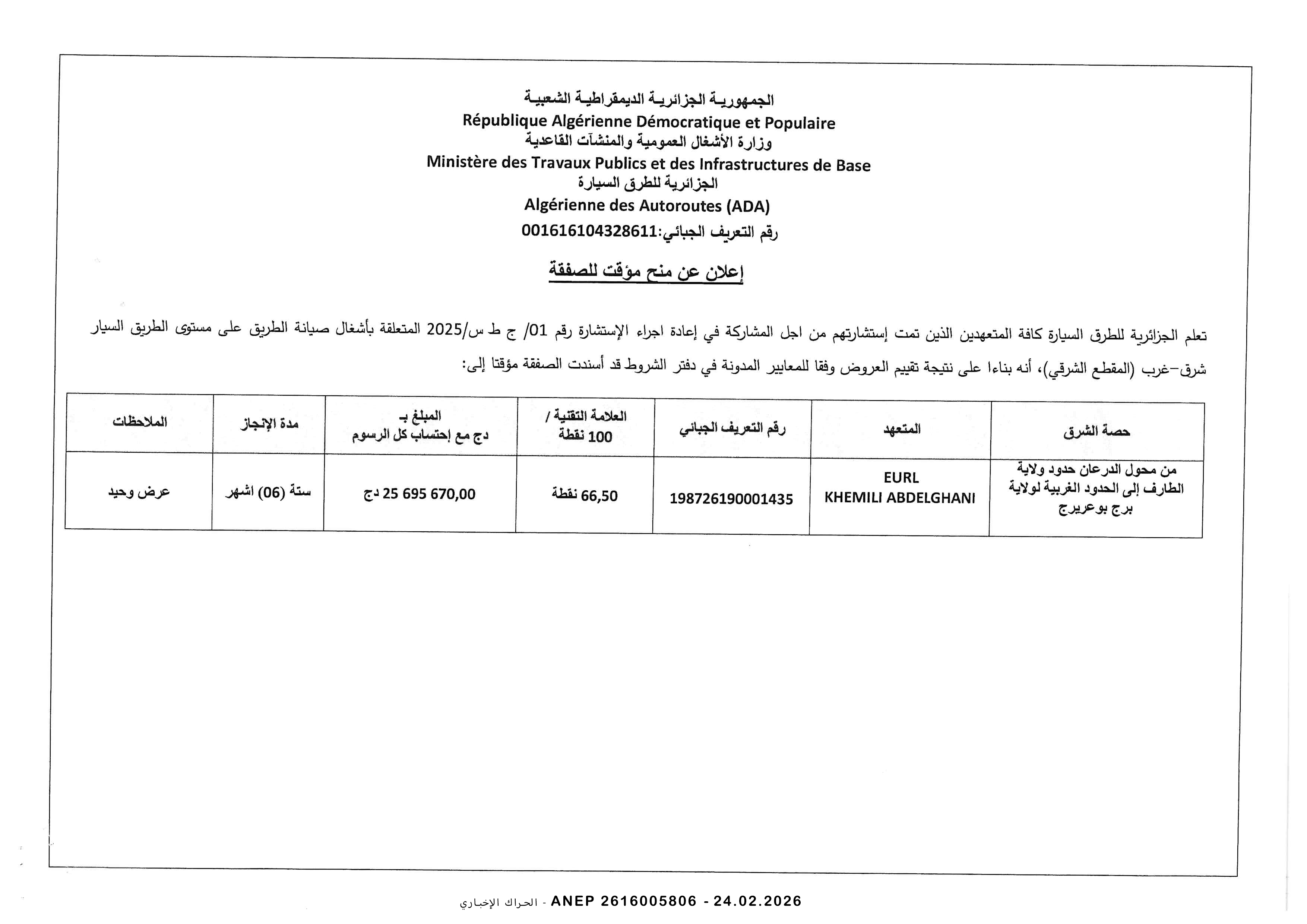 مديرية التجهيزات العمومية لولاية برج بوعريريج
