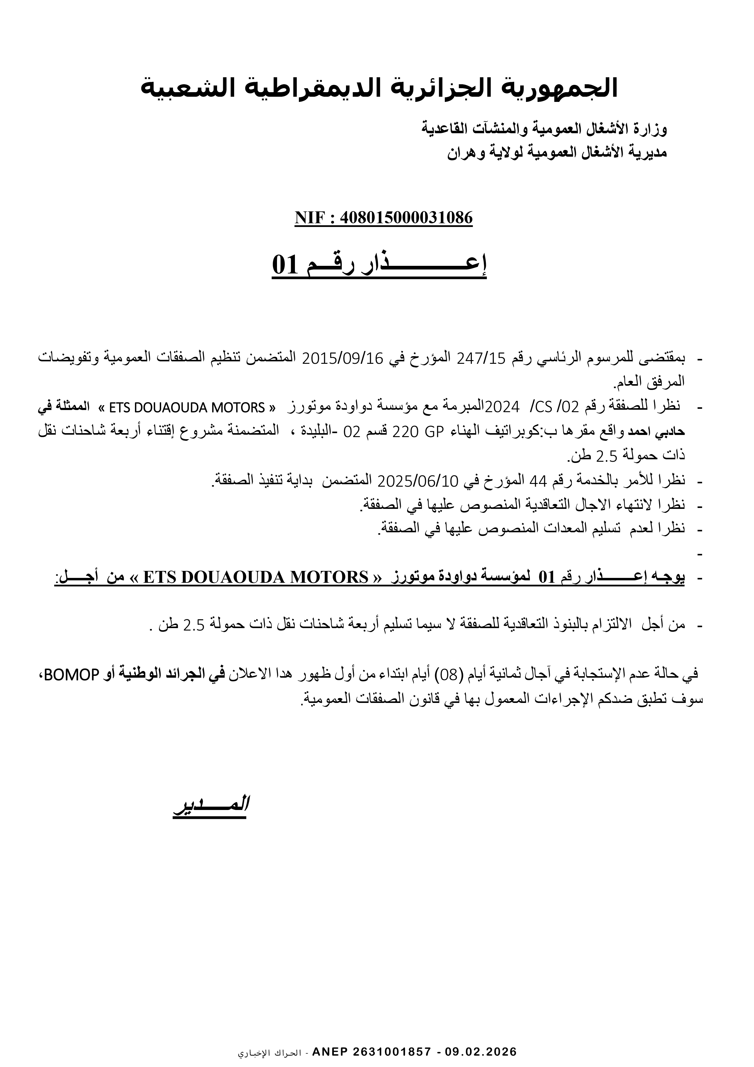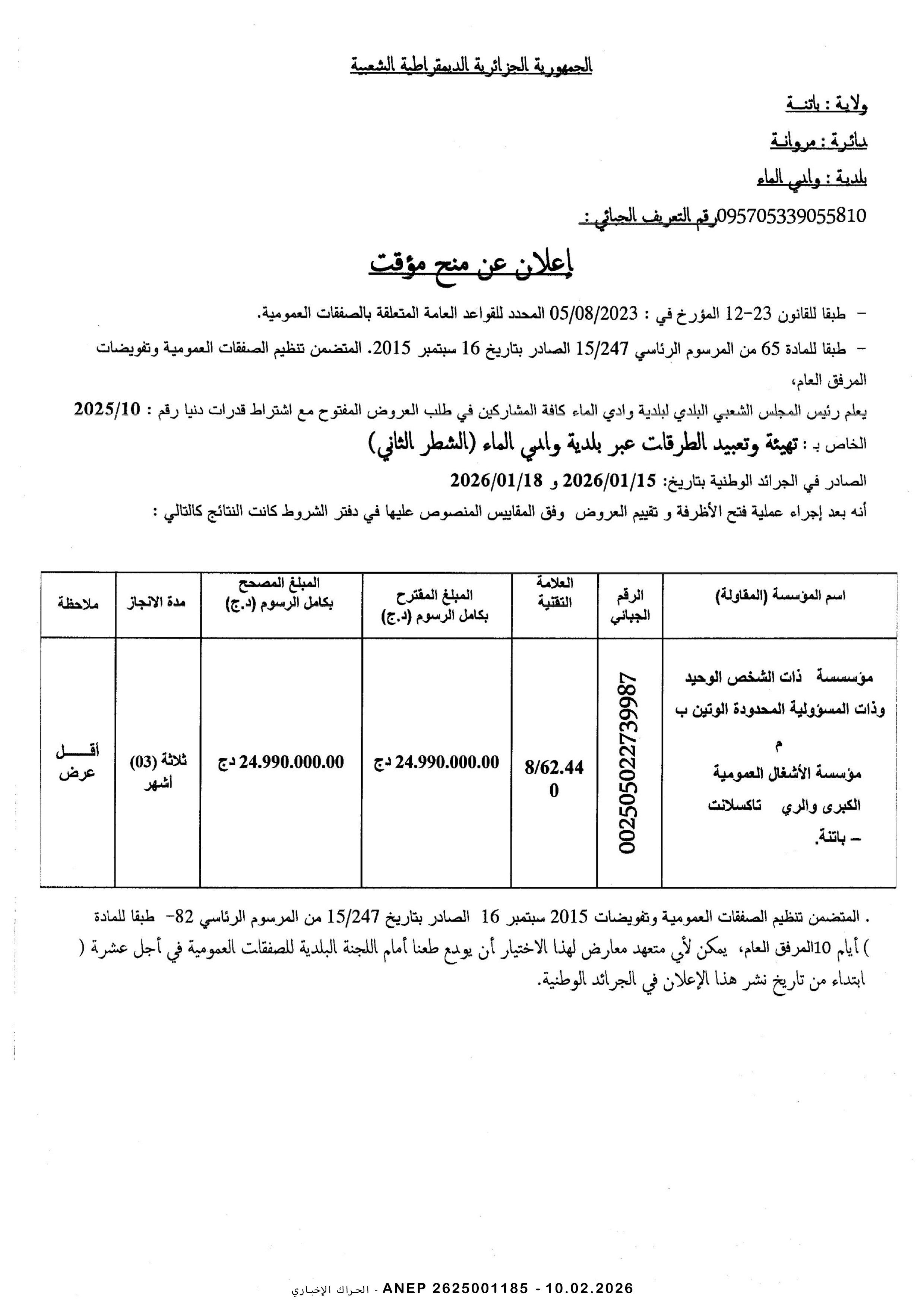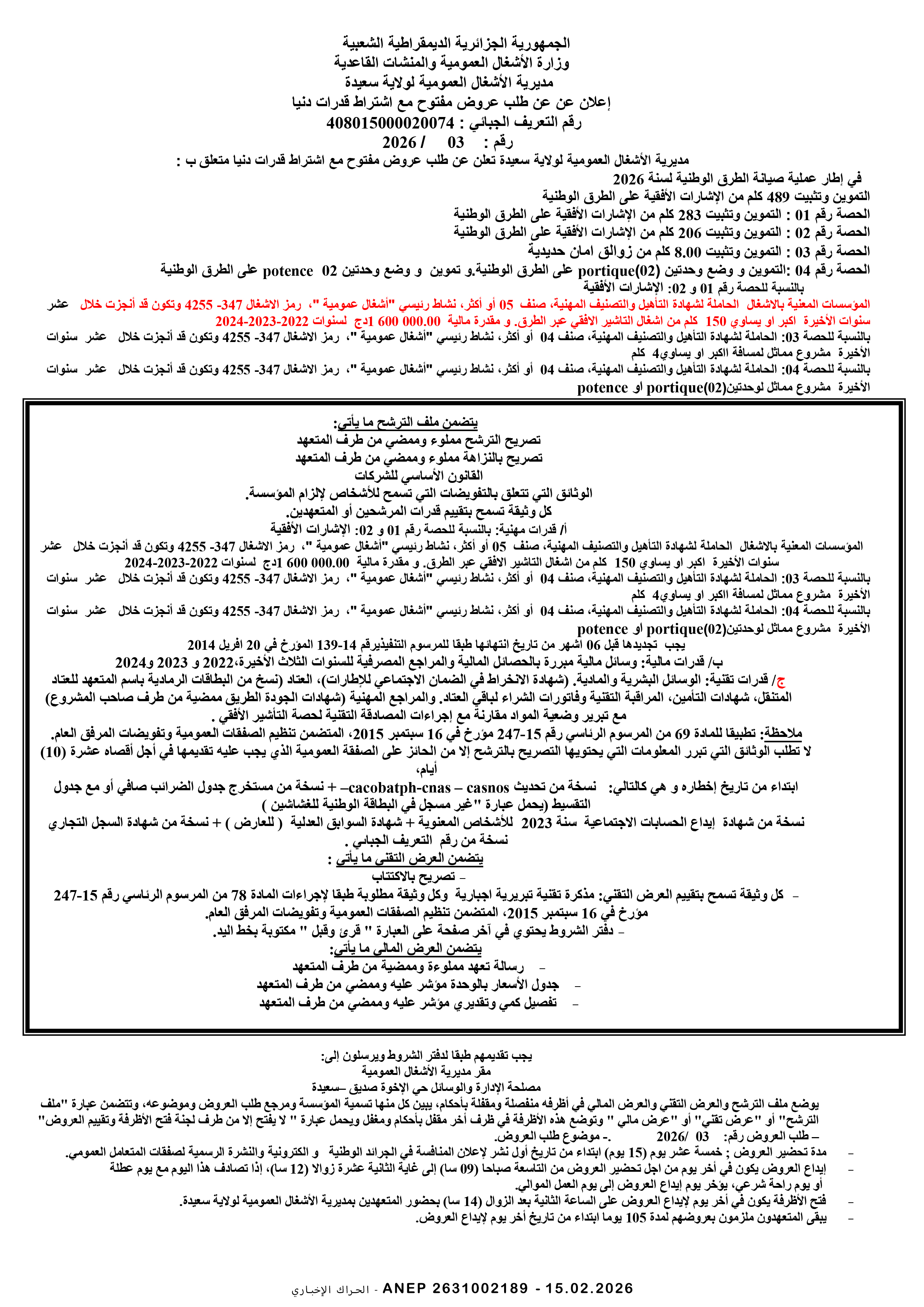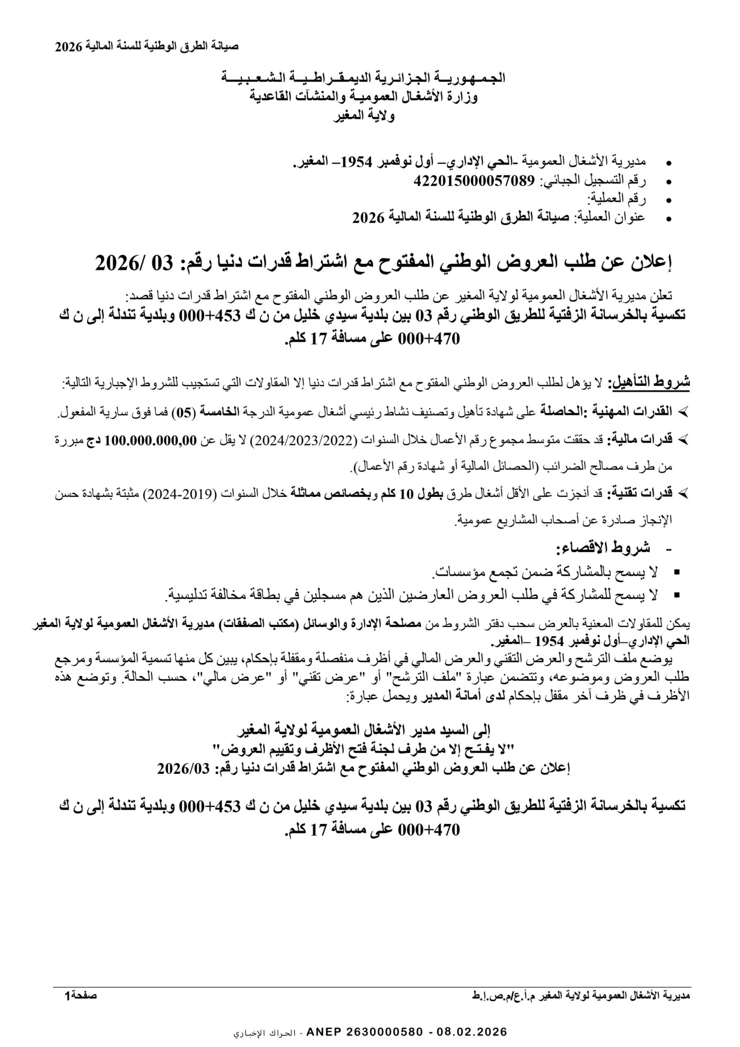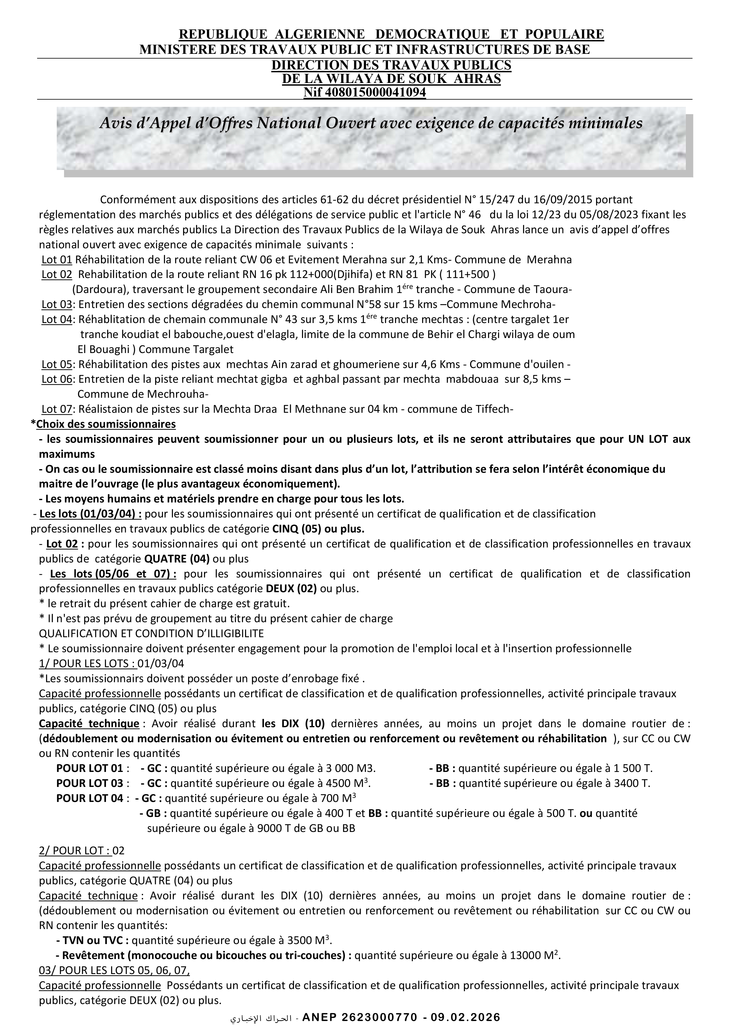 مديرية الأشغال العمومية لولاية سوق أهراس