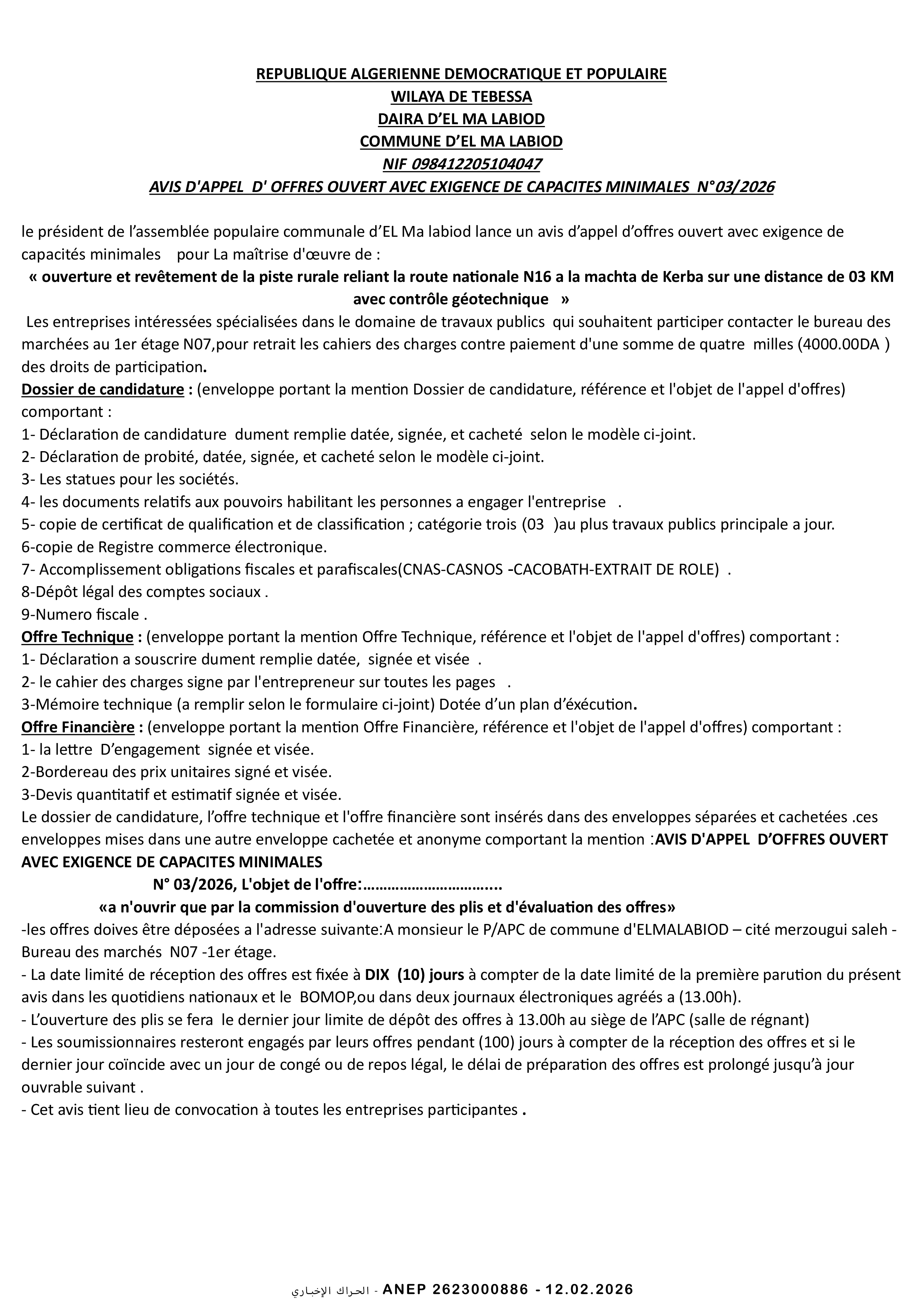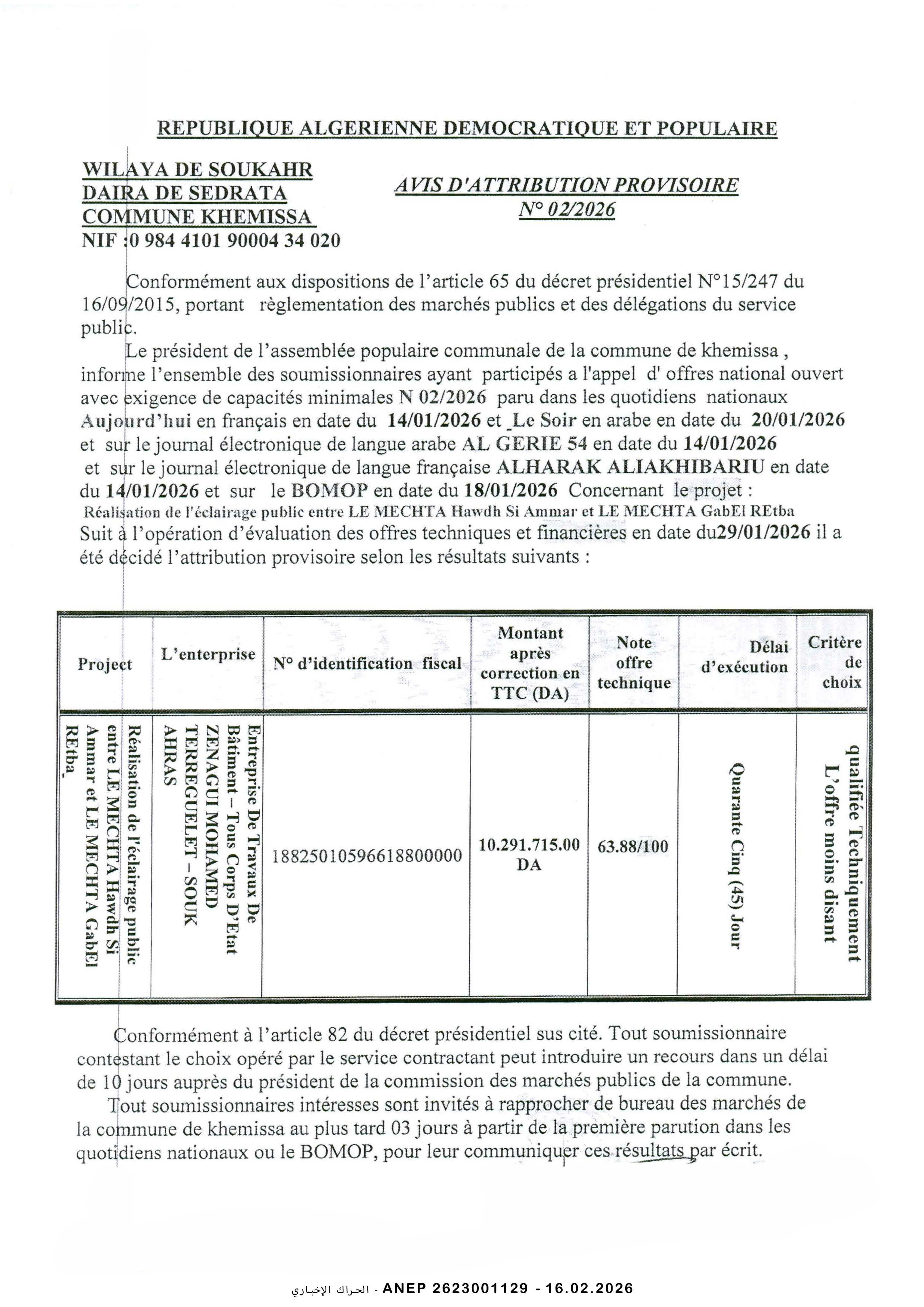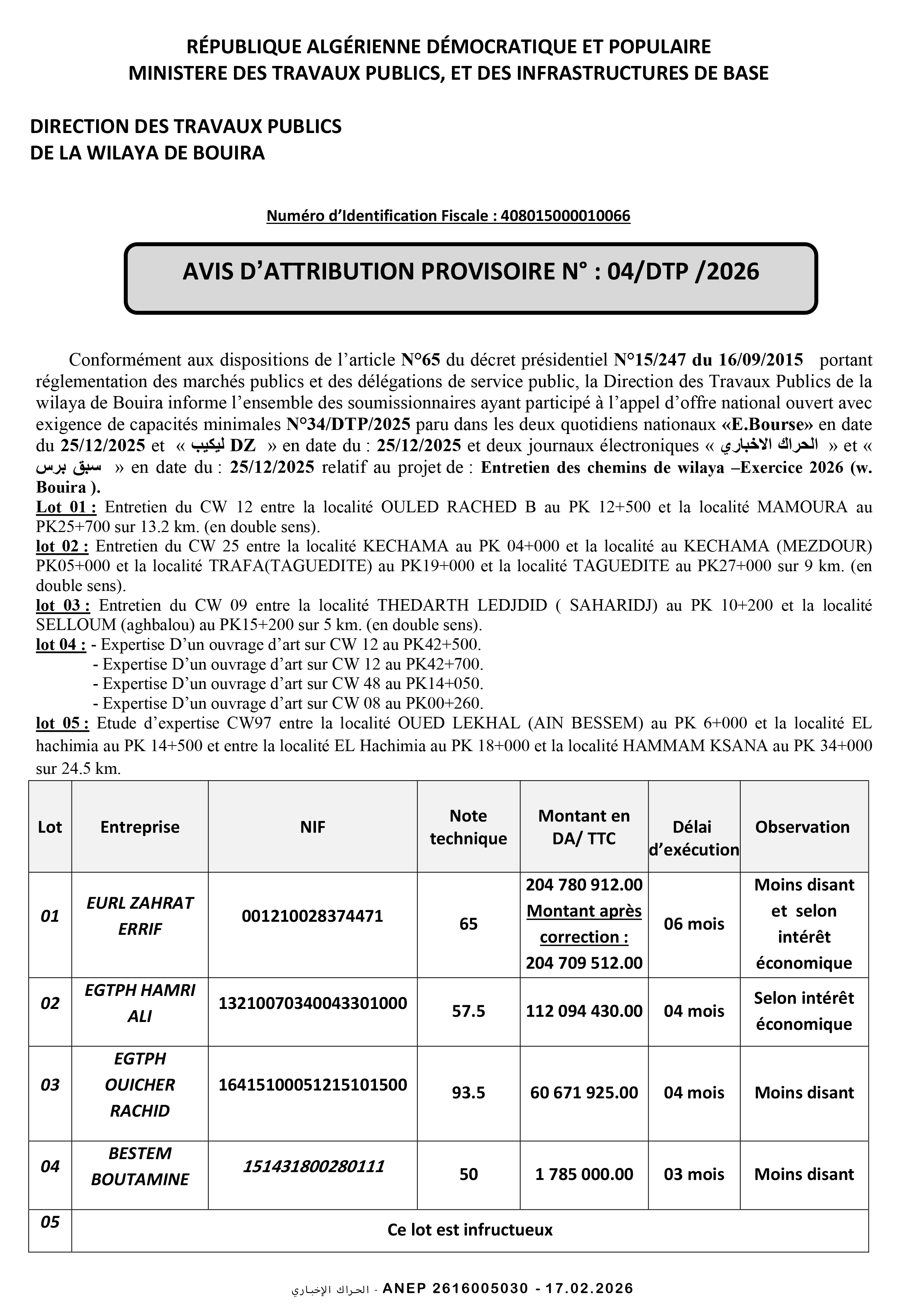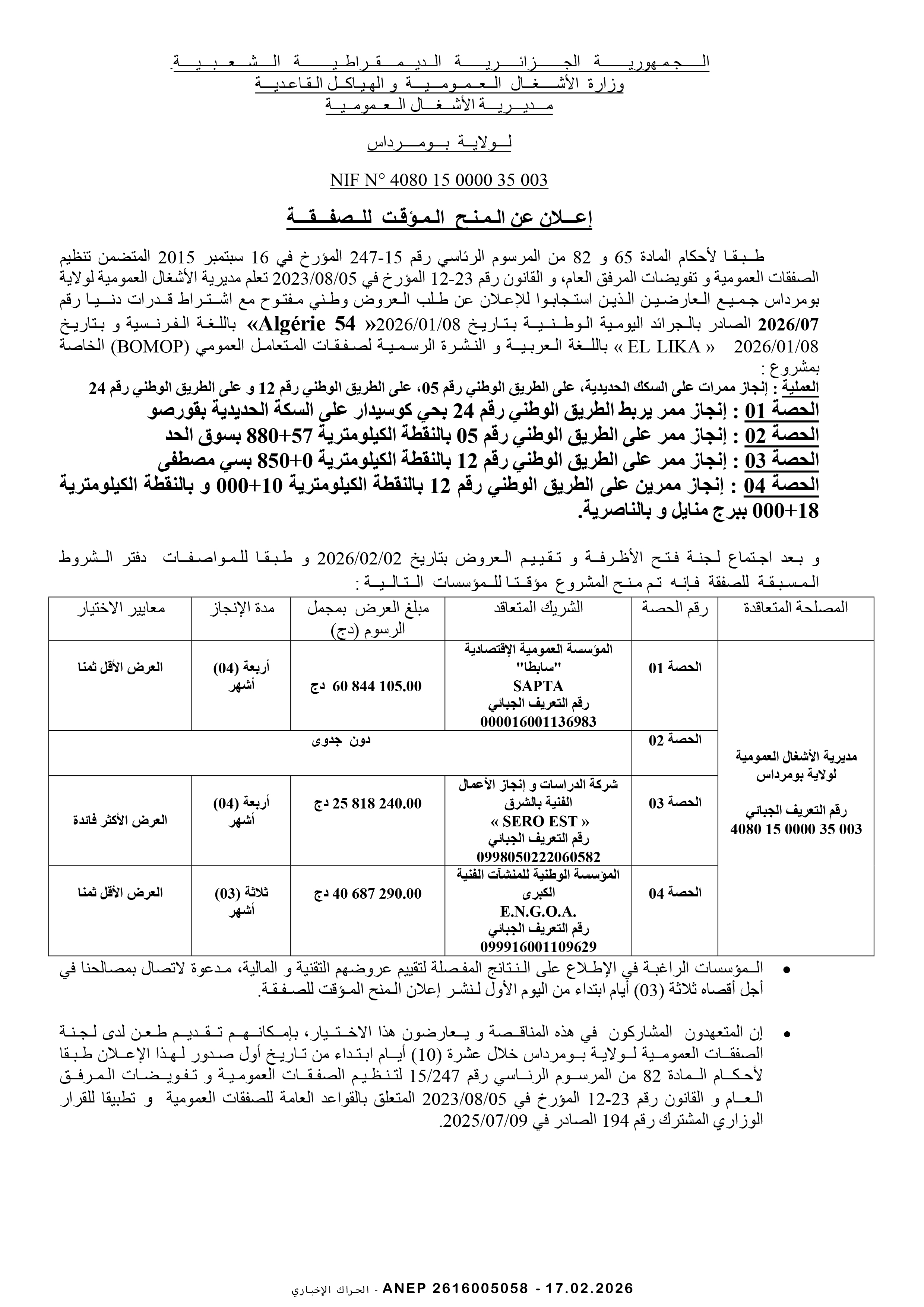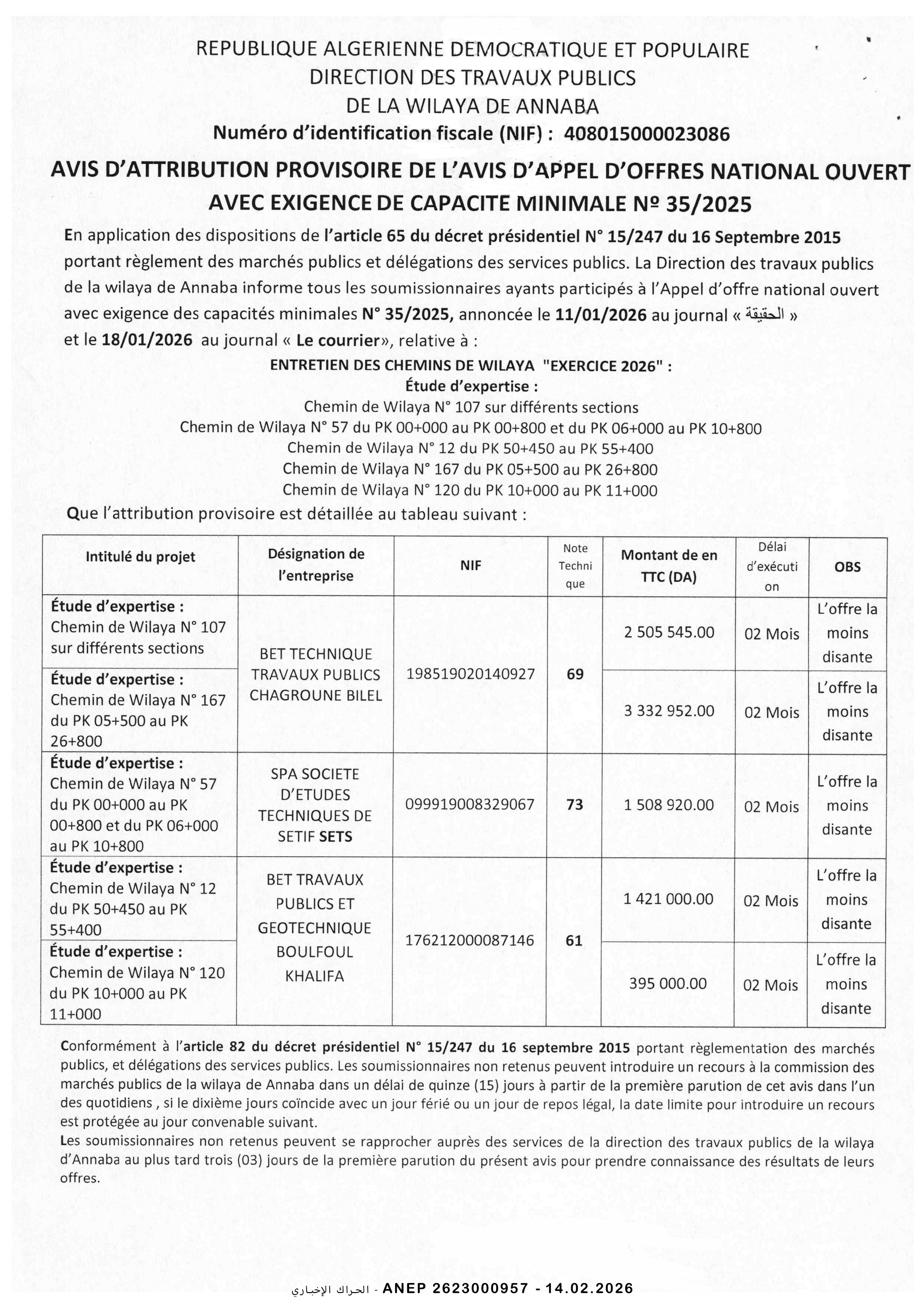 مديرية الأشغال العمومية لولاية سوق أهراس