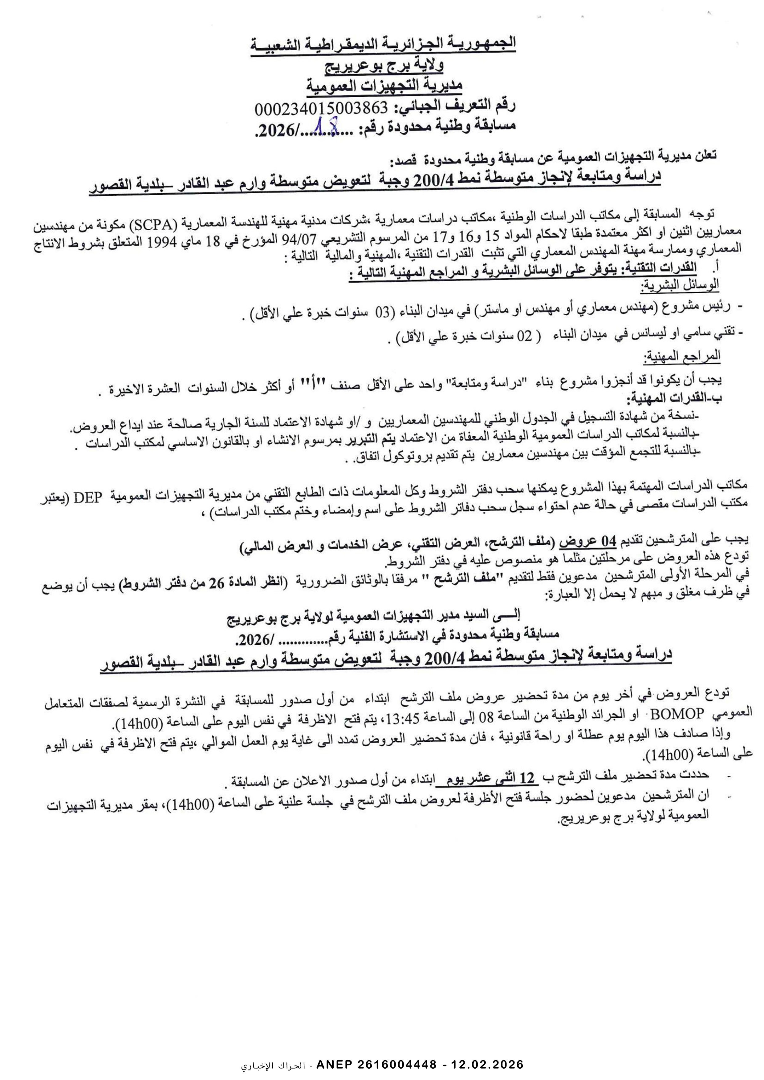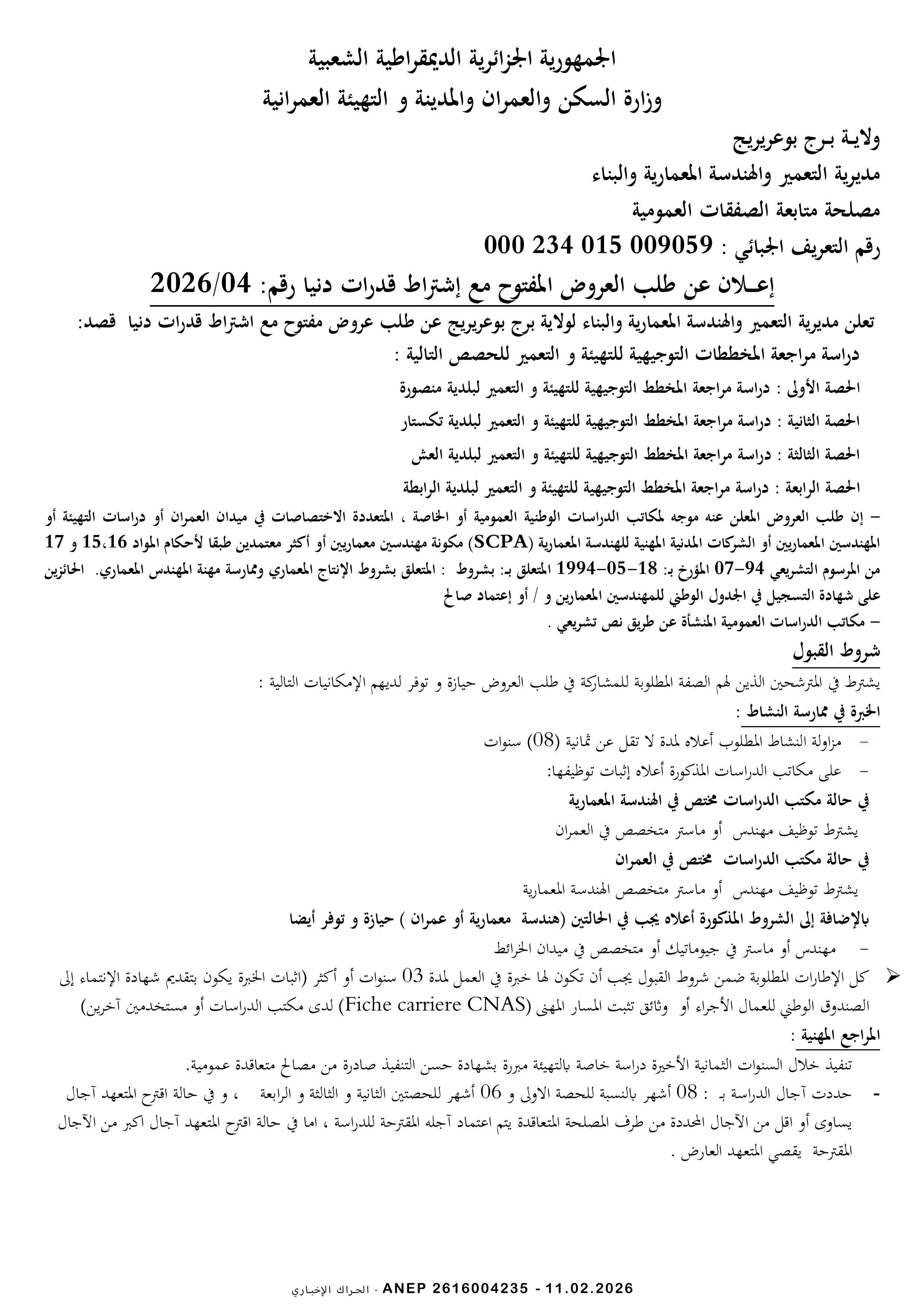 مديرية التعمير و الهندسة المعمارية و البناء لولاية برج بوعريريج
