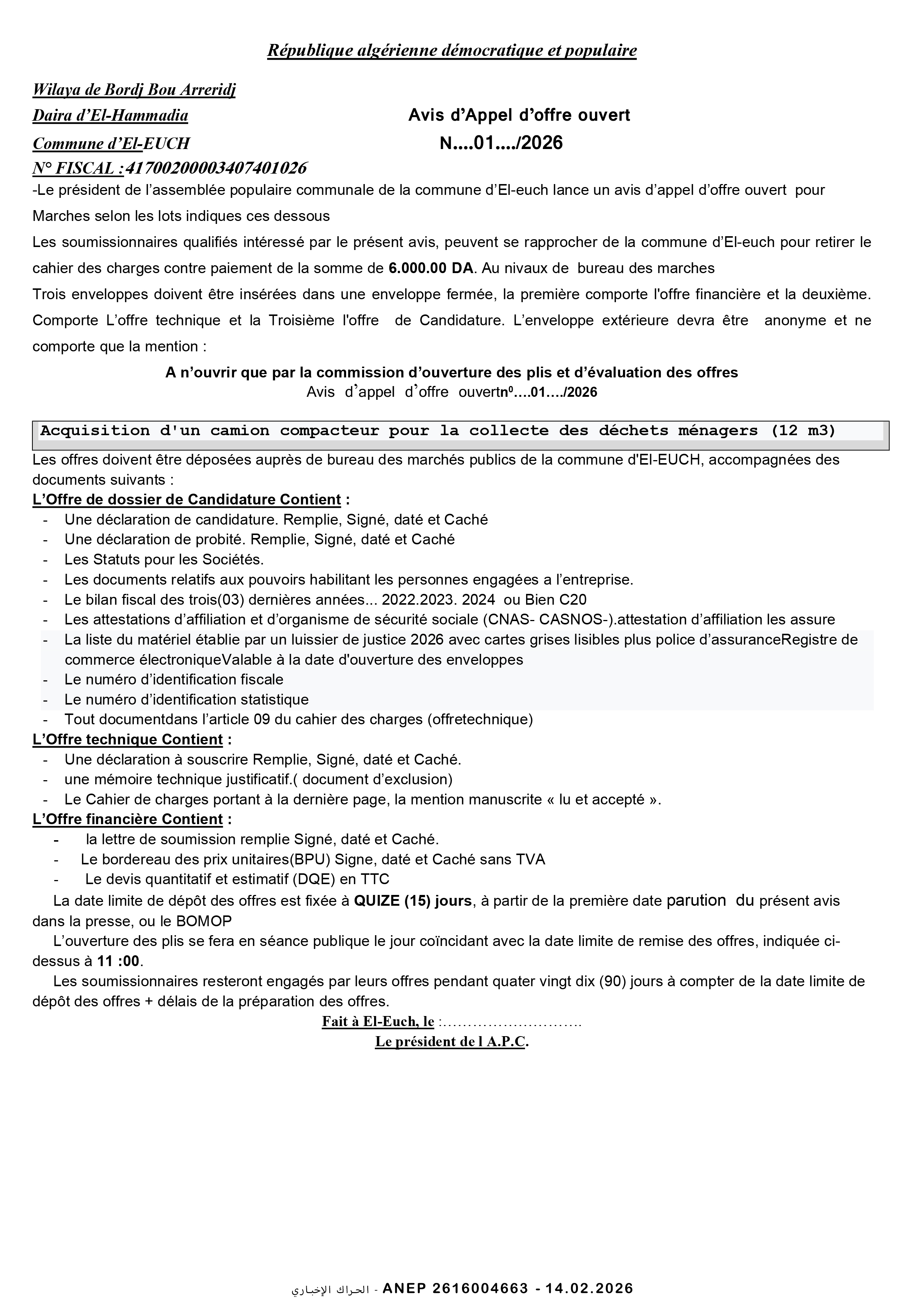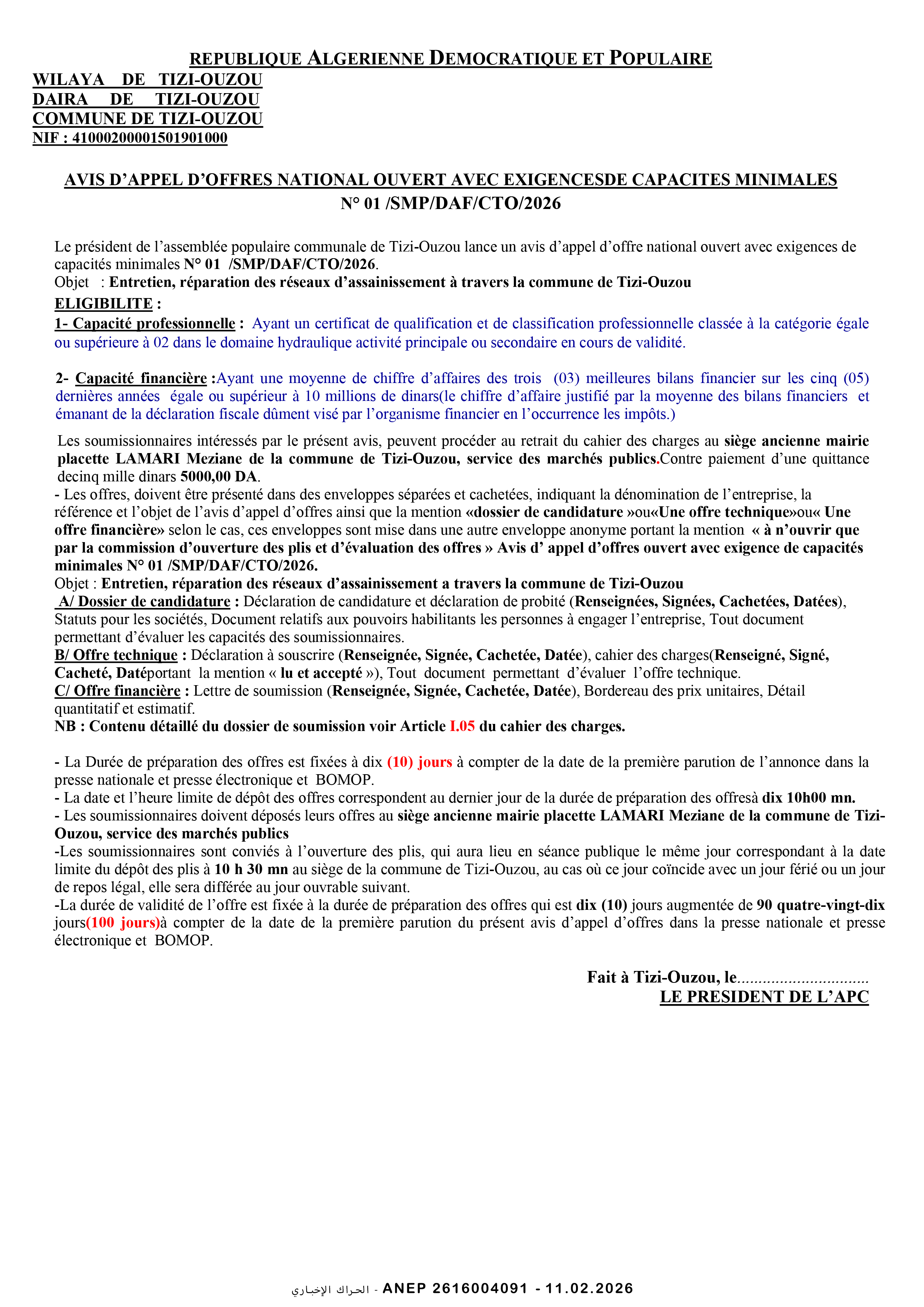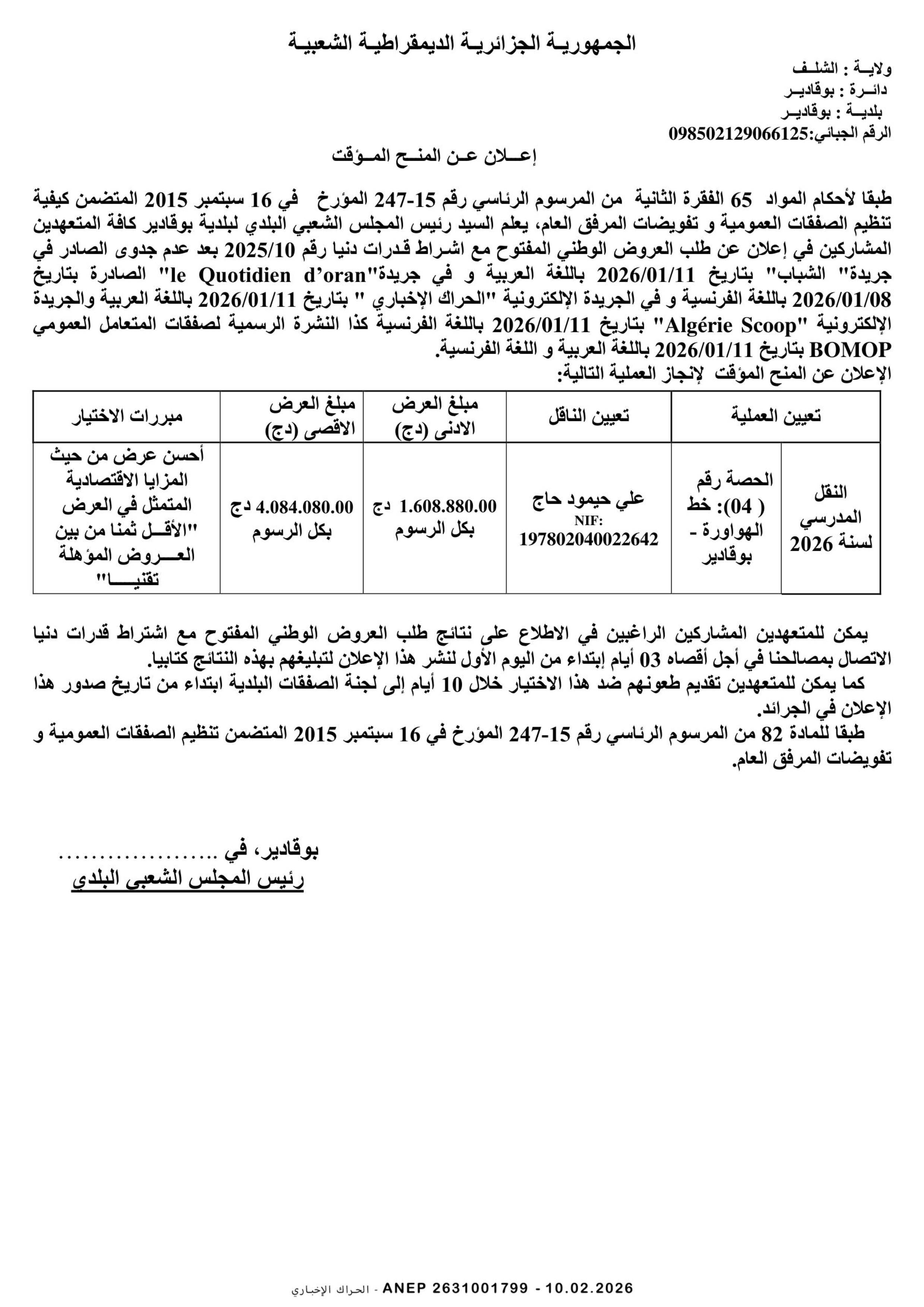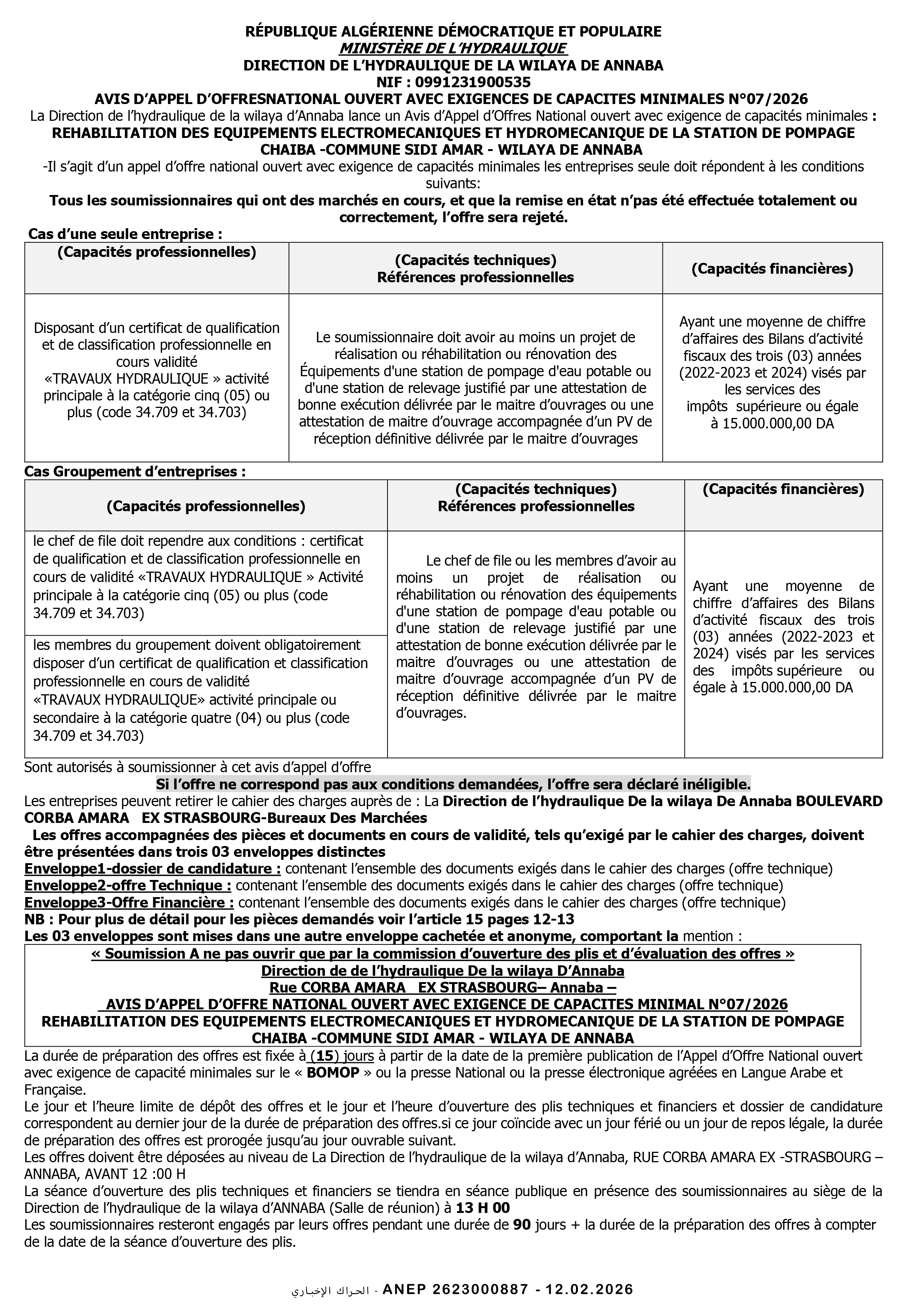دراسة و متابعة لانجاز ابتدائية صنف 01 رقم 02 بلدية أولاد عمار