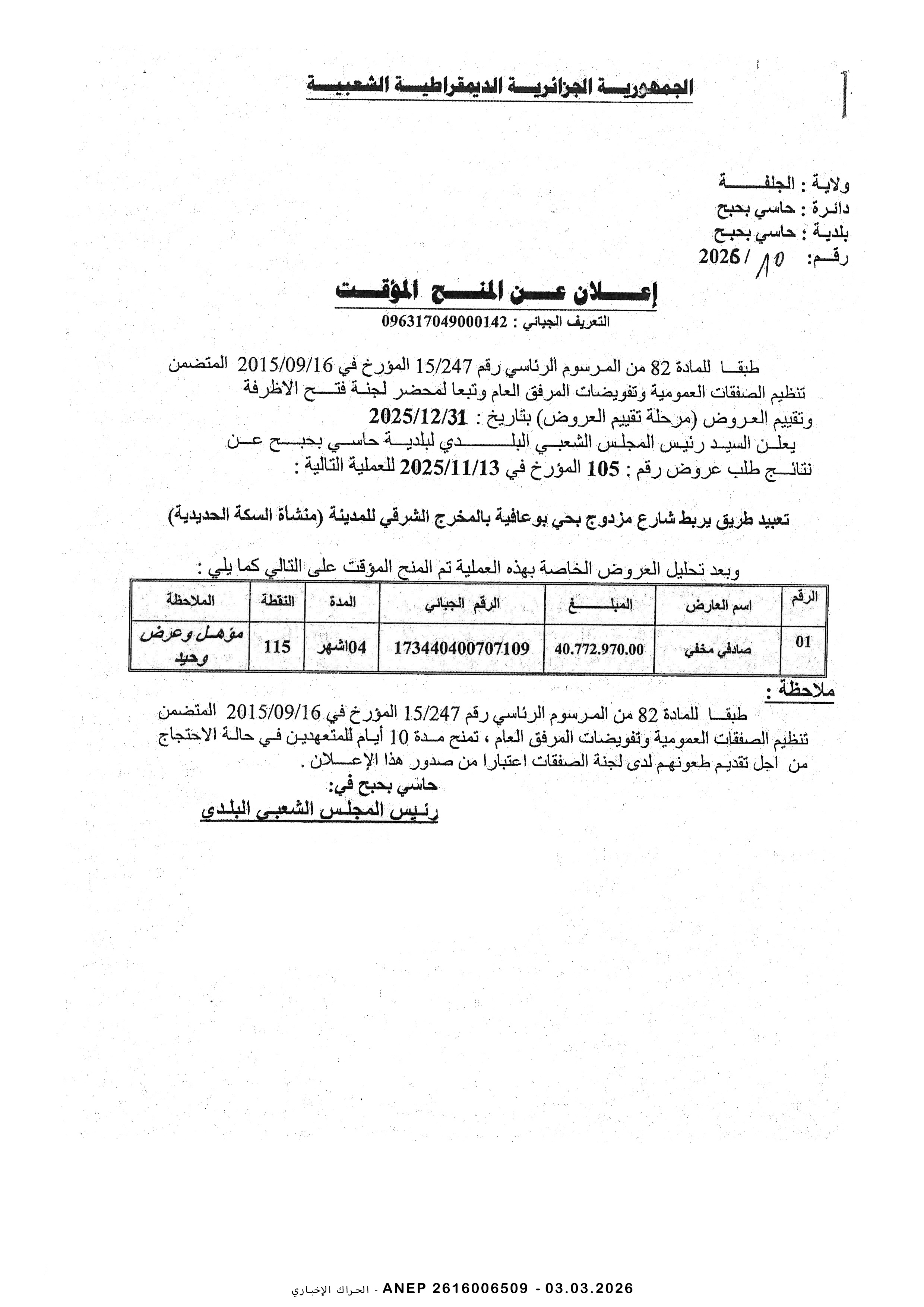 إنجاز 50 مسكن عمومي إيجاري بلدية حاسي الفحل