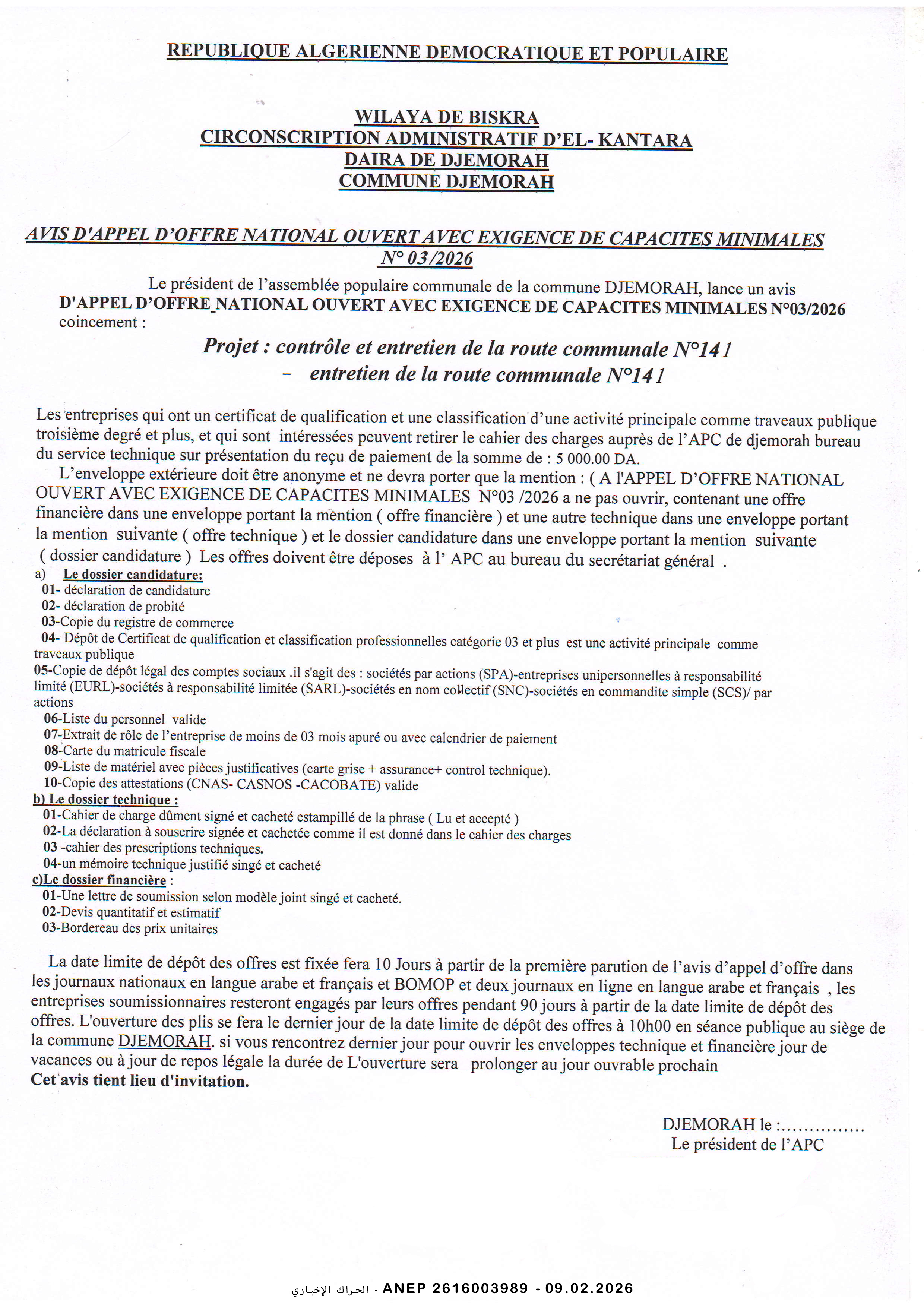 تدعيم الطريق الوطني رقم 23 على مسافة 3 كلم