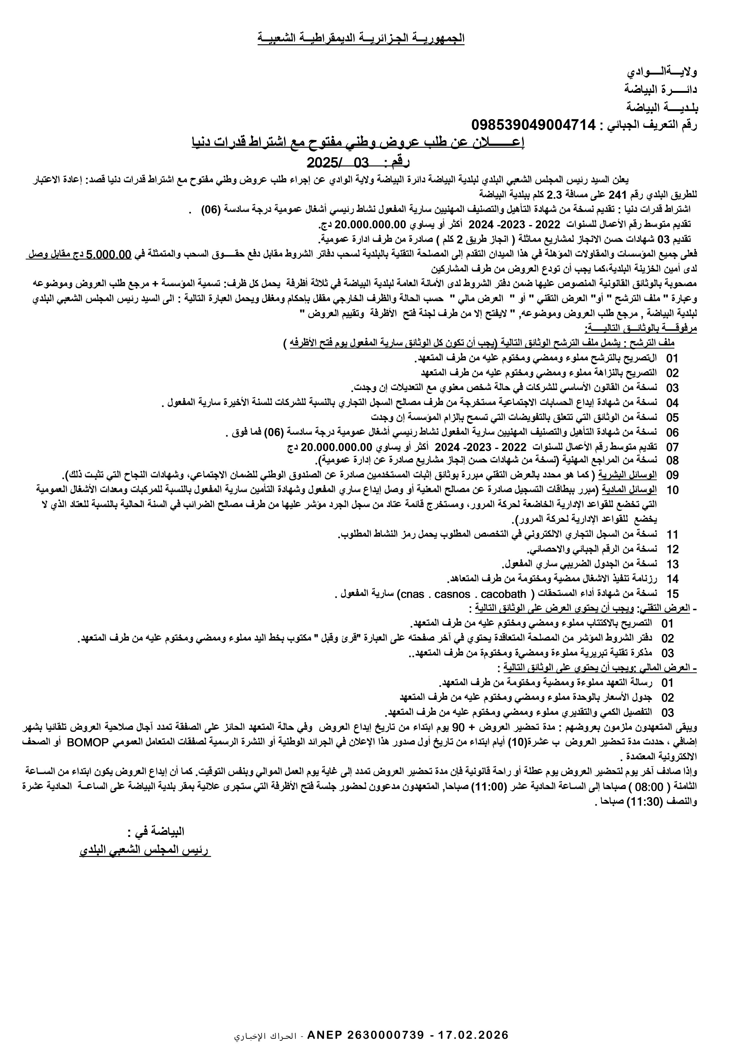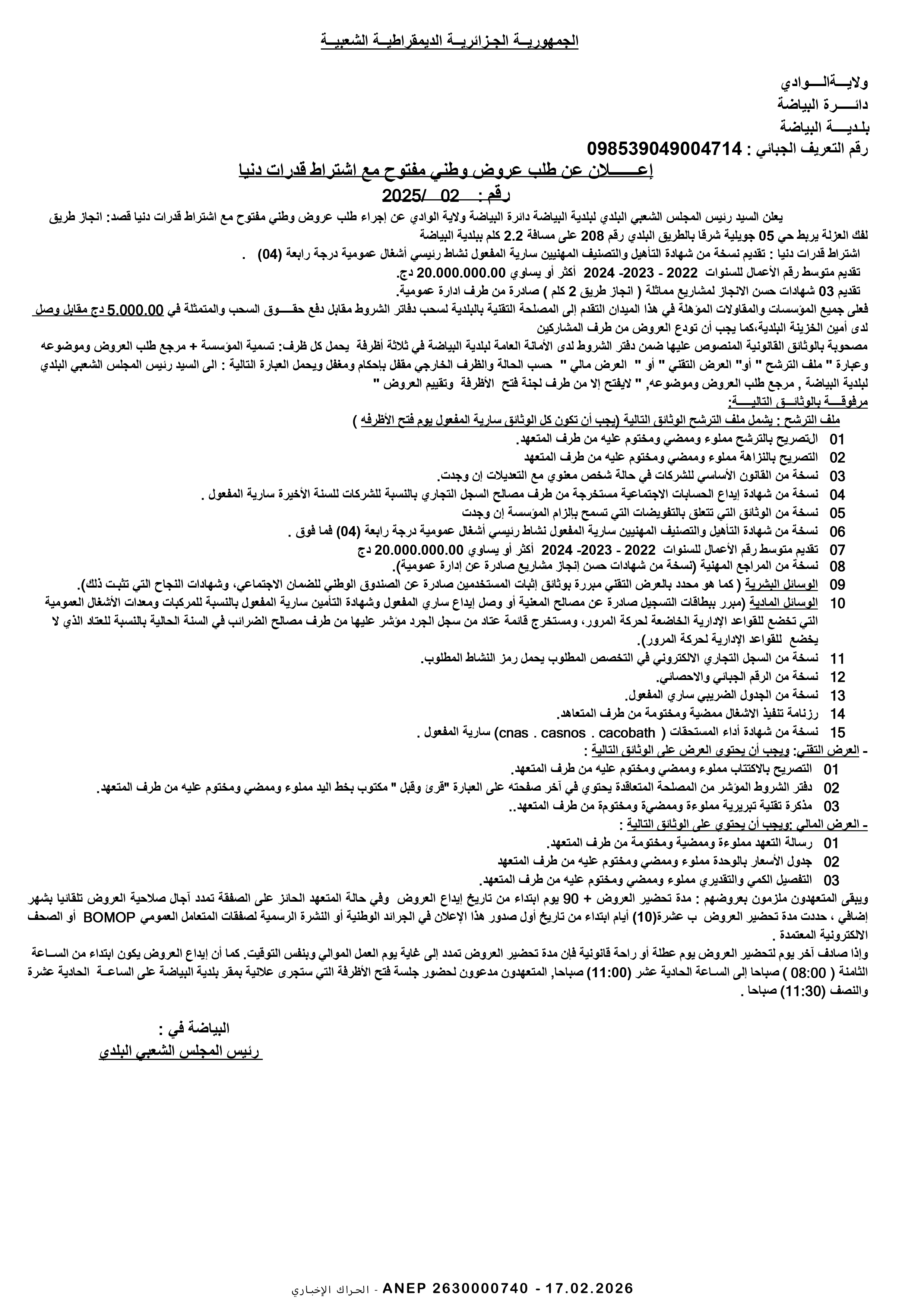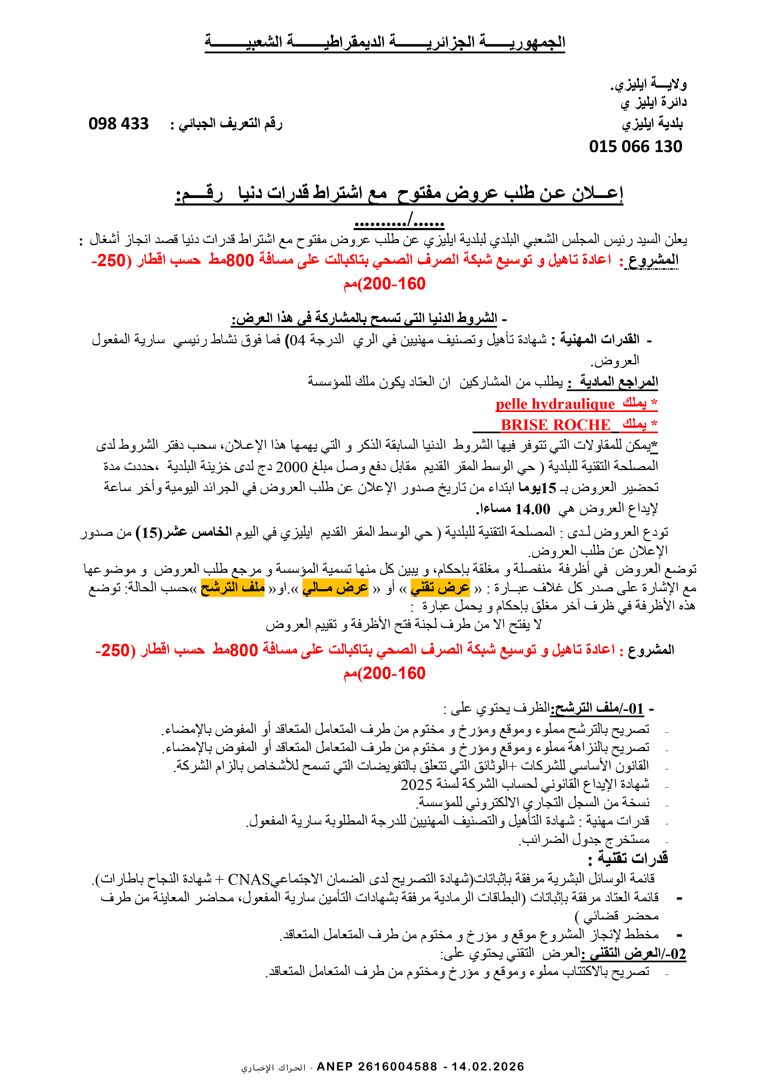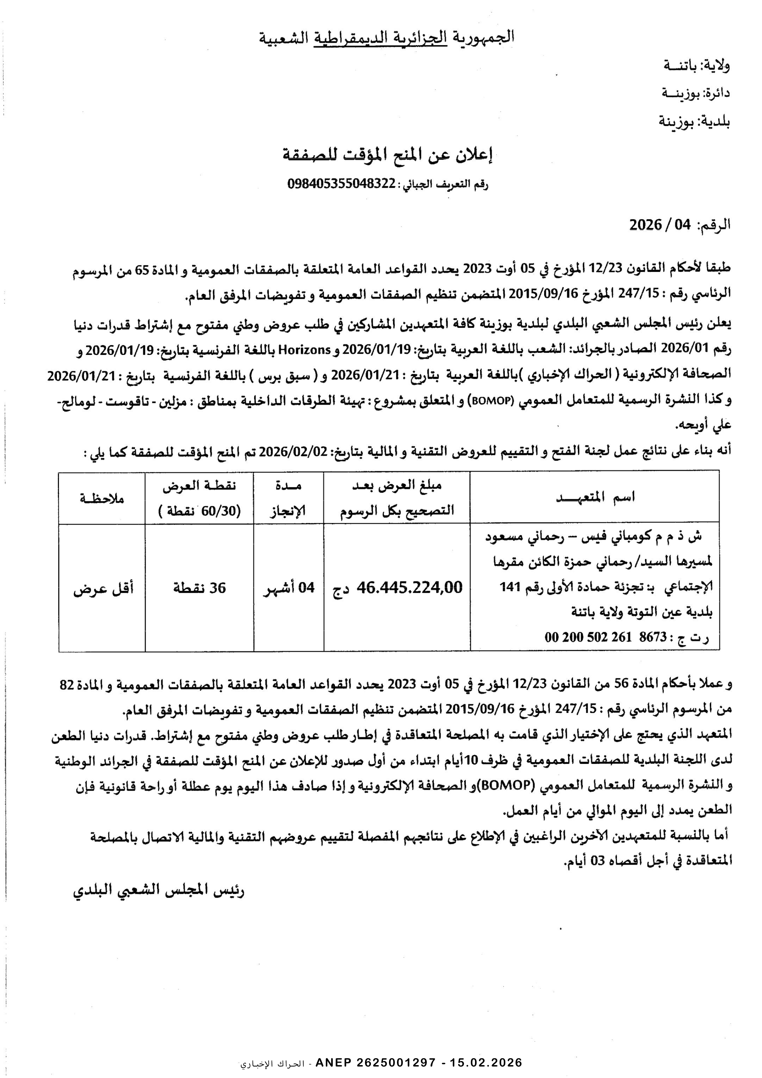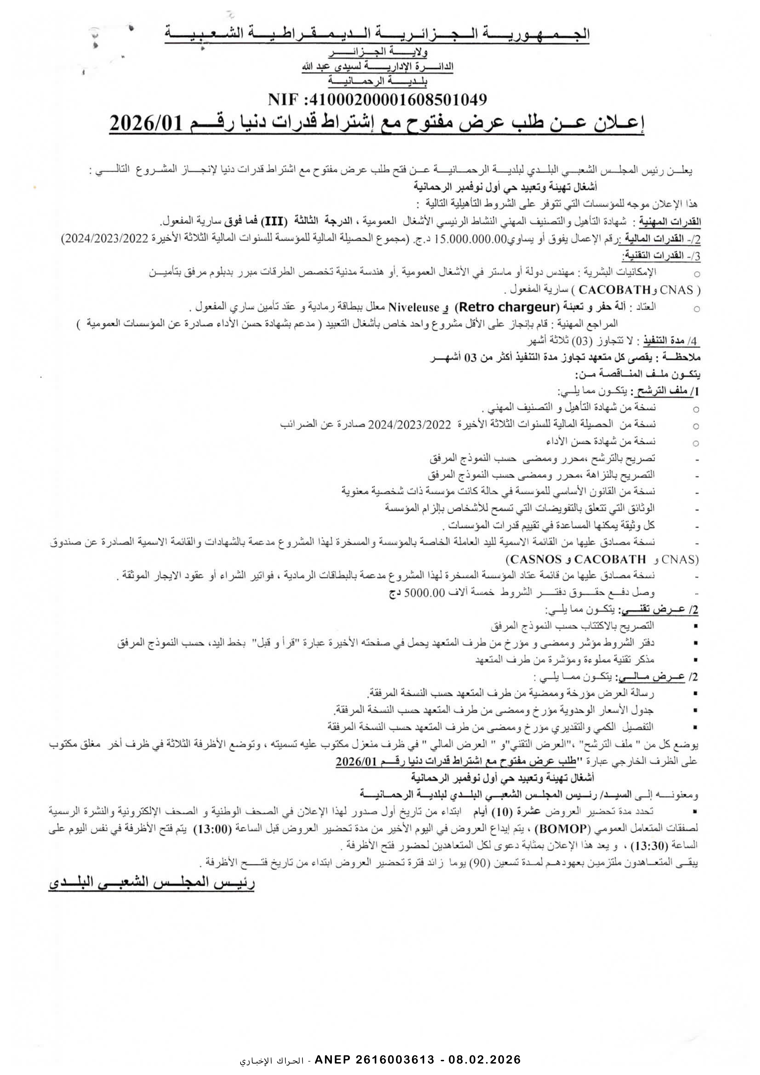 إنجاز 300/20 مسكن عمومي إيجاري مع ربط كل الشبكات و المرافق بلدية بني يخلف ولاية بني عباس