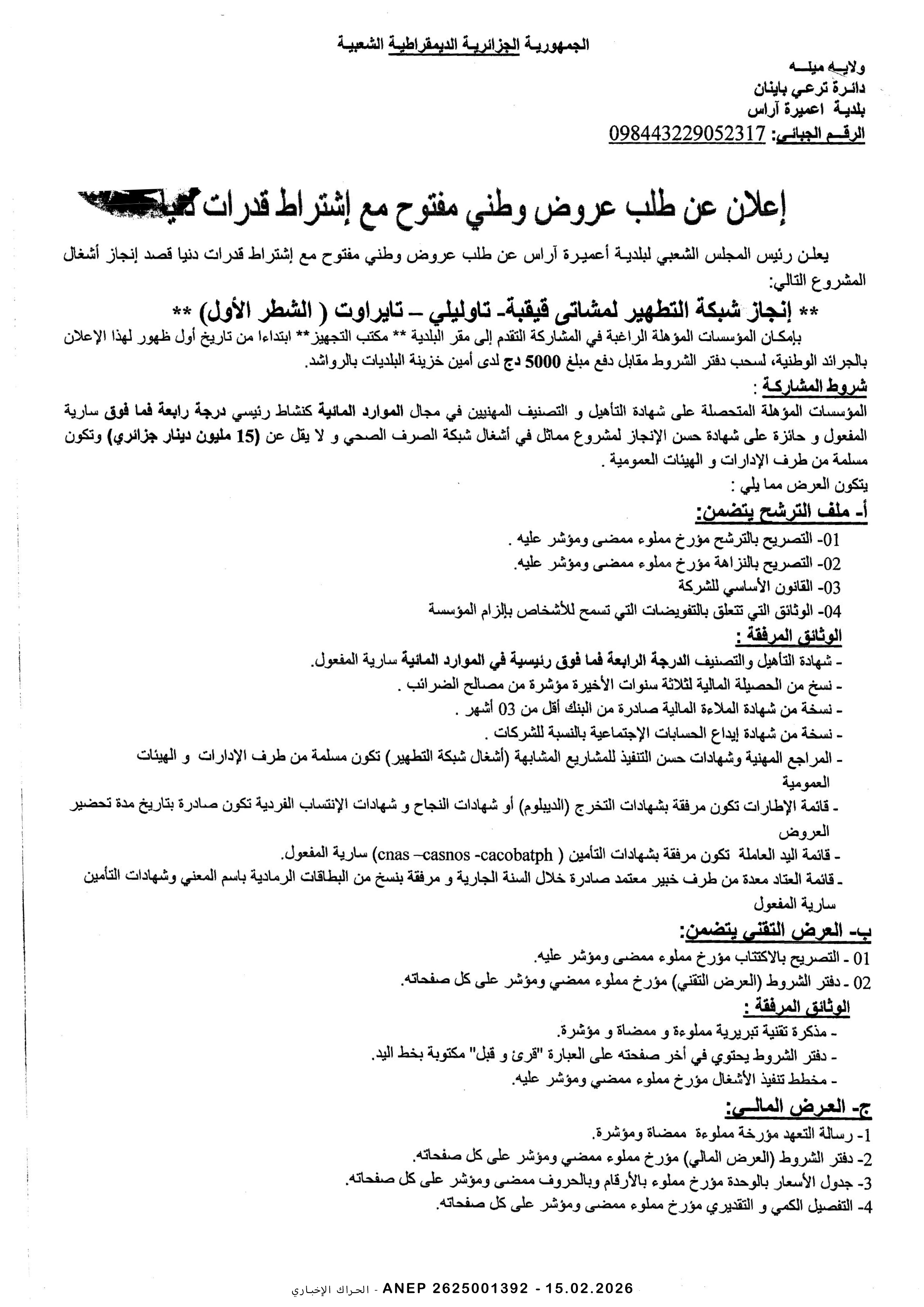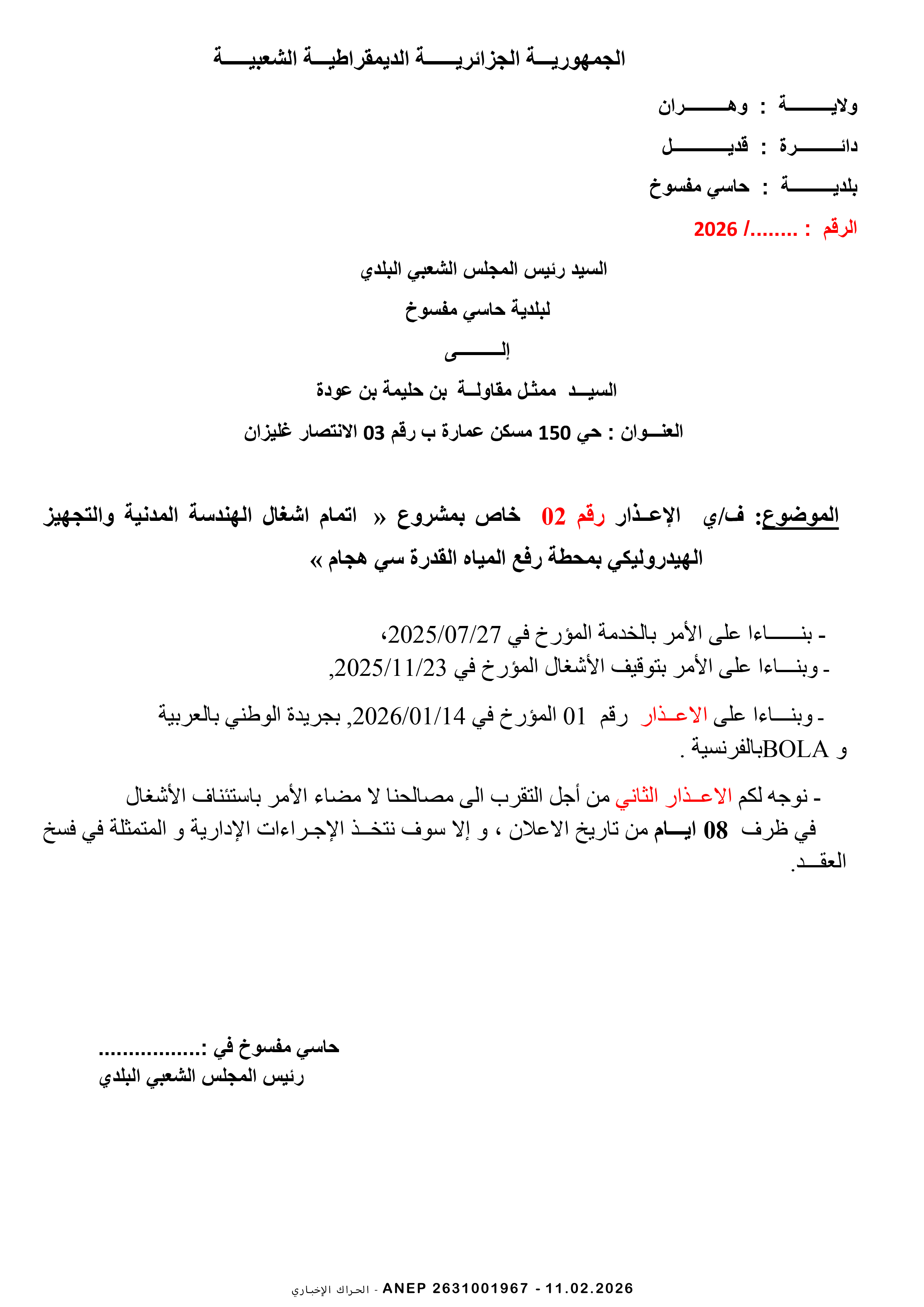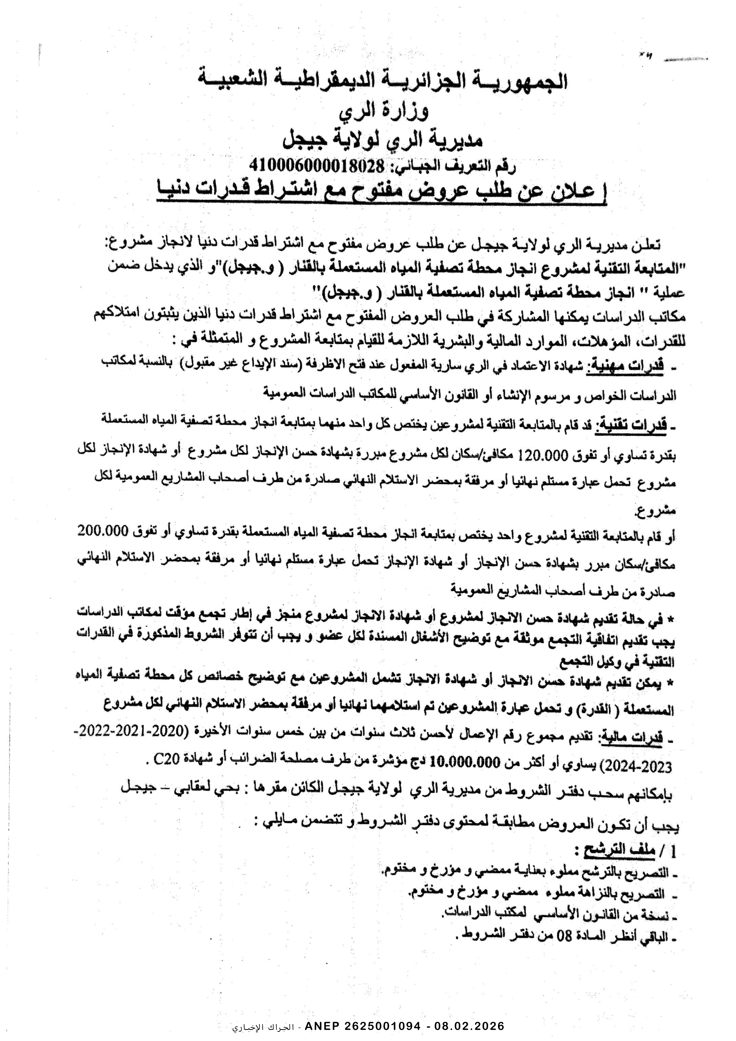المتابعة التقنية لمشروع إنجاز محطة تصفية المياه المستعملة