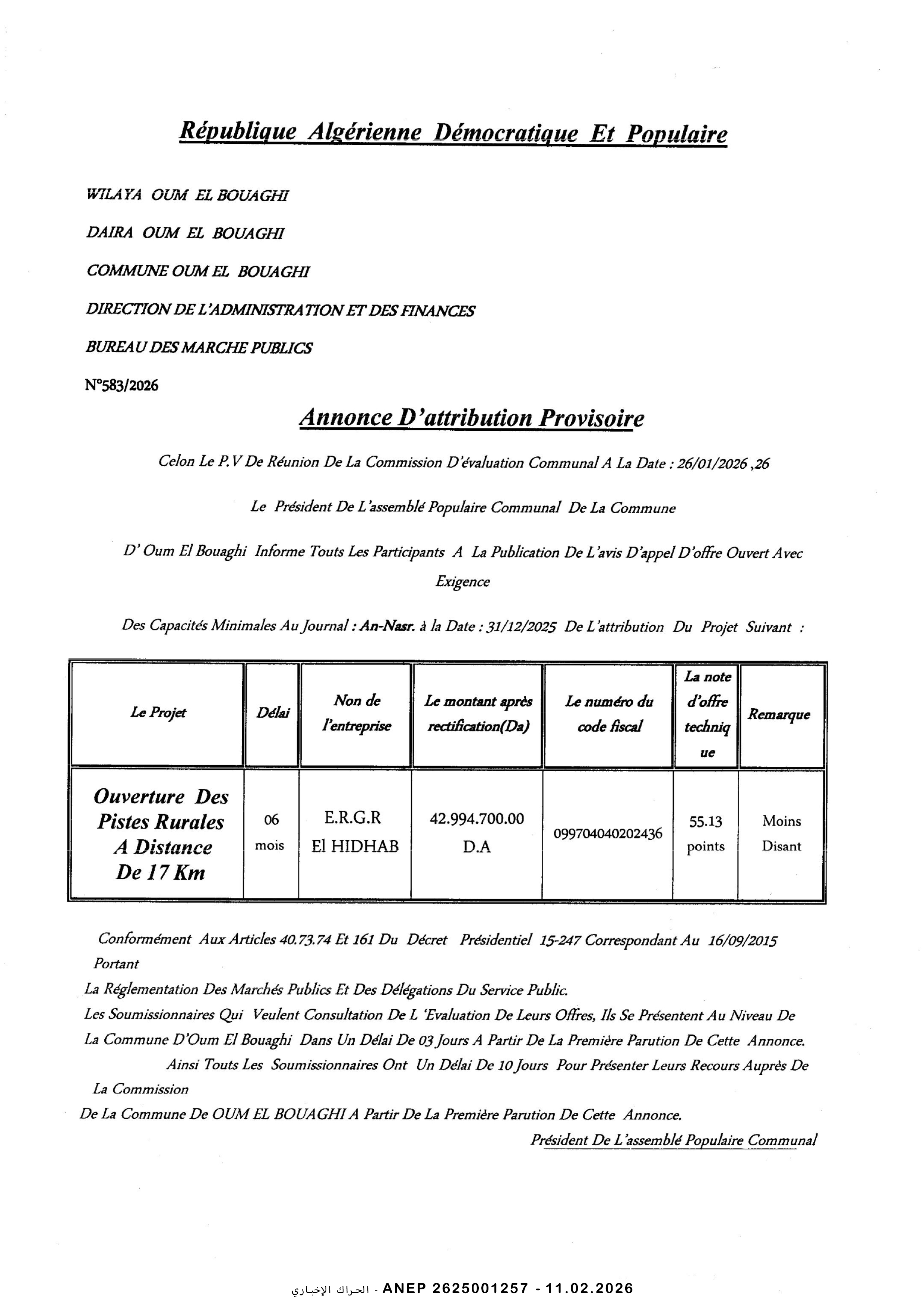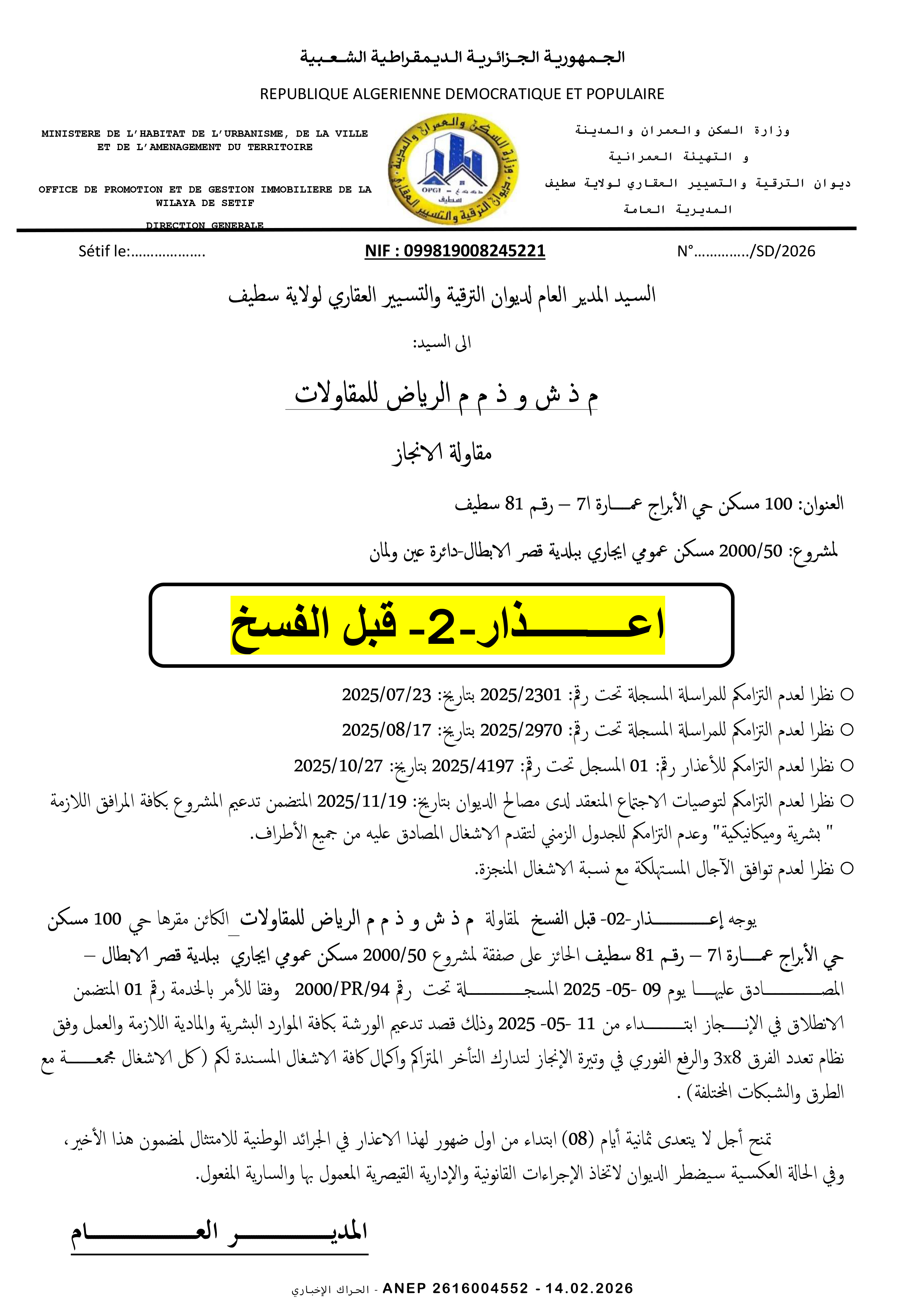 إنجاز 100 مسكن بيع بالايجار مع محلات و مساكن البوابين و كل المرافق بلدبة أم البواقي