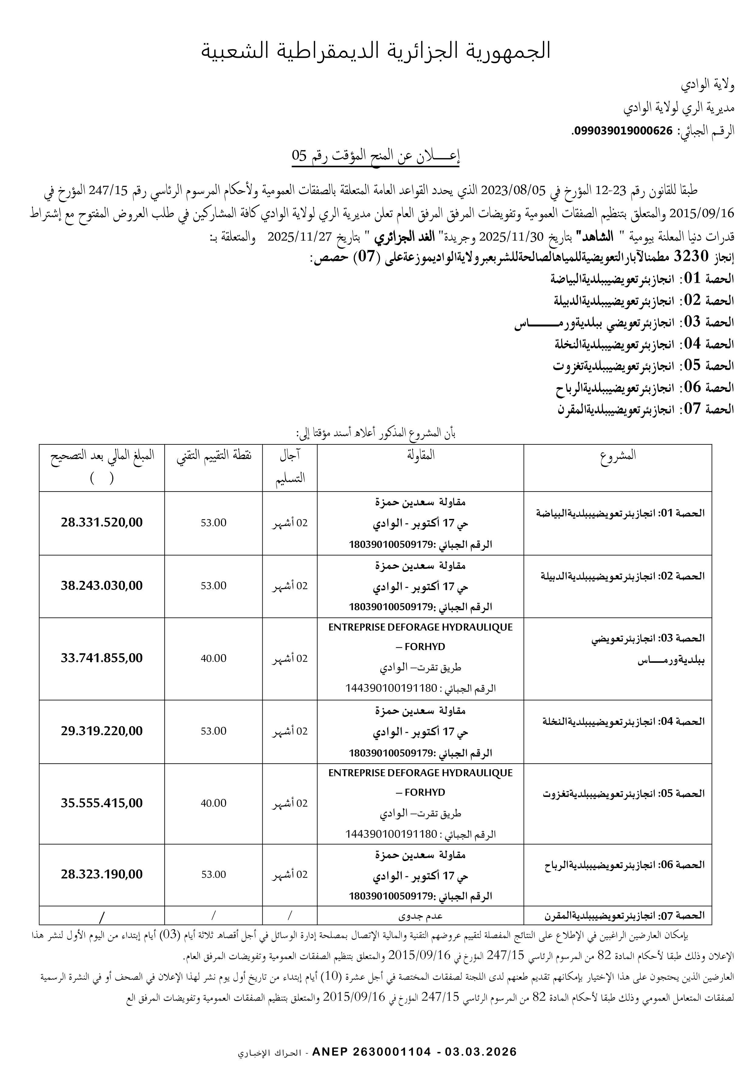 مديرية الري ولاية الوادي