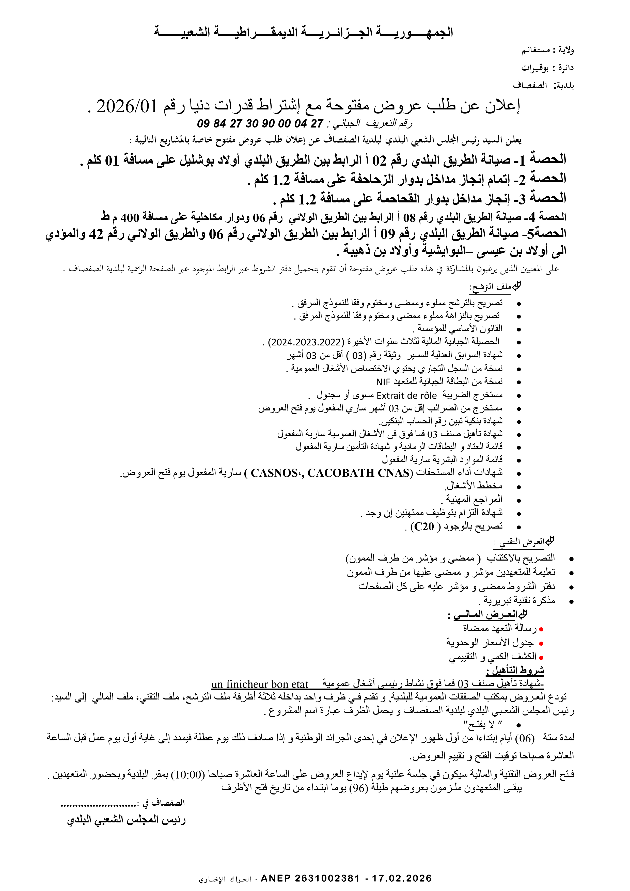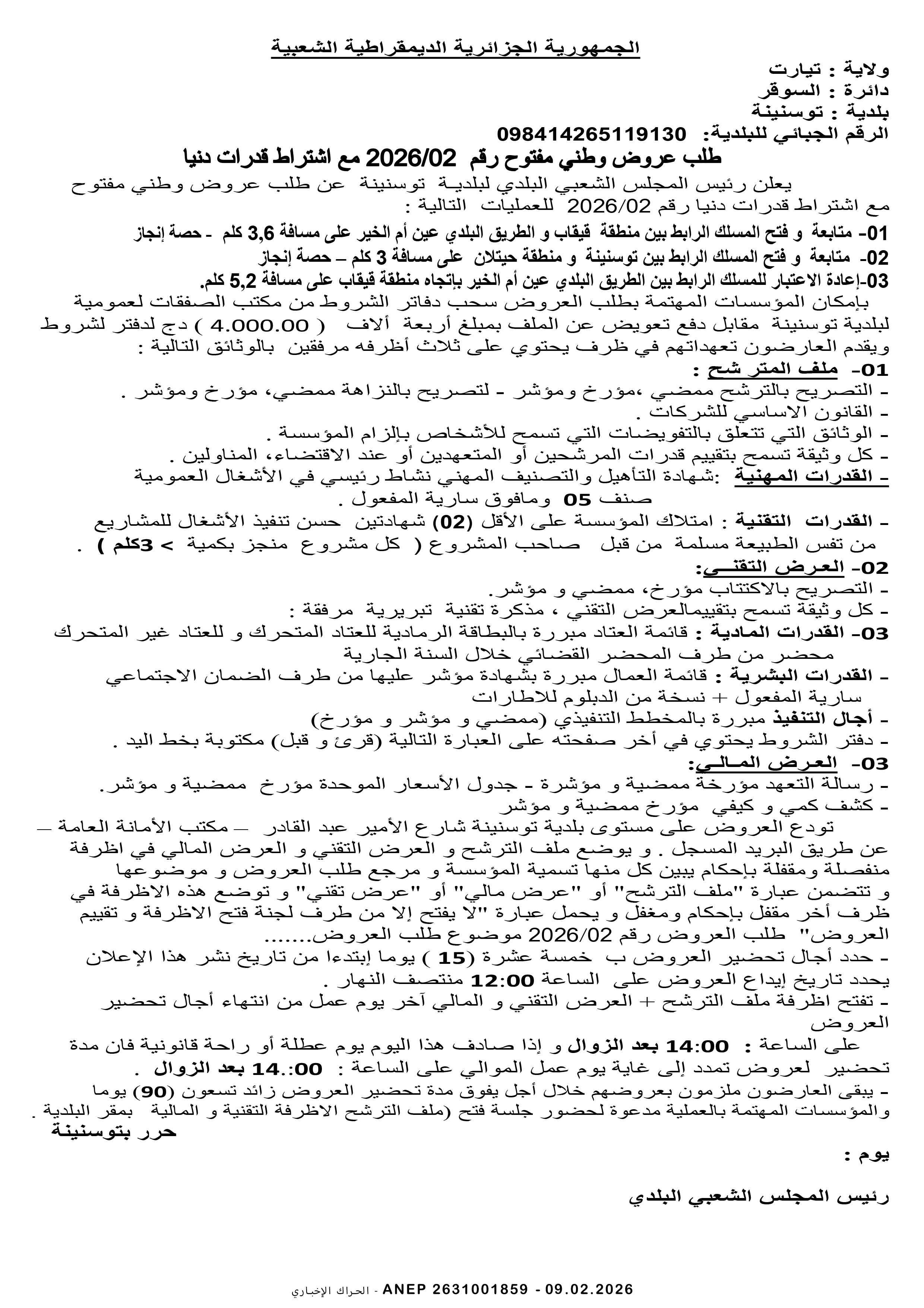 إعادة الاعتبار للطريق البلدي رقم 241 على مسافة 2.3 كلم