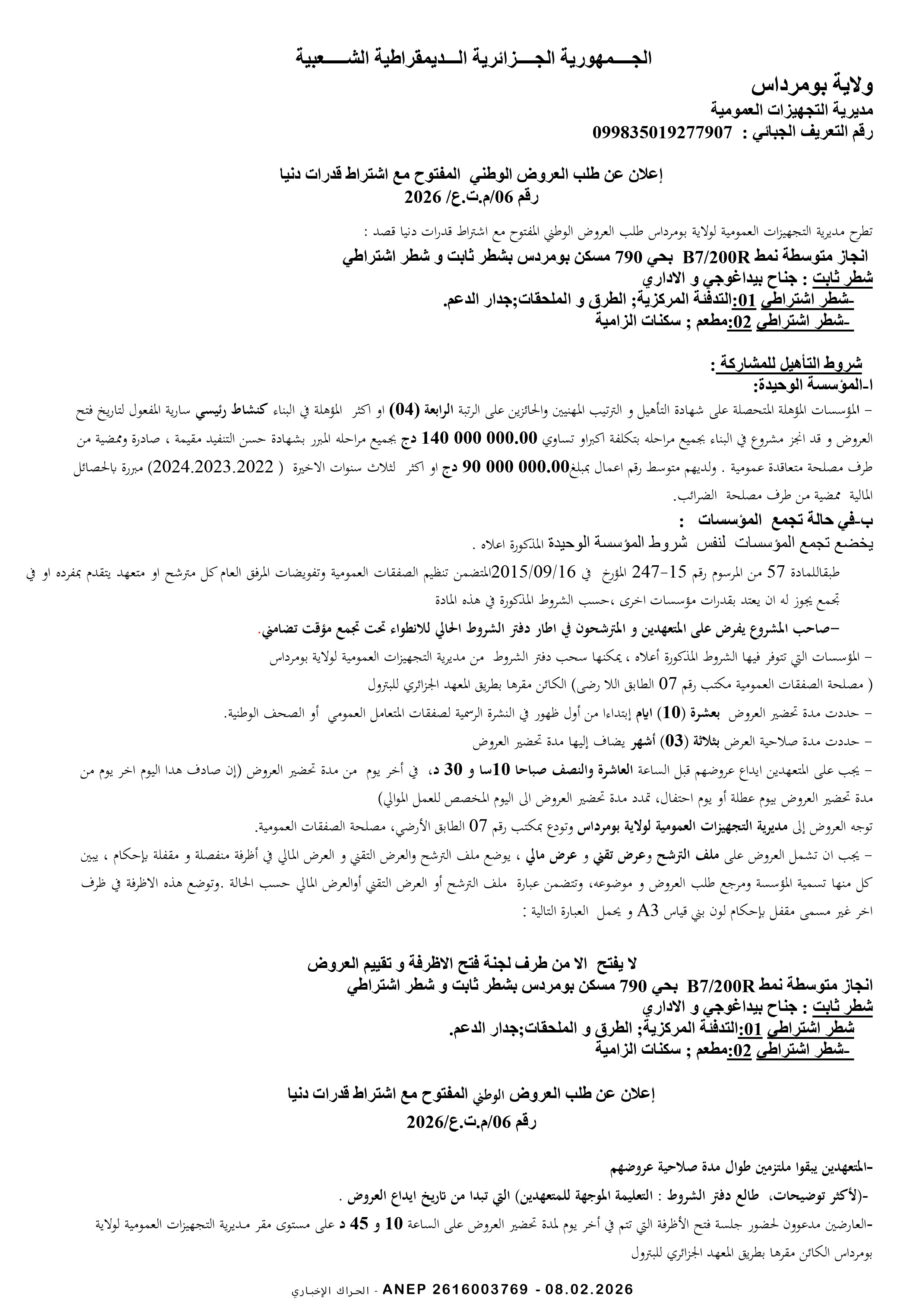 إنجاز متوسطة نمط B7/200R بحي 790 مسكن بومرداس