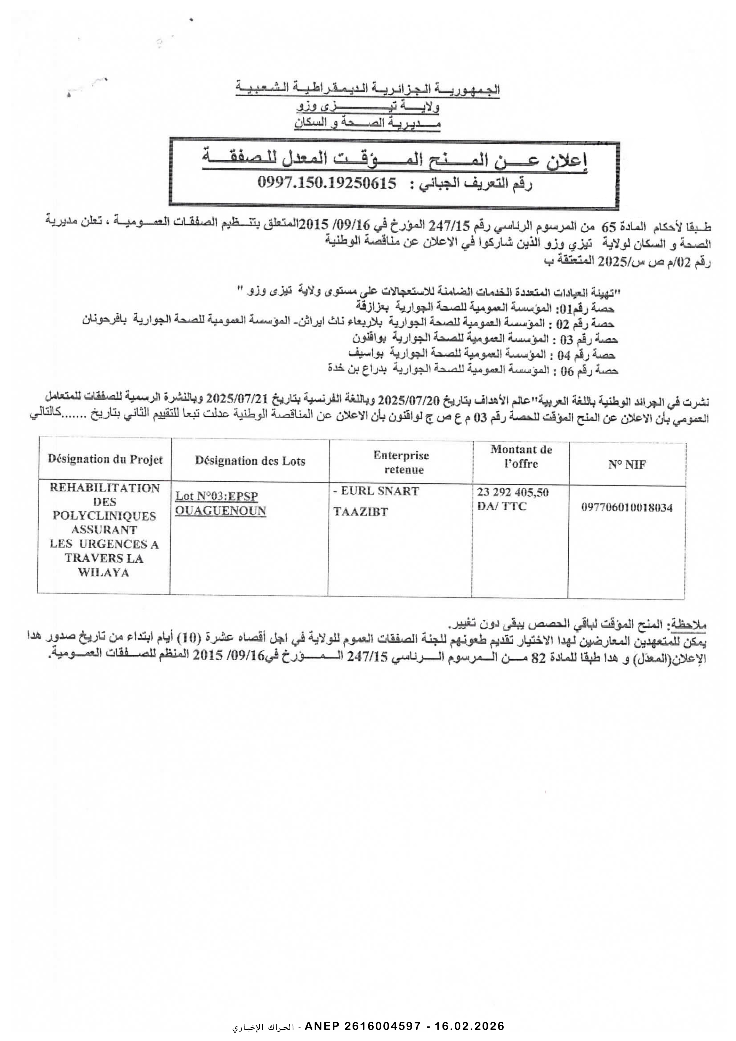 مديرية التعمير و الهندسة المعمارية و البناء لولاية تيزي وزو
