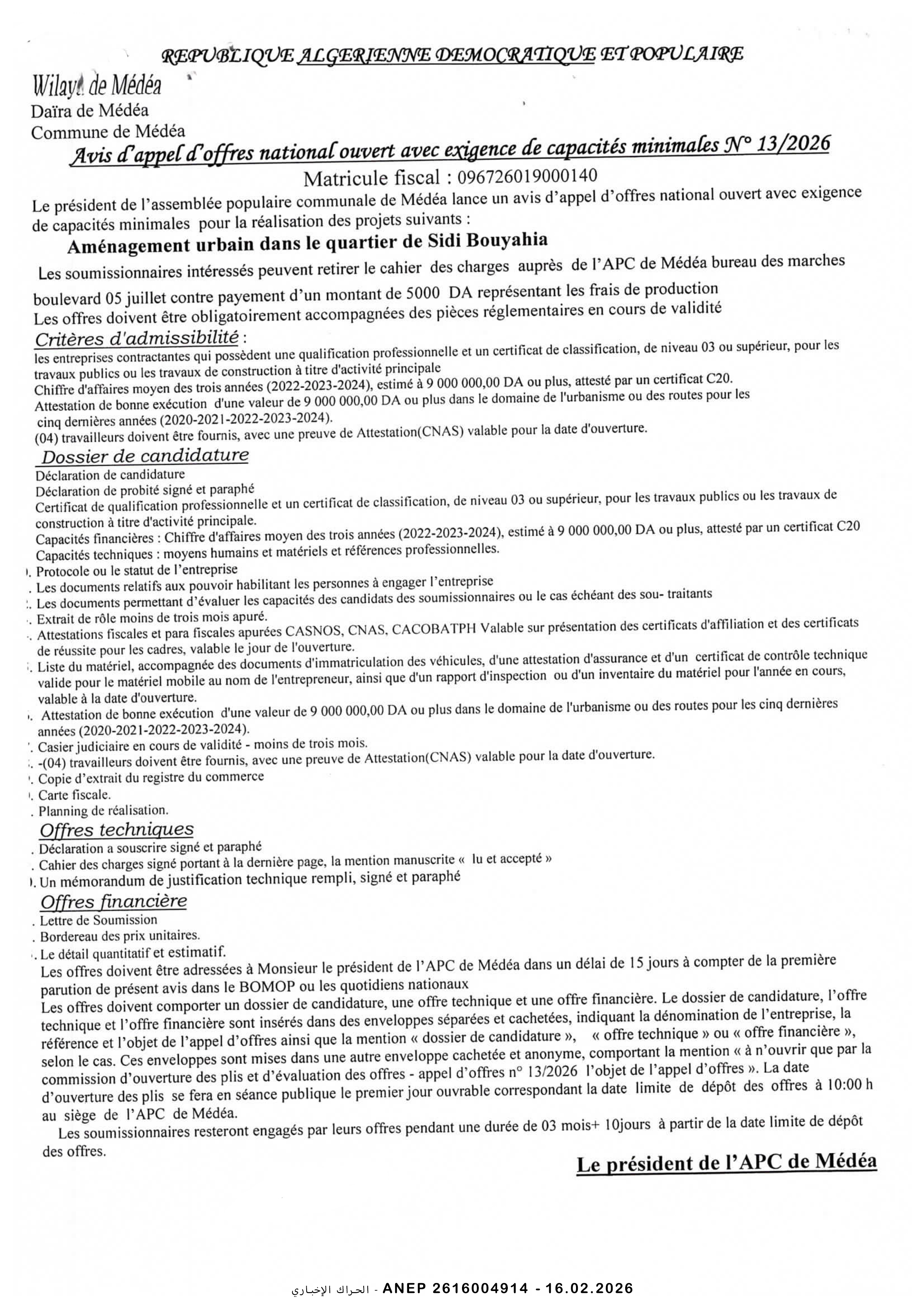 إعلان عن مسابقة وطنية في الهندسة المعمارية محدودة