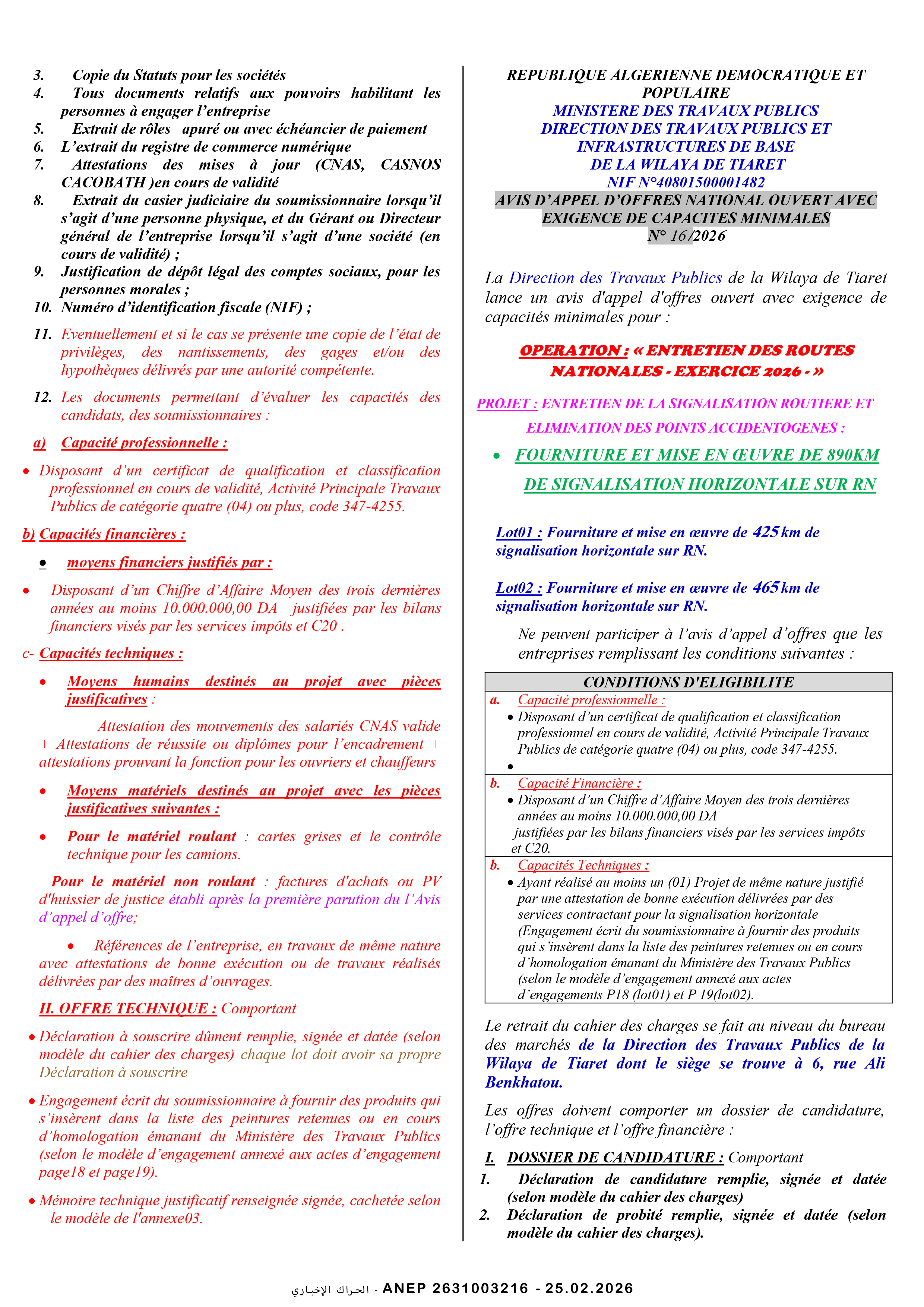 مديرية الأشغال العمومية ولاية تيارت