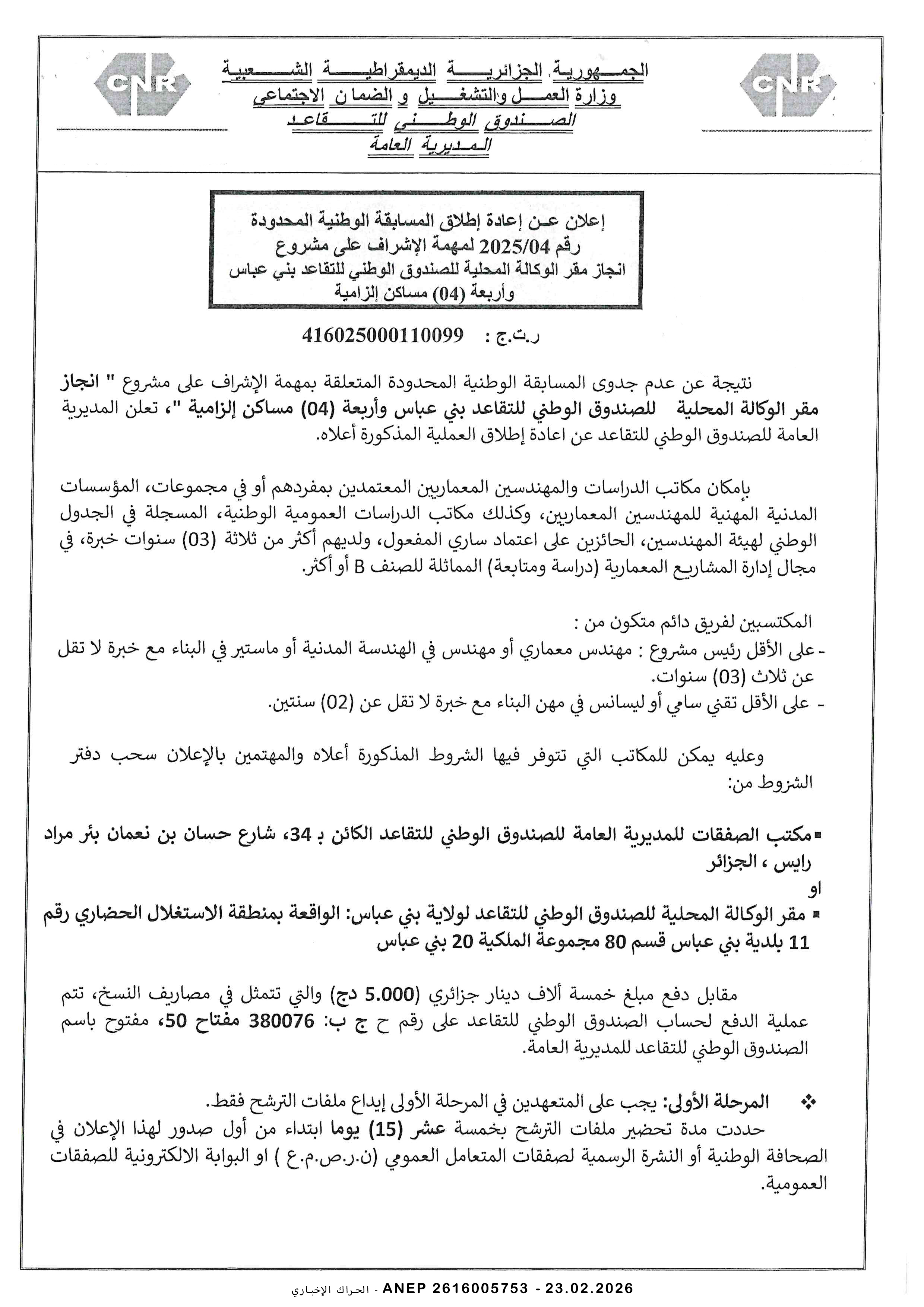 إنجاز مقر الوكالة المحلية للصندوق الوطني للتقاعد بني عباس