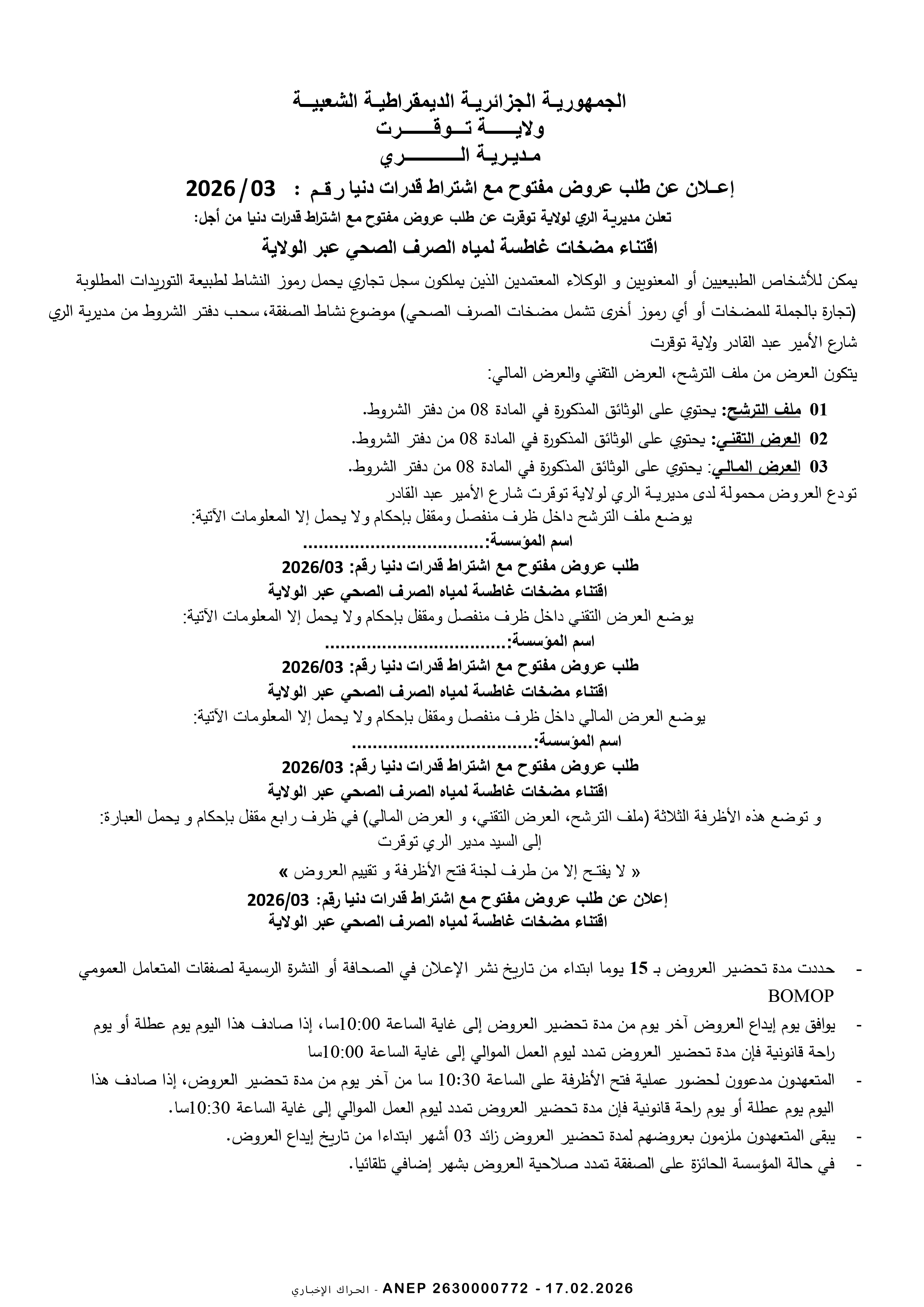 إقتناء مضخات غاطسة لمياه الصرف الصحي
