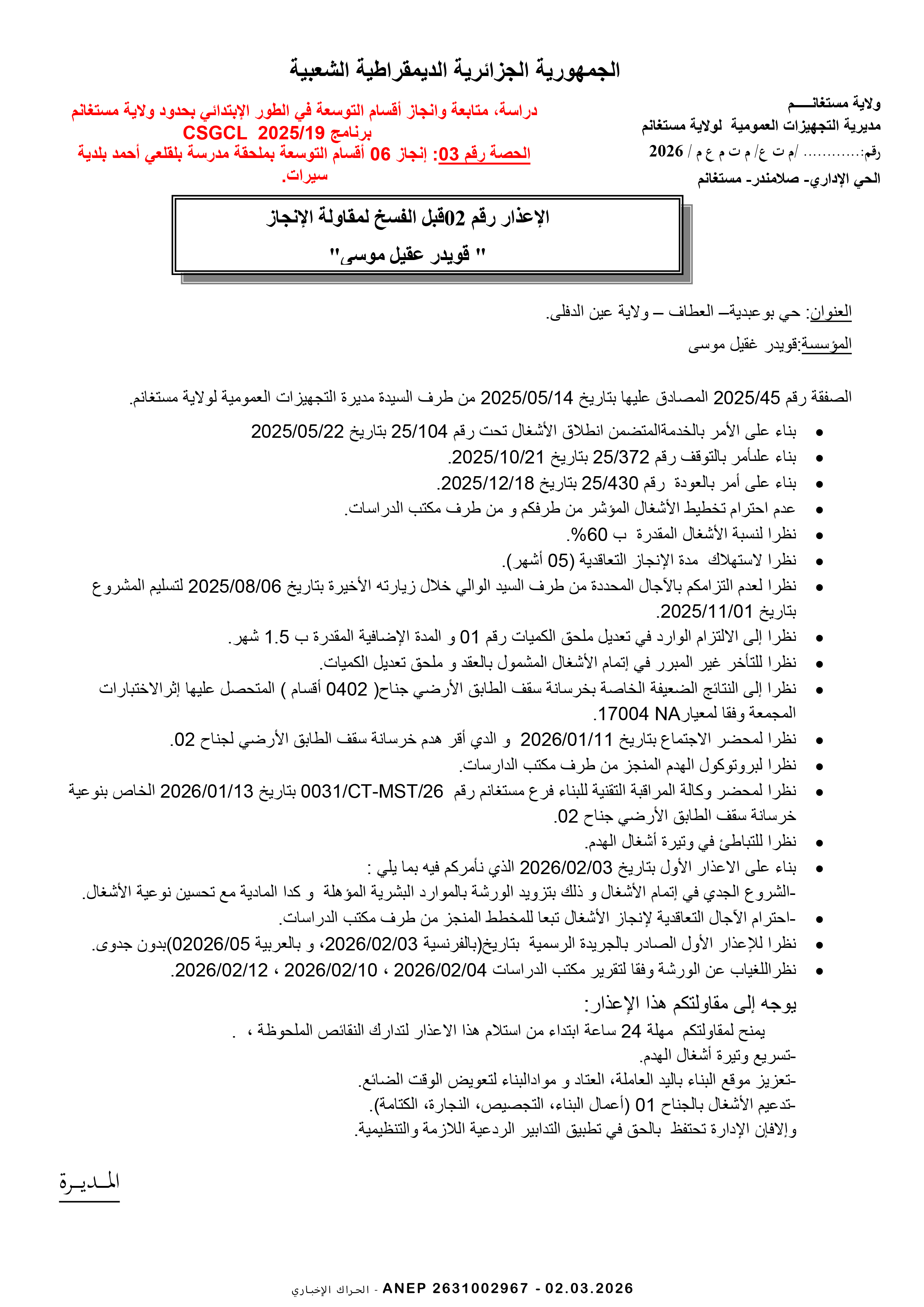 مديرية التجهيزات العمومية لولاية مستغانم