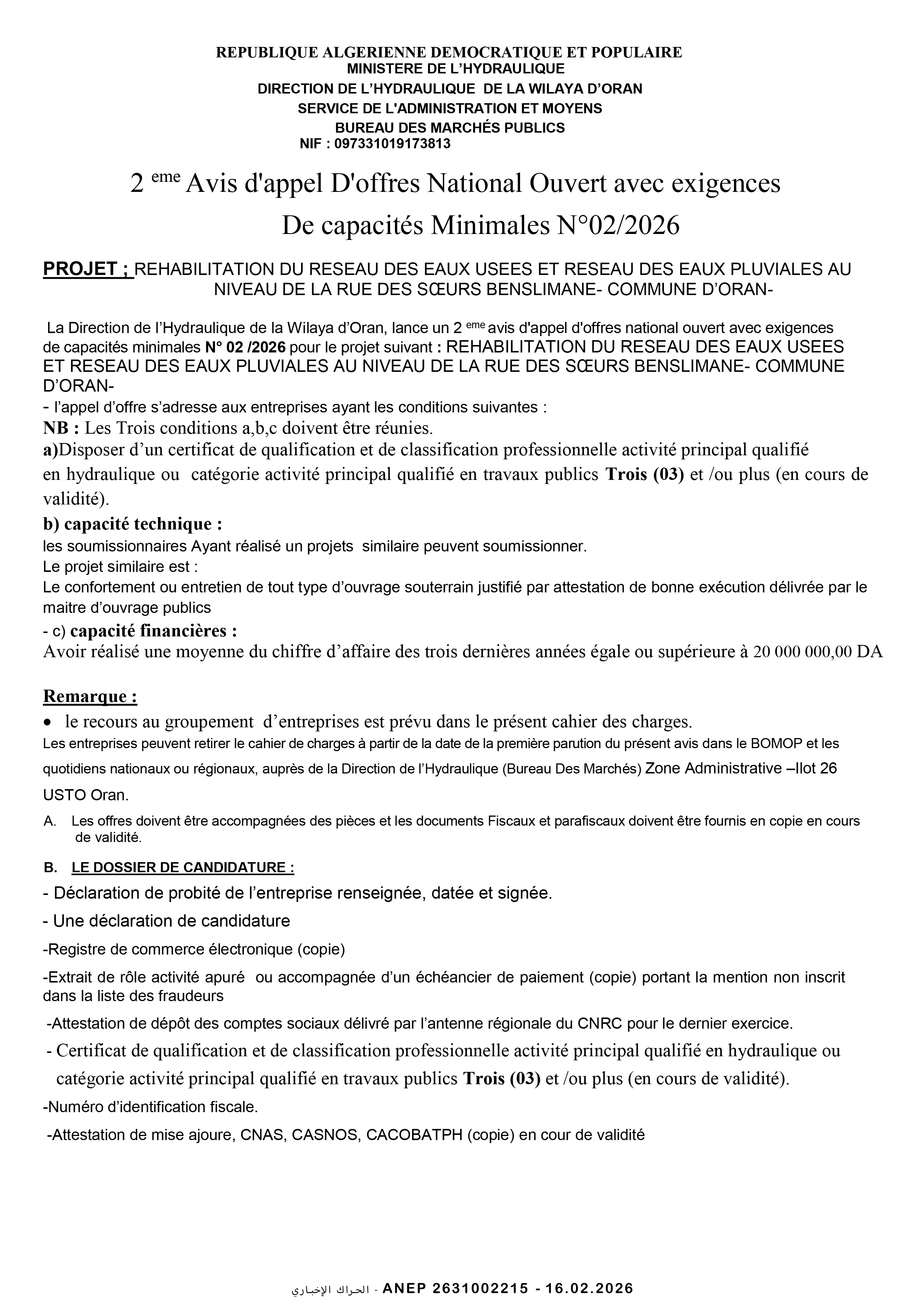 إعادة تأهيل شبكة تصريف المياه بلدية وهران