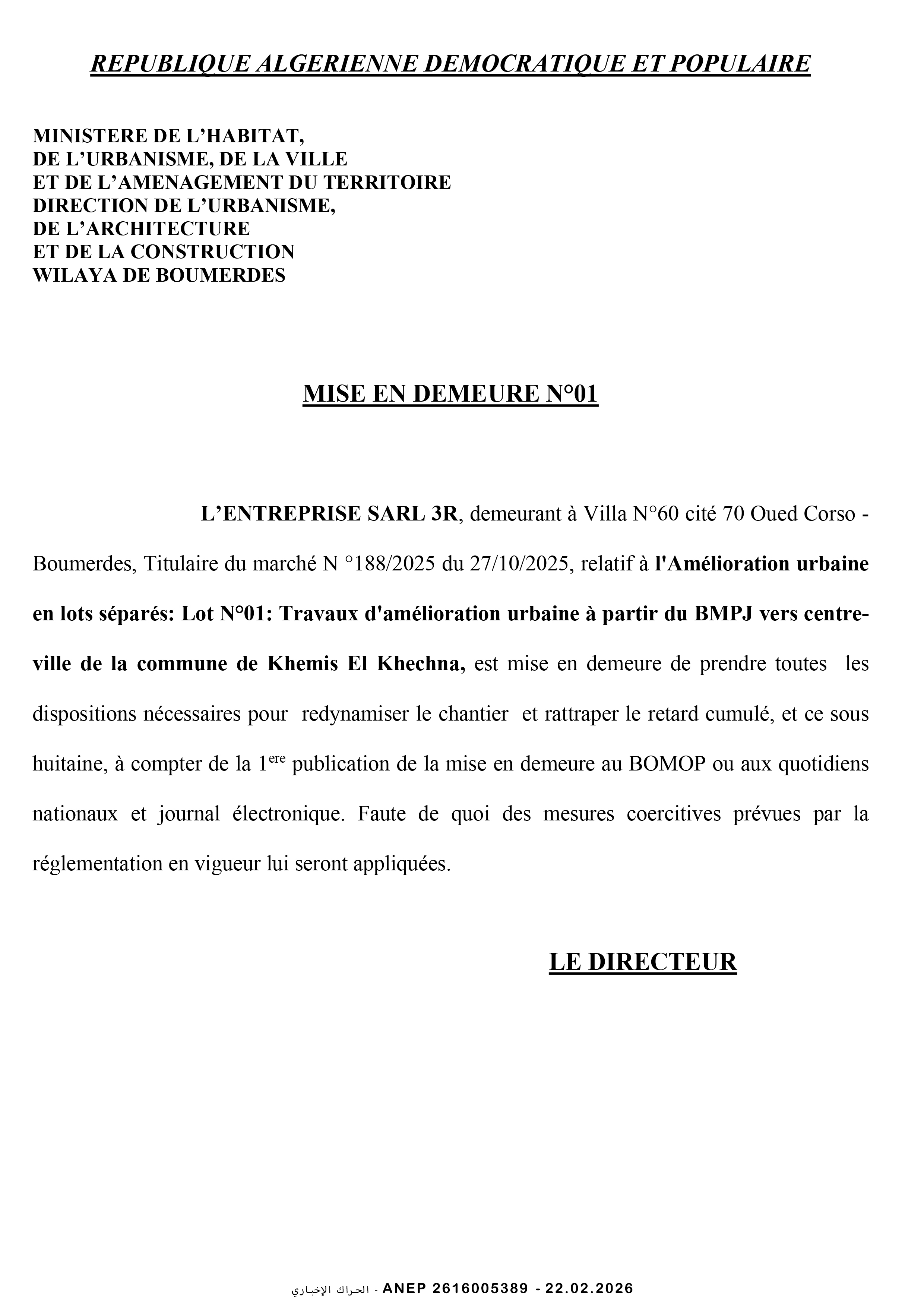 مديرية التجهيزات العمومية لولاية بومرداس