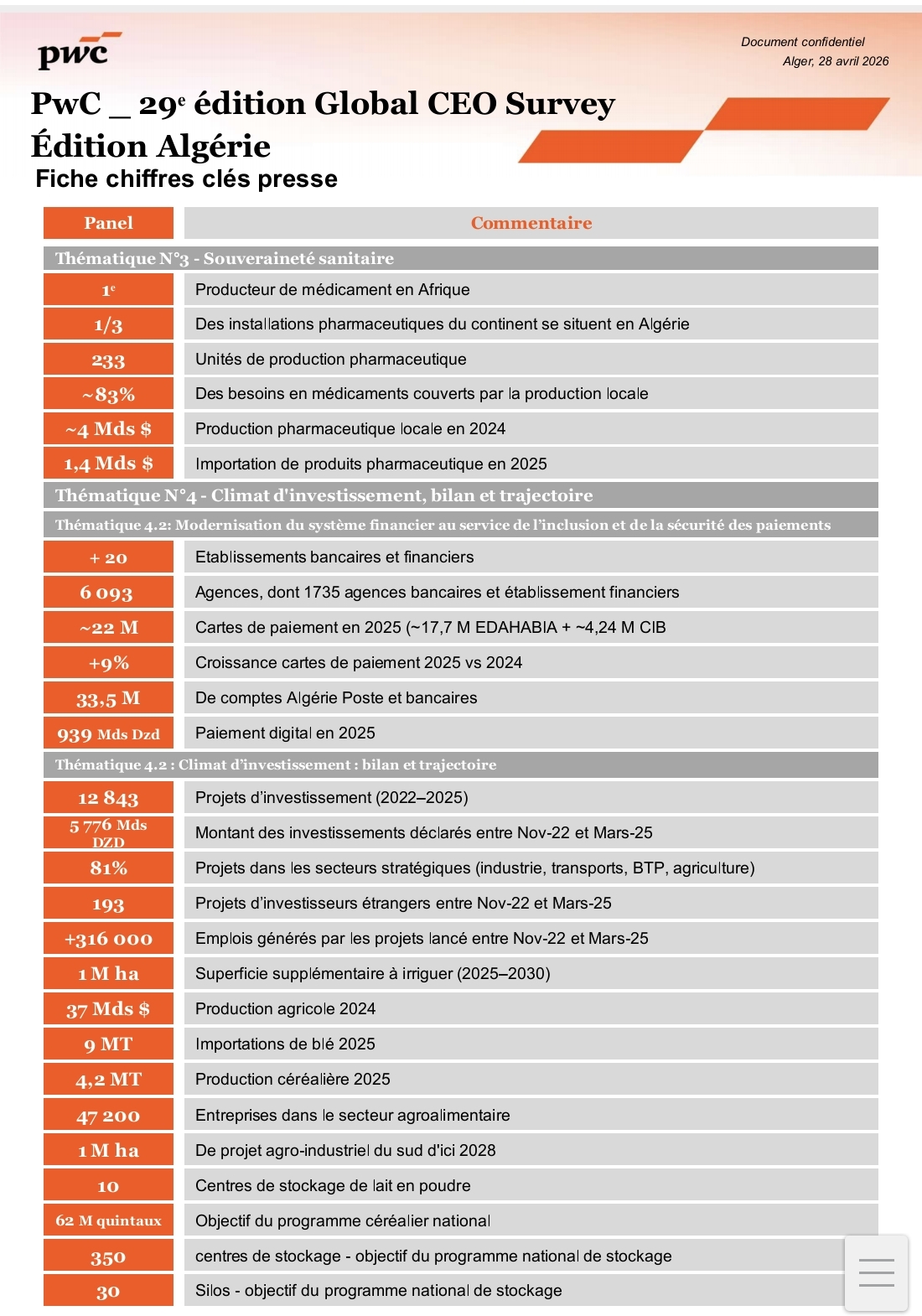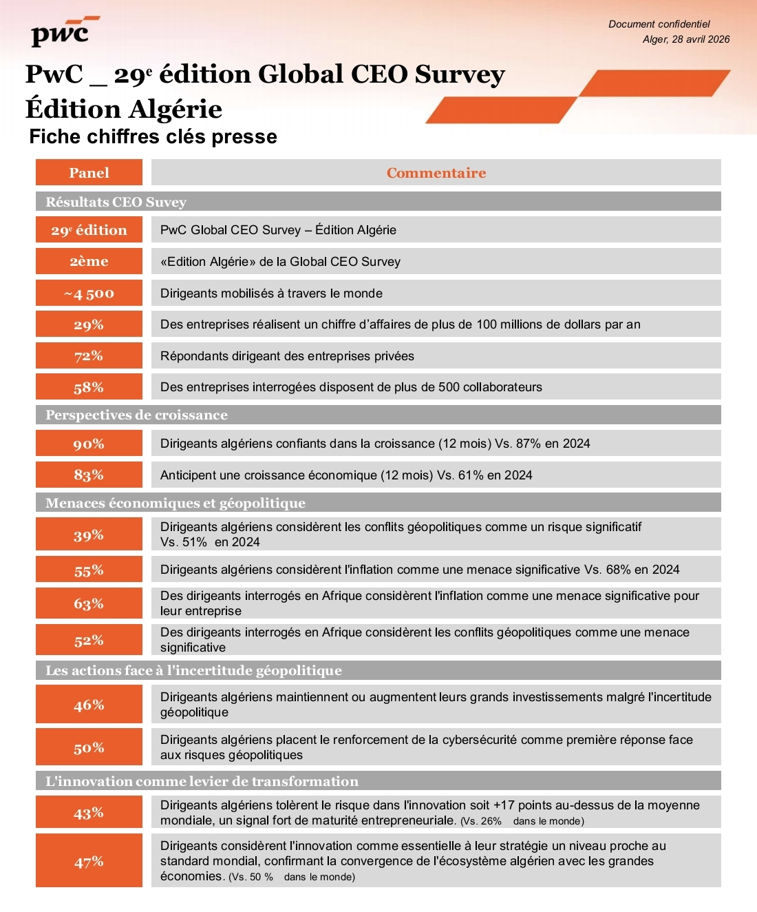 5 chiffres clés à retenir de la CEO Survey Algérie :